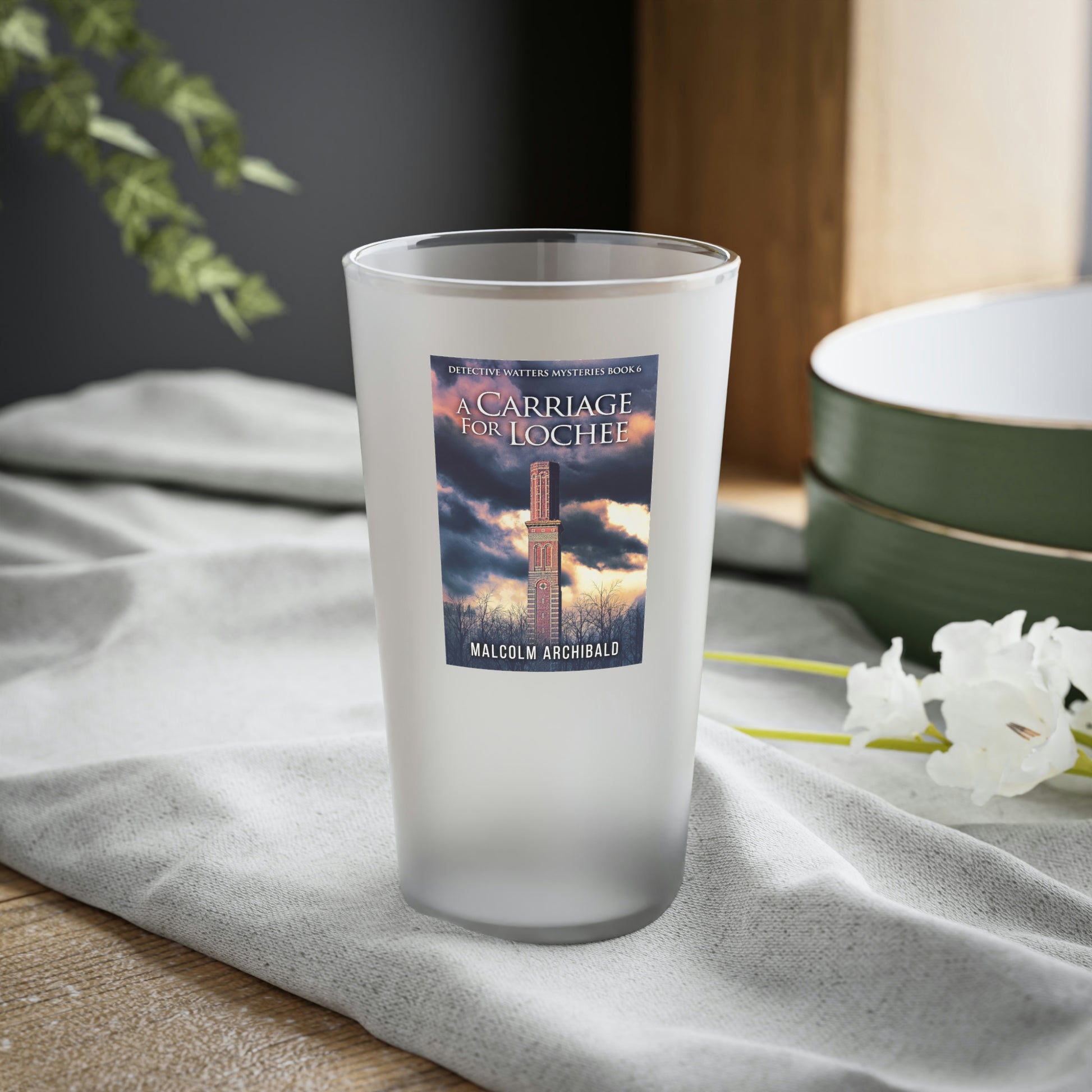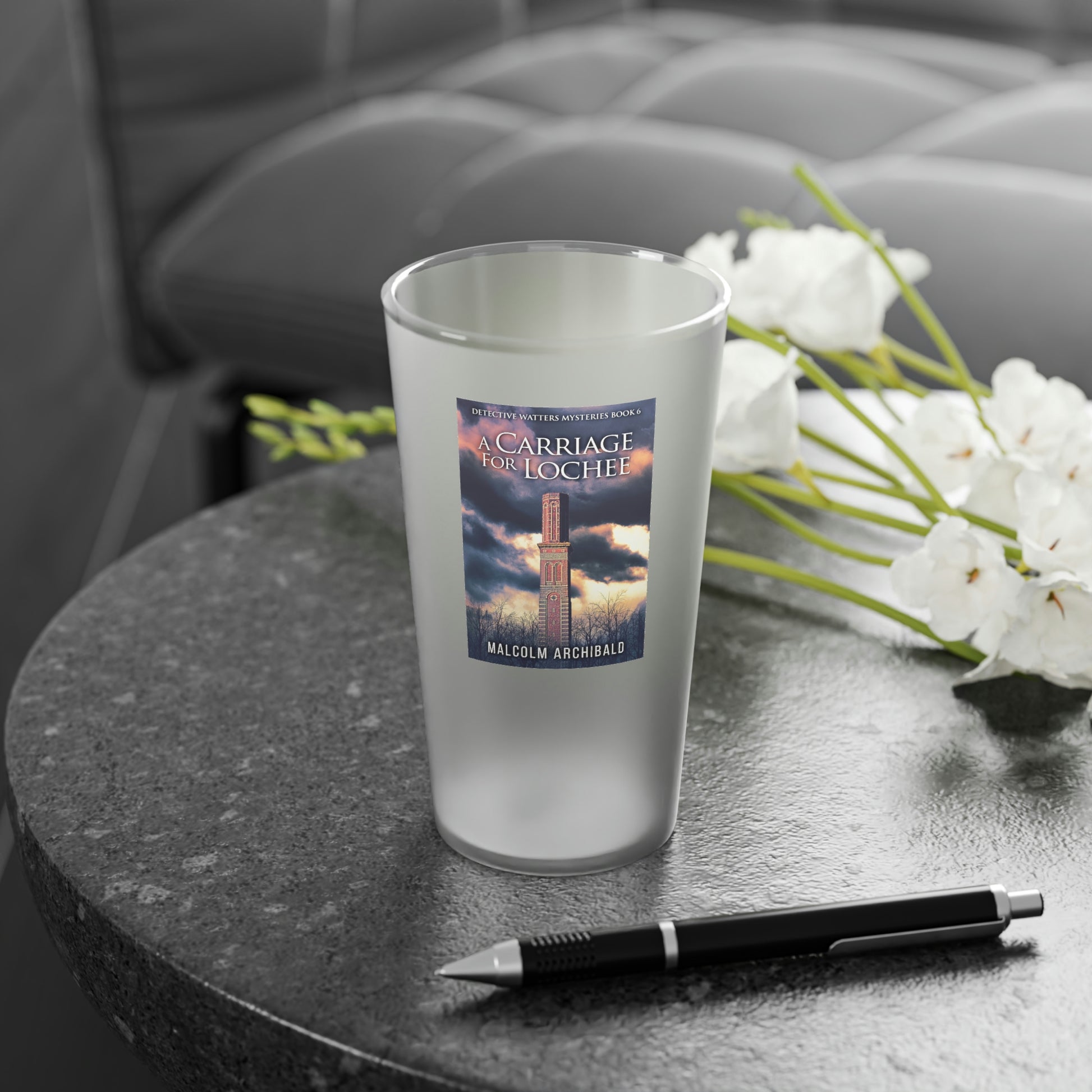 This frosted matte finish pint glass is versatile and dishwasher-safe. The cover art in this pint glass is from Malcolm Archibald's book, A Carriage For Lochee.