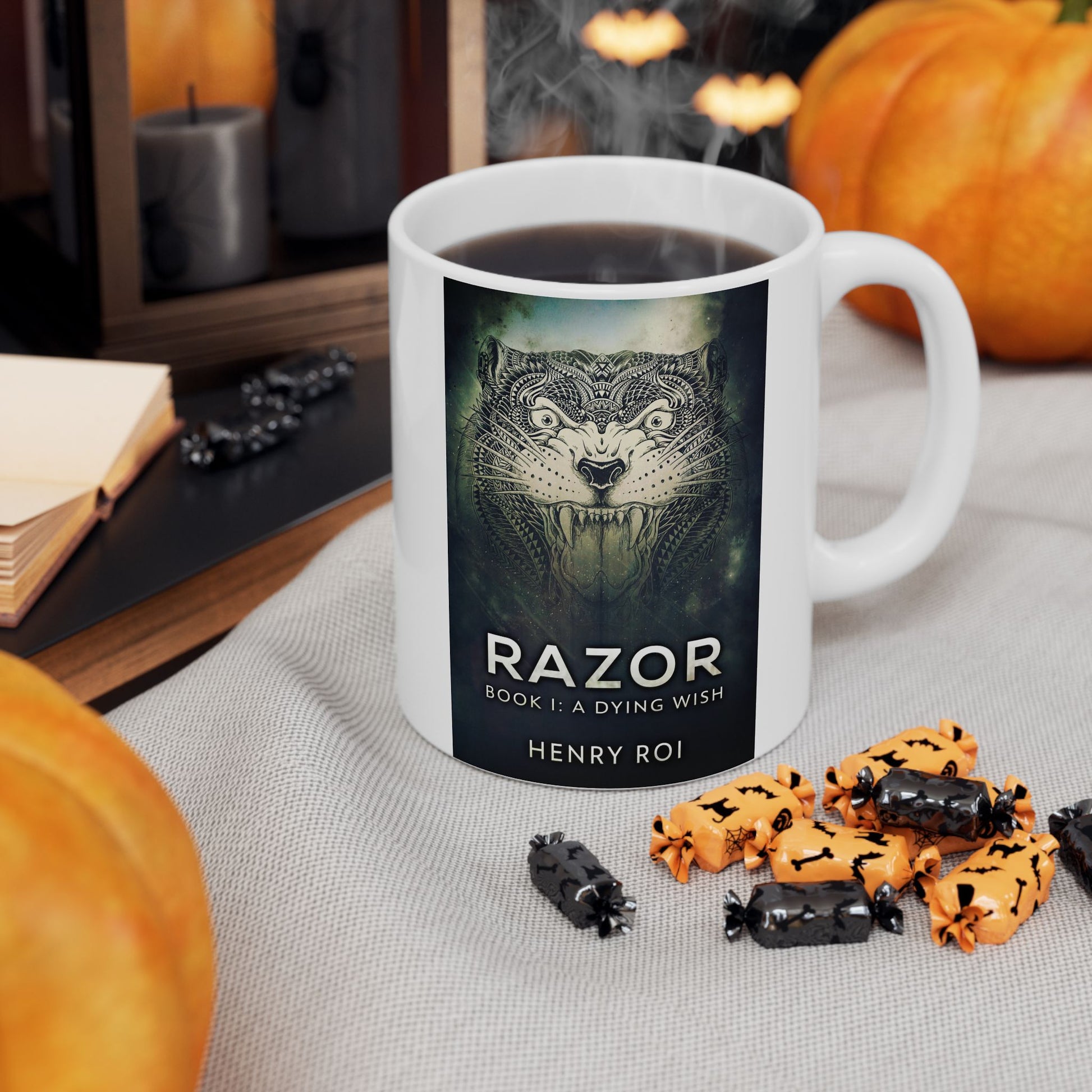 Warm your soul with a nice cuppa out of this perfectly sized white ceramic mug. It’s BPA and lead-free, microwave and dishwasher-safe, and made of durable ceramic. The cover art in this coffee mug is from Henry Roi's book, A Dying Wish.