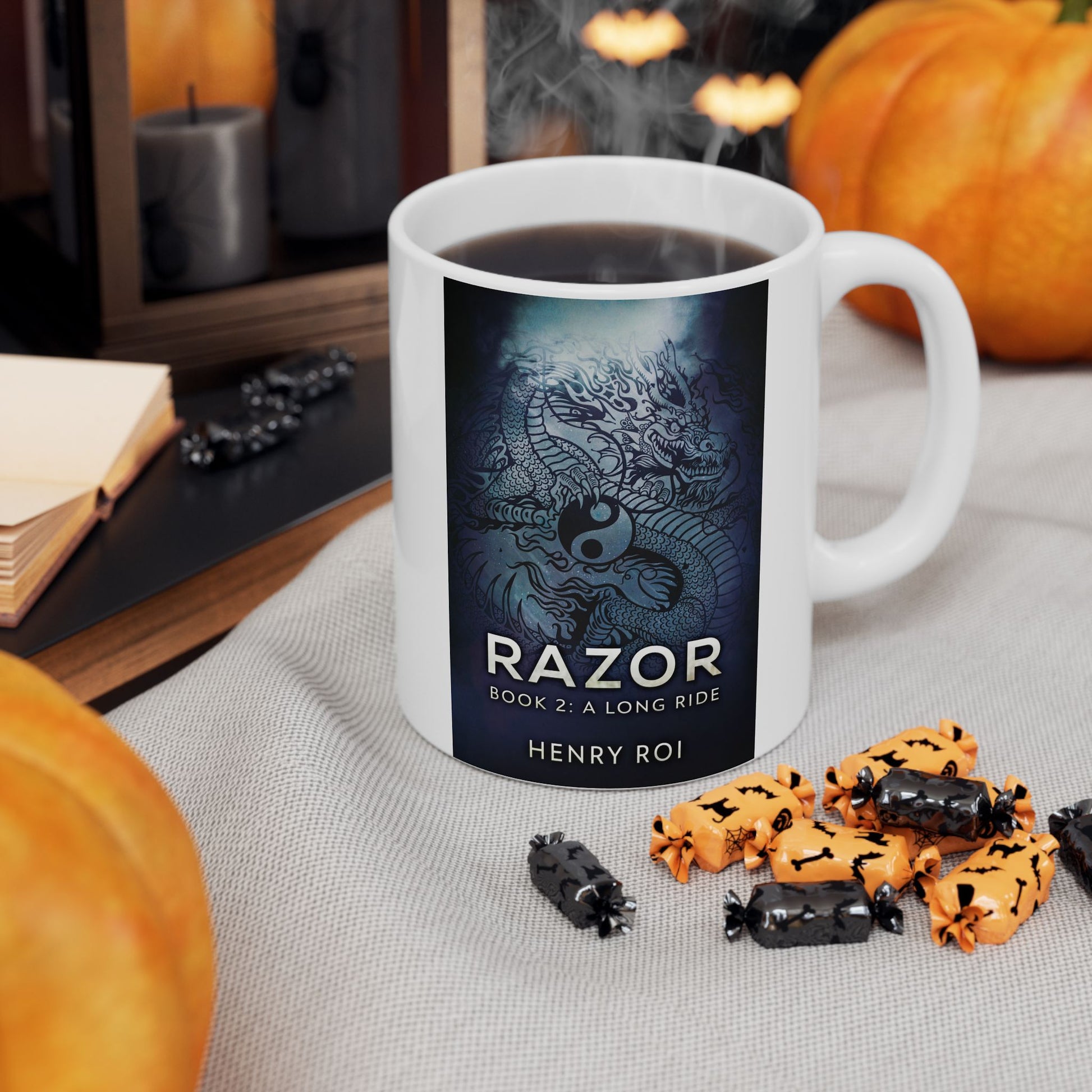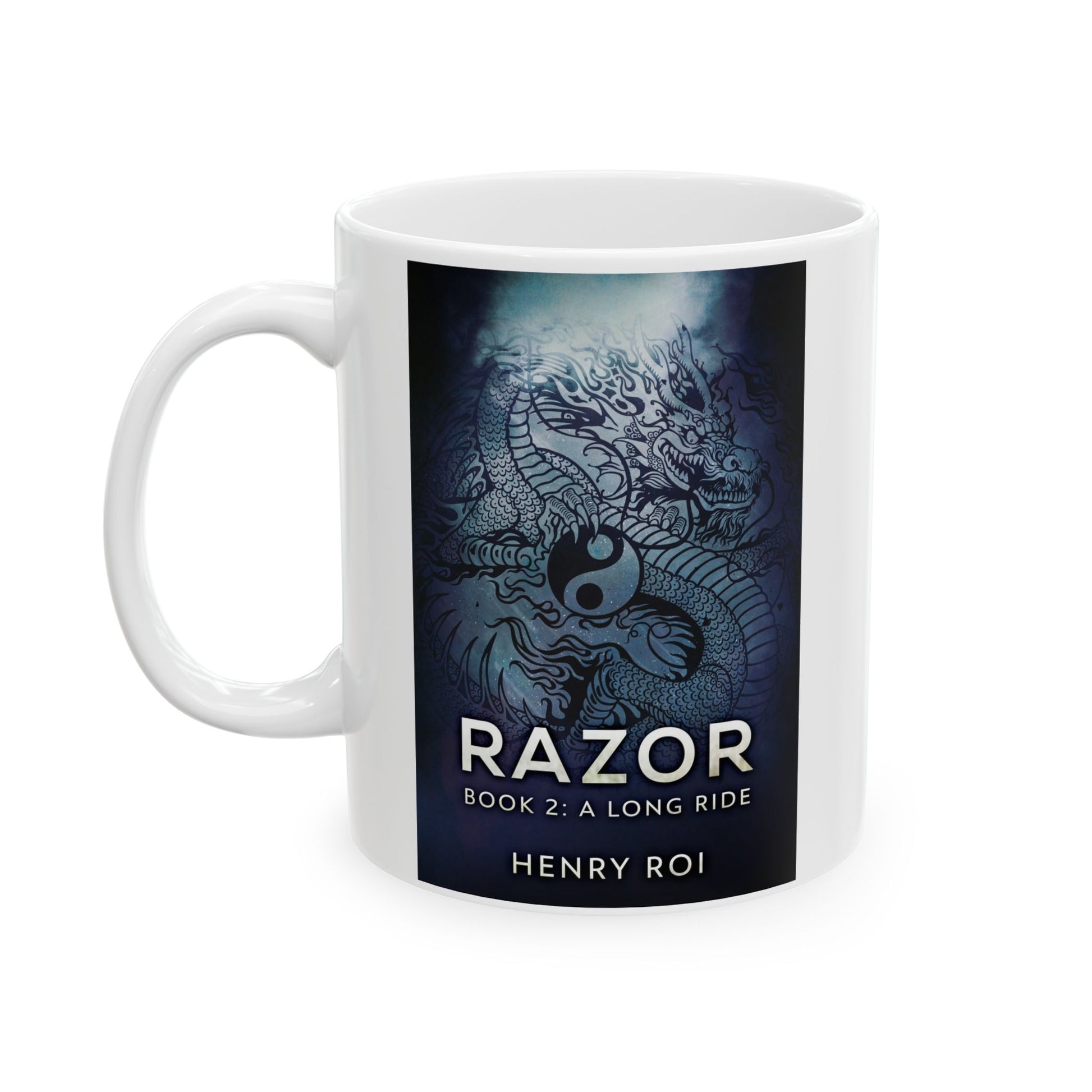 Warm your soul with a nice cuppa out of this perfectly sized white ceramic mug. It’s BPA and lead-free, microwave and dishwasher-safe, and made of durable ceramic. The cover art in this coffee mug is from Henry Roi's book, A Long Ride.