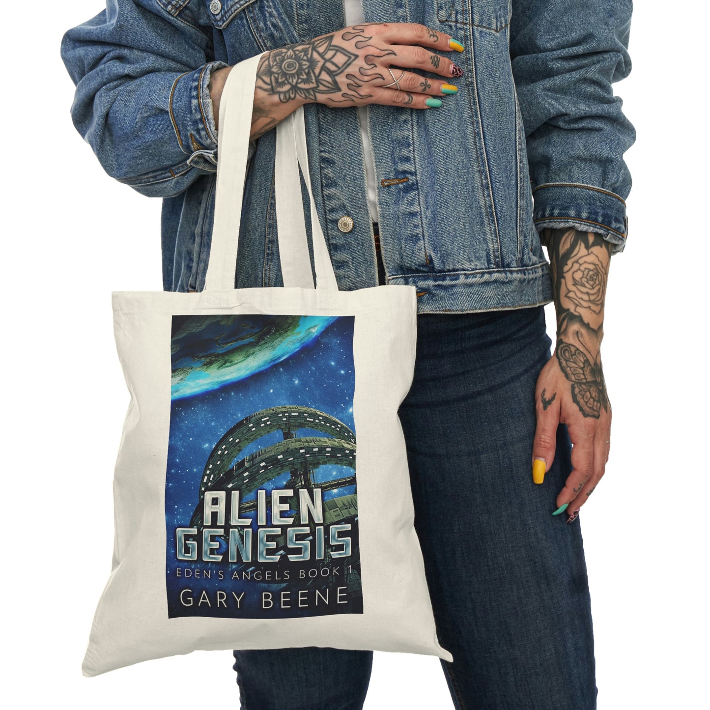 This 100% cotton tote bag is the champion of durability, sustainability, and style. The cover art in this tote bag is from Gary Beene's book, Alien Genesis.
