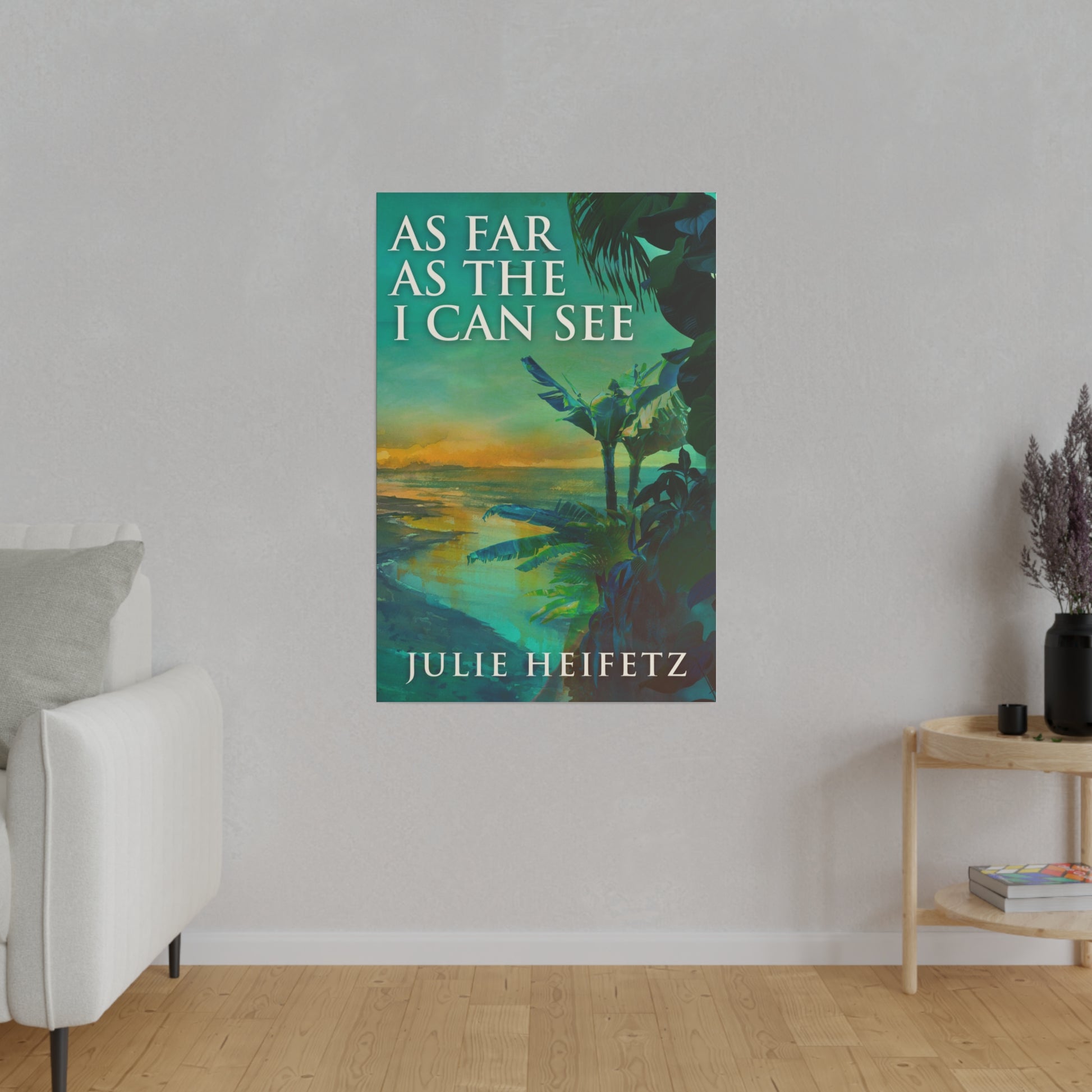 This matte canvas comes with back hanging already included for convenient placement. The frame is made with profile radial pine that is ethically sourced from renewable forests. The cover art in this canvas is from Julie Heifetz's book, As Far As The I Can See.