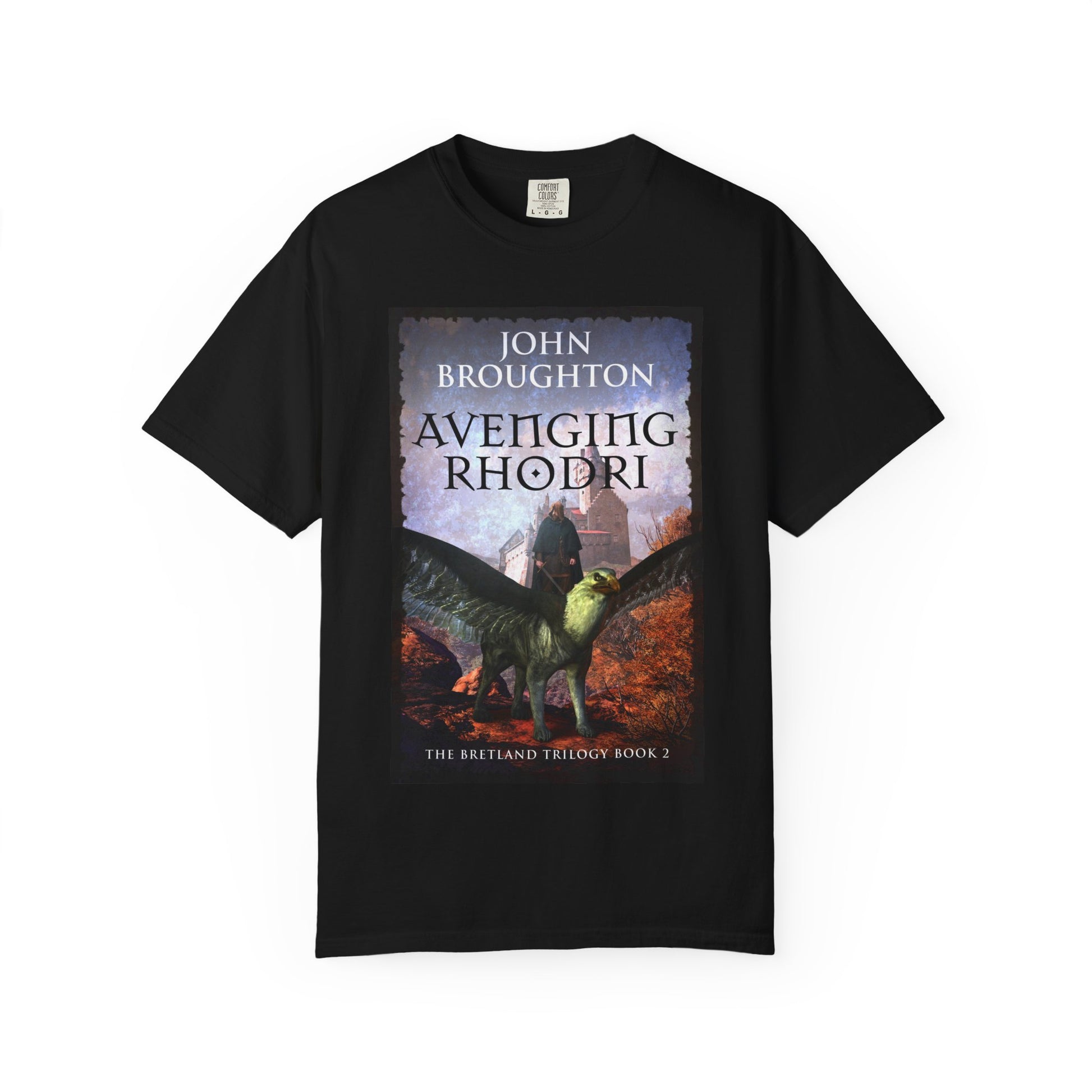 This soft-washed, garment-dyed T-shirt will bring extra coziness to your wardrobe while the relaxed fit makes it an excellent daily choice. The double-needle stitching throughout the tee makes it highly durable, while the lack of side seams helps the shirt retain its shape. The book cover art on this T-shirt is from John Broughton's book, Avenging Rhodri.