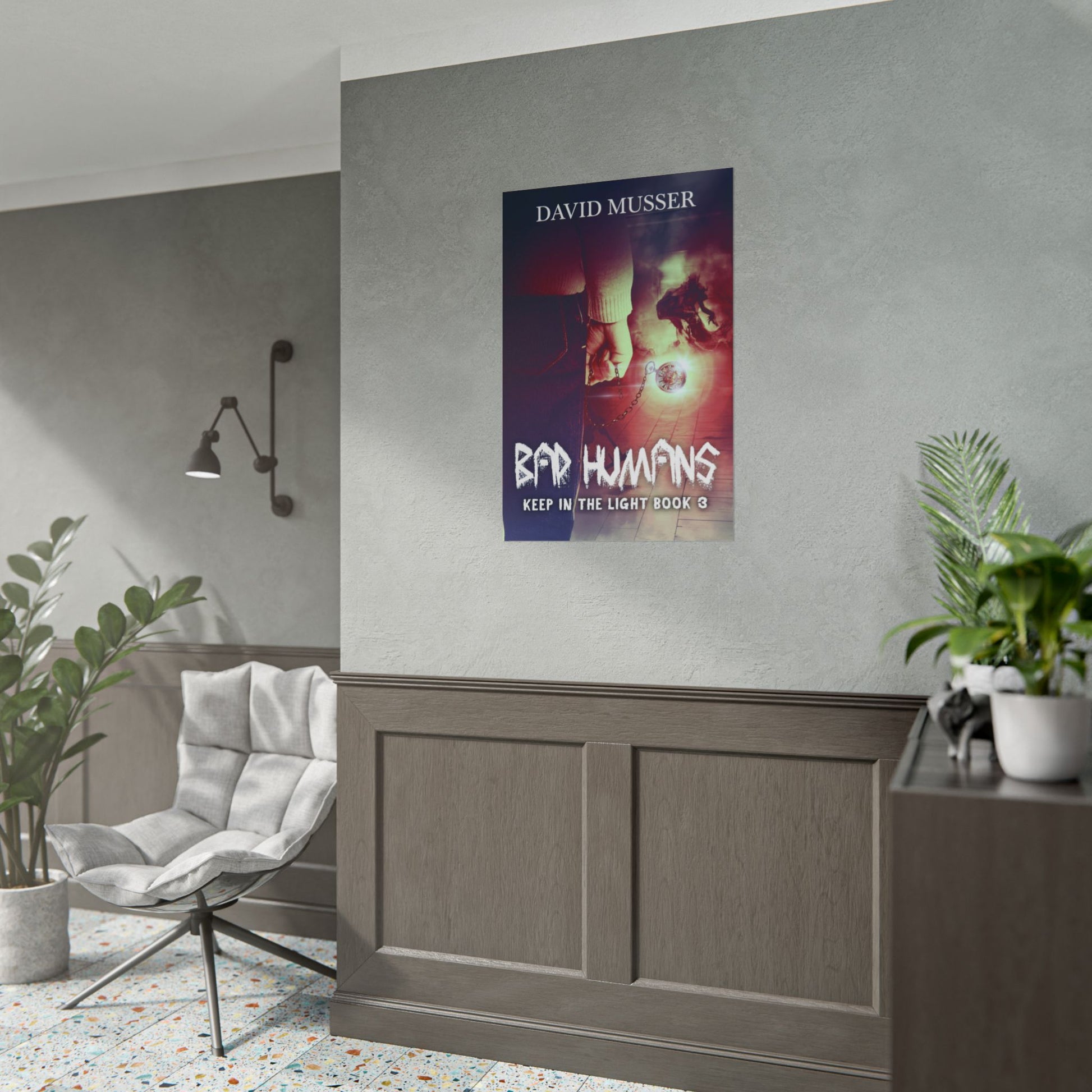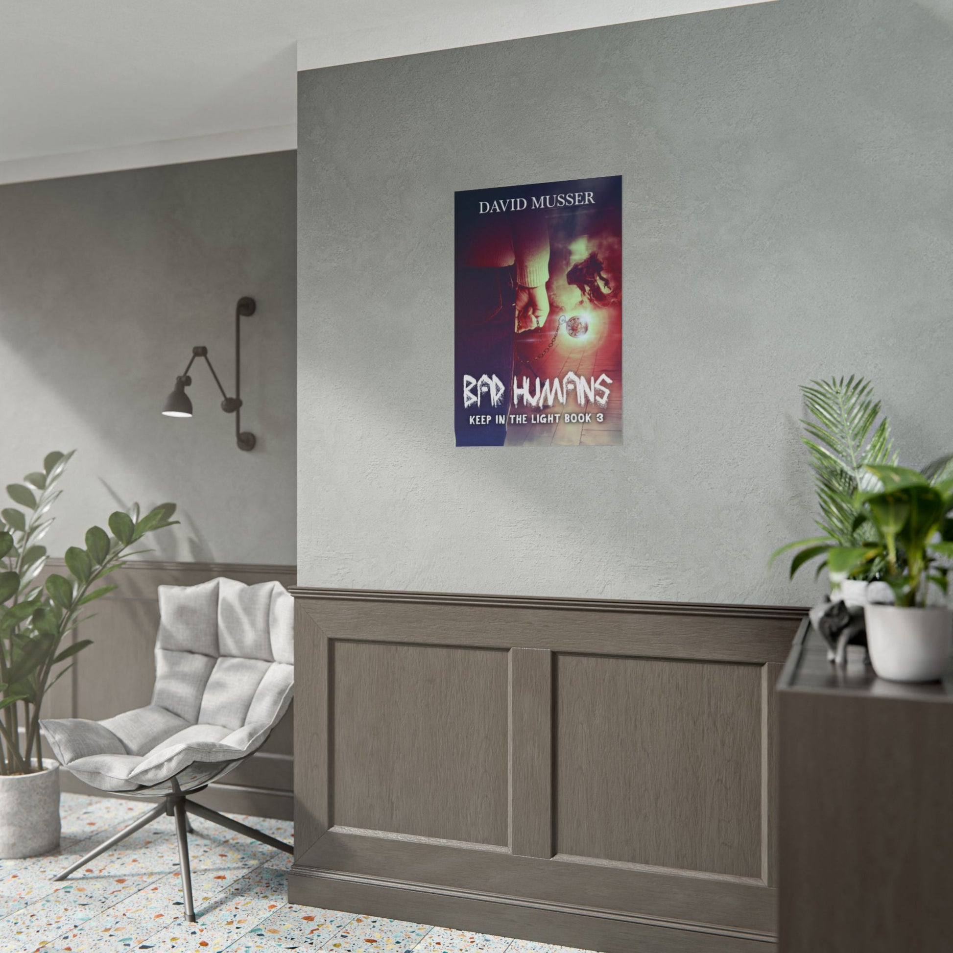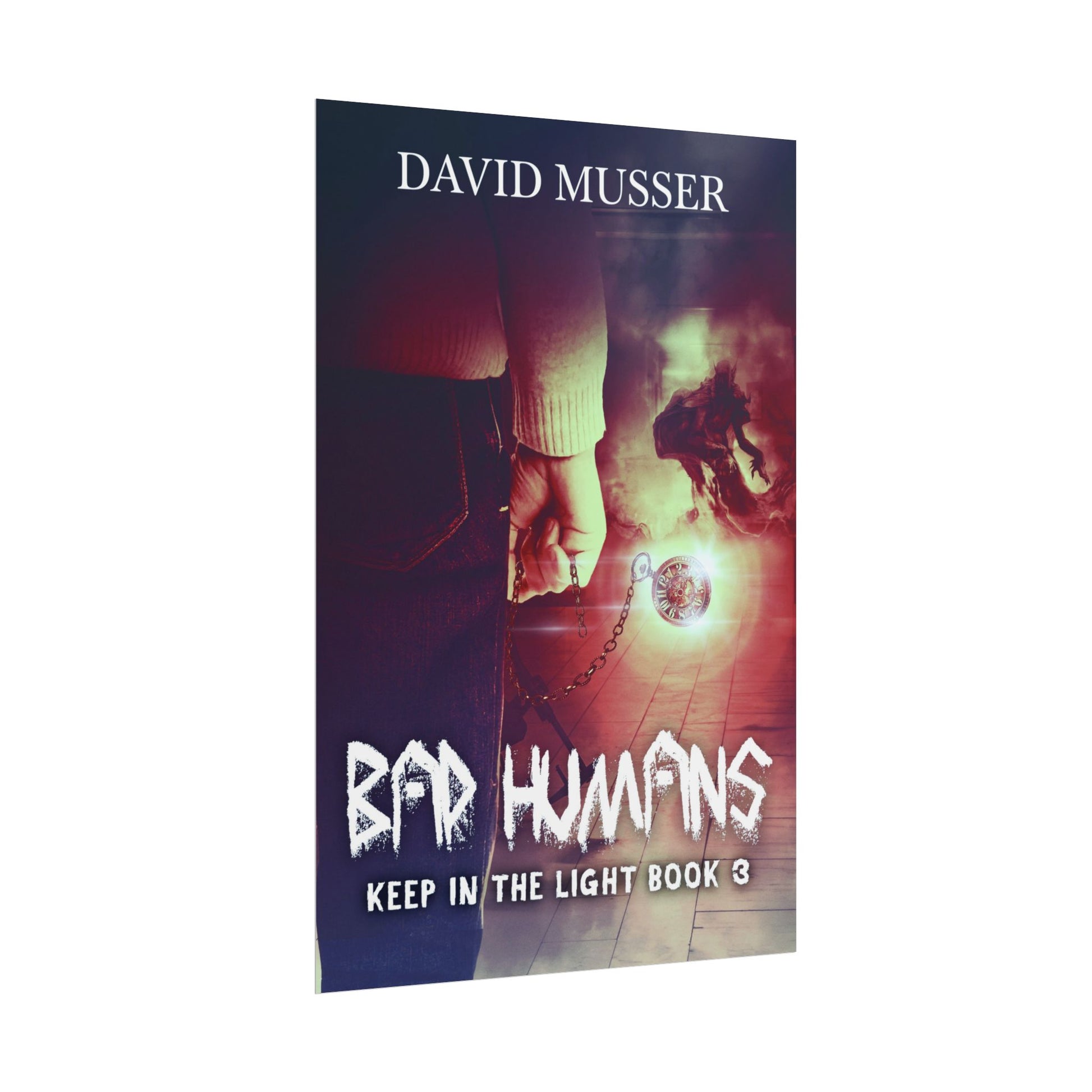 Enhance your home décor with this poster featuring the cover art from David Musser’s book, Bad Humans. Available in three sizes and two finishes: matte or semi-glossy.
