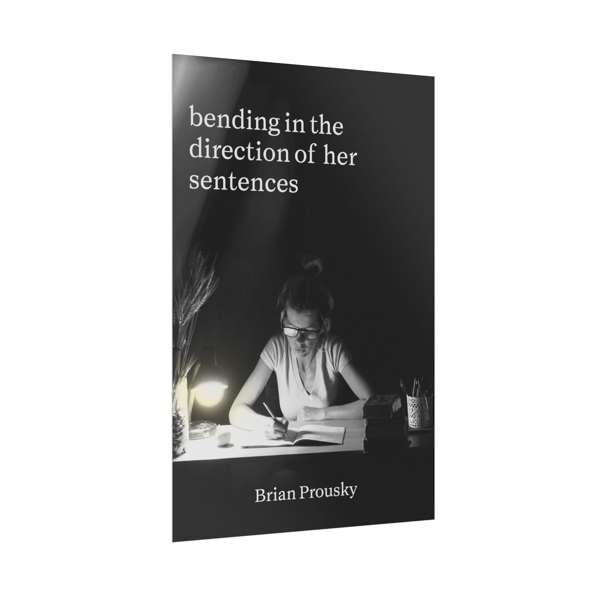 Enhance your home décor with this poster featuring the cover art from Brian Prousky's book, bending in the direction of her sentences. Available in three sizes and two finishes: matte or semi-glossy.