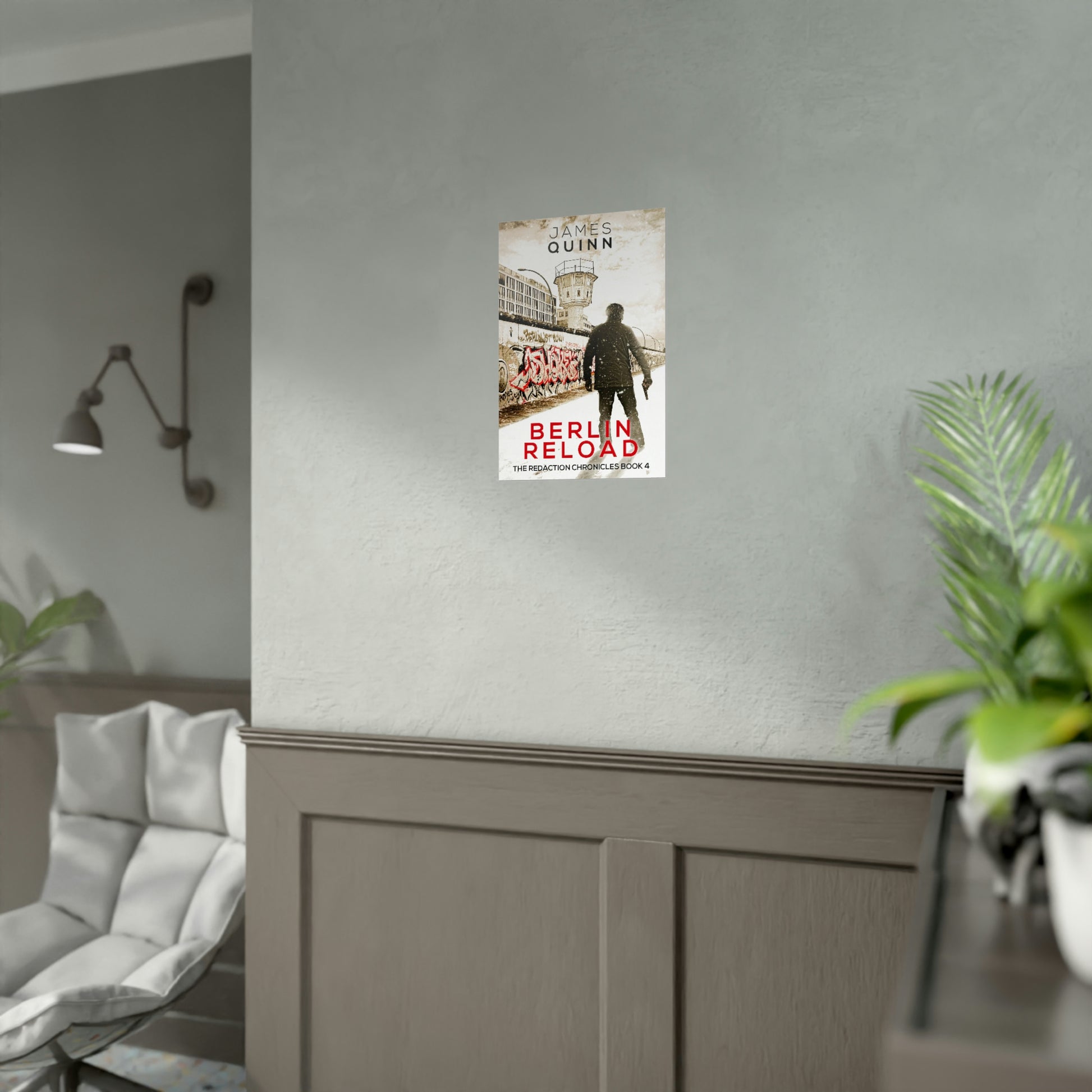 This rolled poster is based on the cover art of James Quinn's book, Berlin Reload. Choose between fine-art (310gsm) or semi-gloss paper (260gsm). The fine art paper is equivalent to traditional watercolor or etching paper, and has a soft textured surface and archival quality. The semi-glossy paper is a bright white photo paper with a satin finish, and offers full sharp color fidelity.