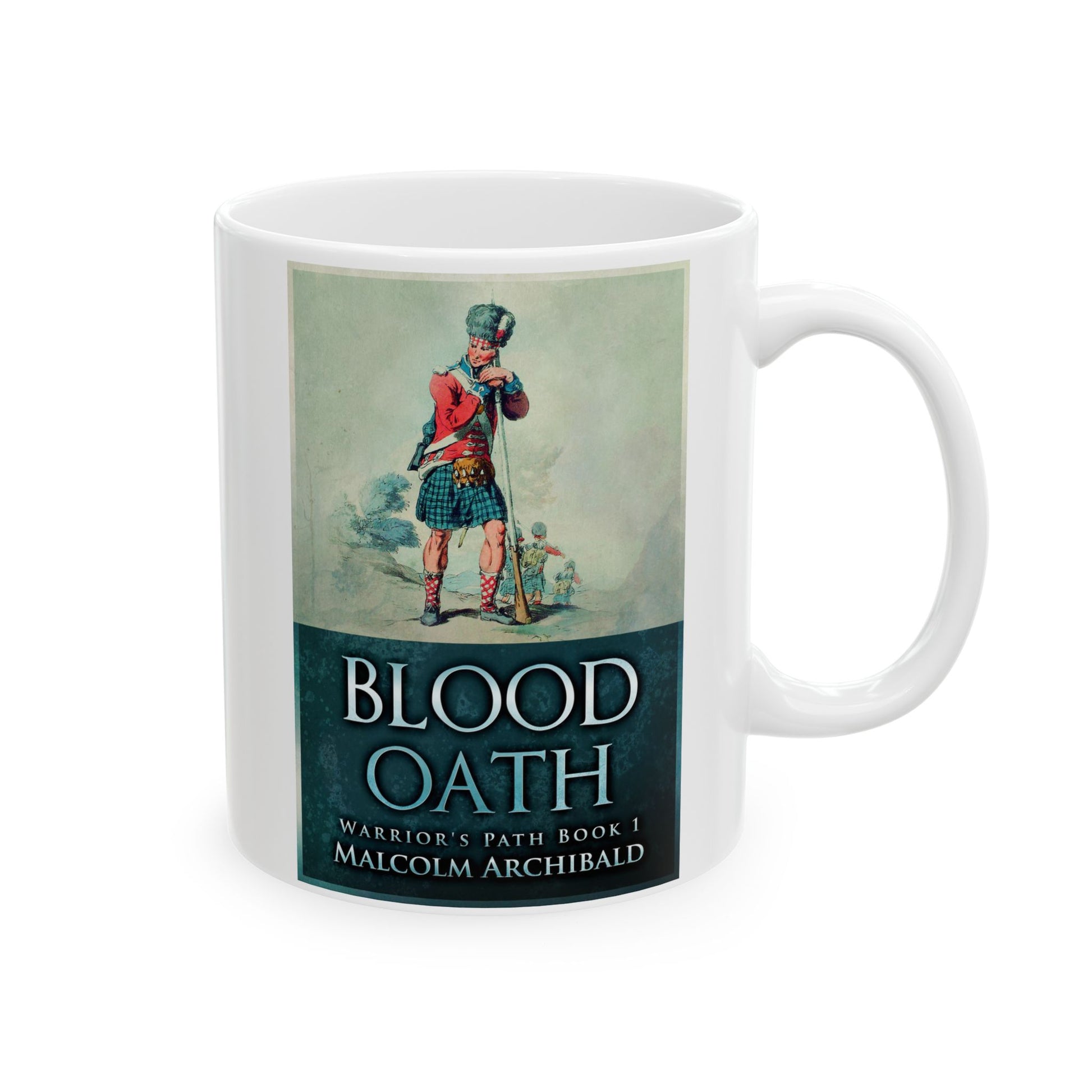 Warm your soul with a nice cuppa out of this perfectly sized white ceramic mug. It’s BPA and lead-free, microwave and dishwasher-safe, and made of durable ceramic. The cover art in this coffee mug is from Malcolm Archibald's book, Blood Oath.