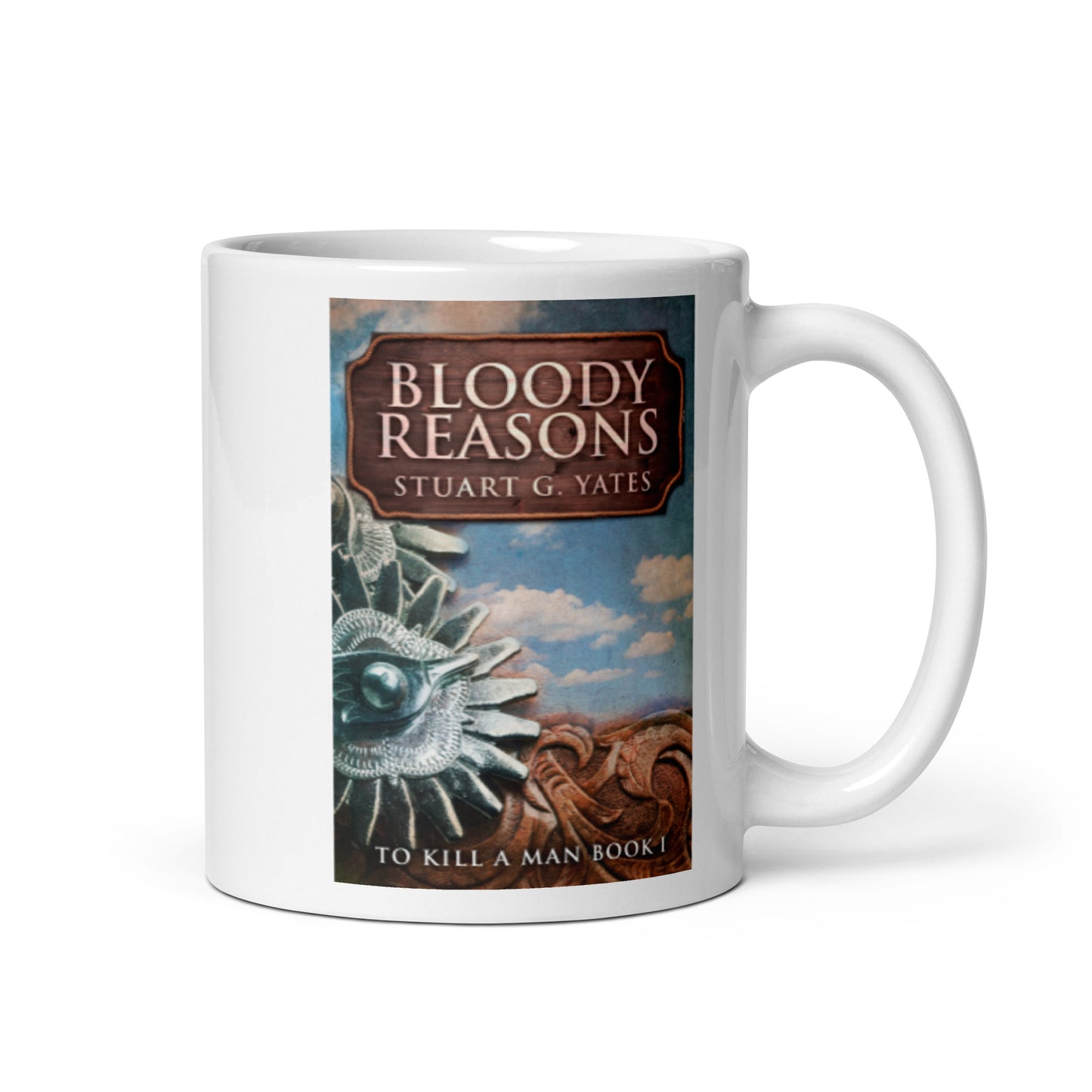 Whether you're drinking your morning coffee, evening tea, or something in between—this mug's for you! With beautiful cover art from Stuart G. Yates's book, Bloody Reasons, the mug is sturdy and glossy with a vivid print that'll withstand the microwave and dishwasher.
