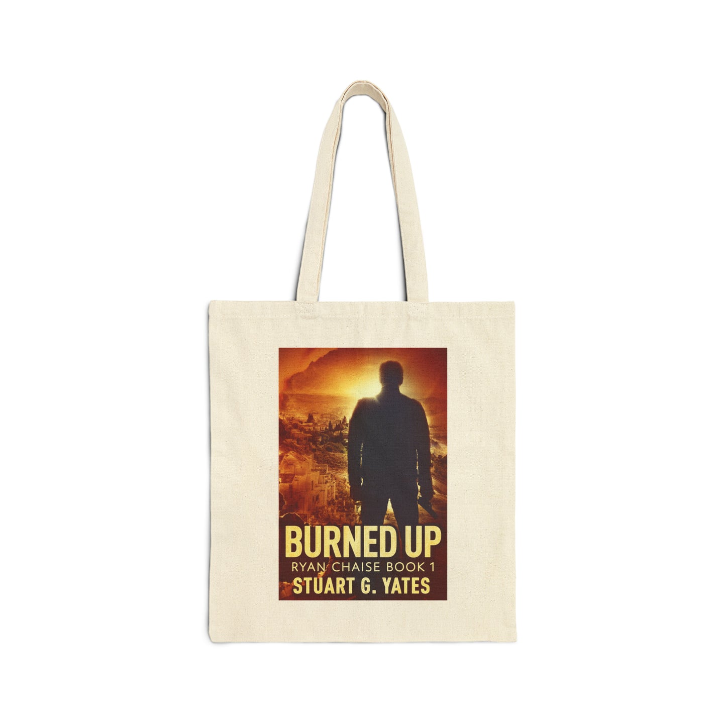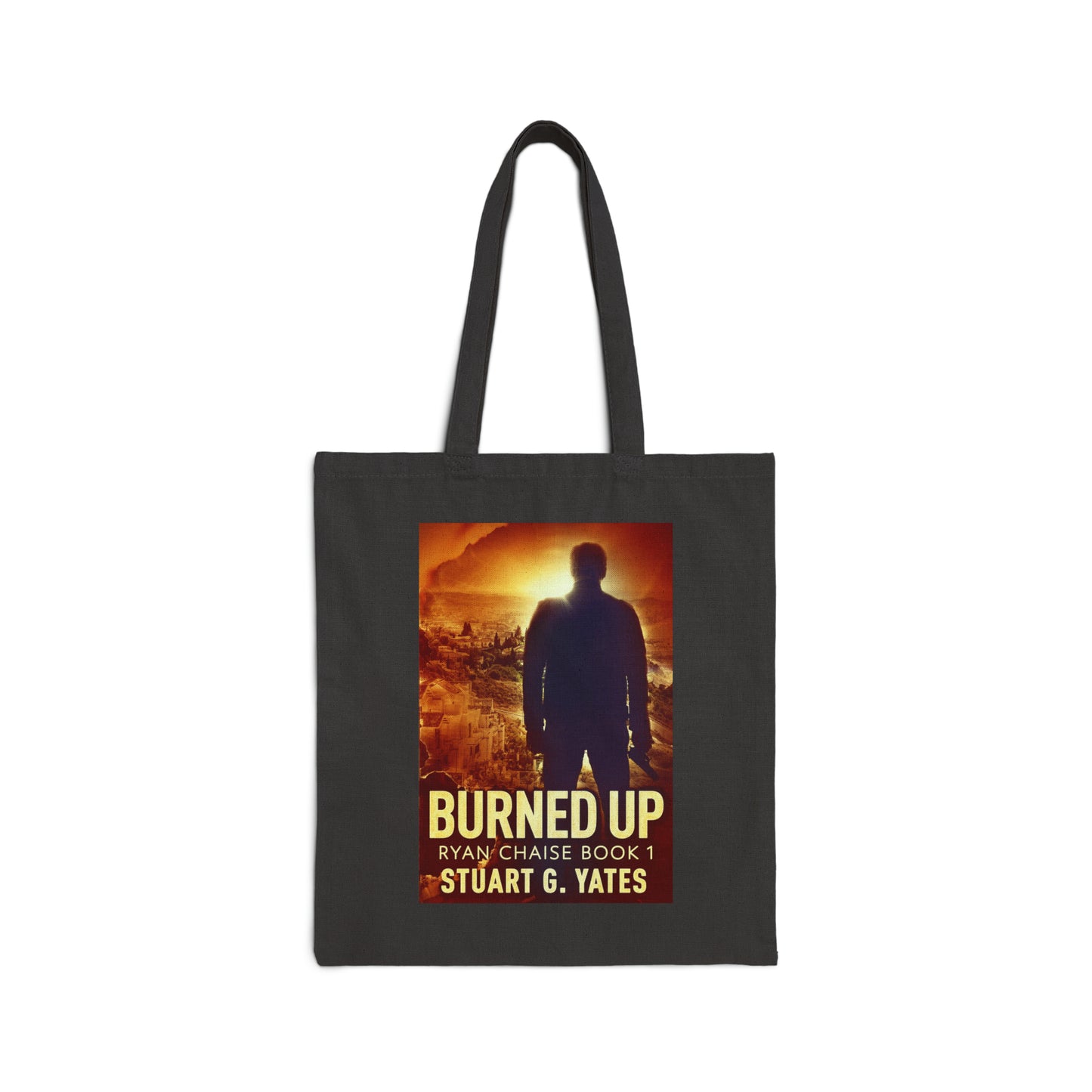 This 100% cotton bag comes in one size – 15" x 16"– perfect for everyday wear. The canvas material is durable and the bag features 20" handles, making it easy to carry even with a week's worth of shopping. The cover art in this tote bag is from Stuart G. Yates's book, Burned Up.