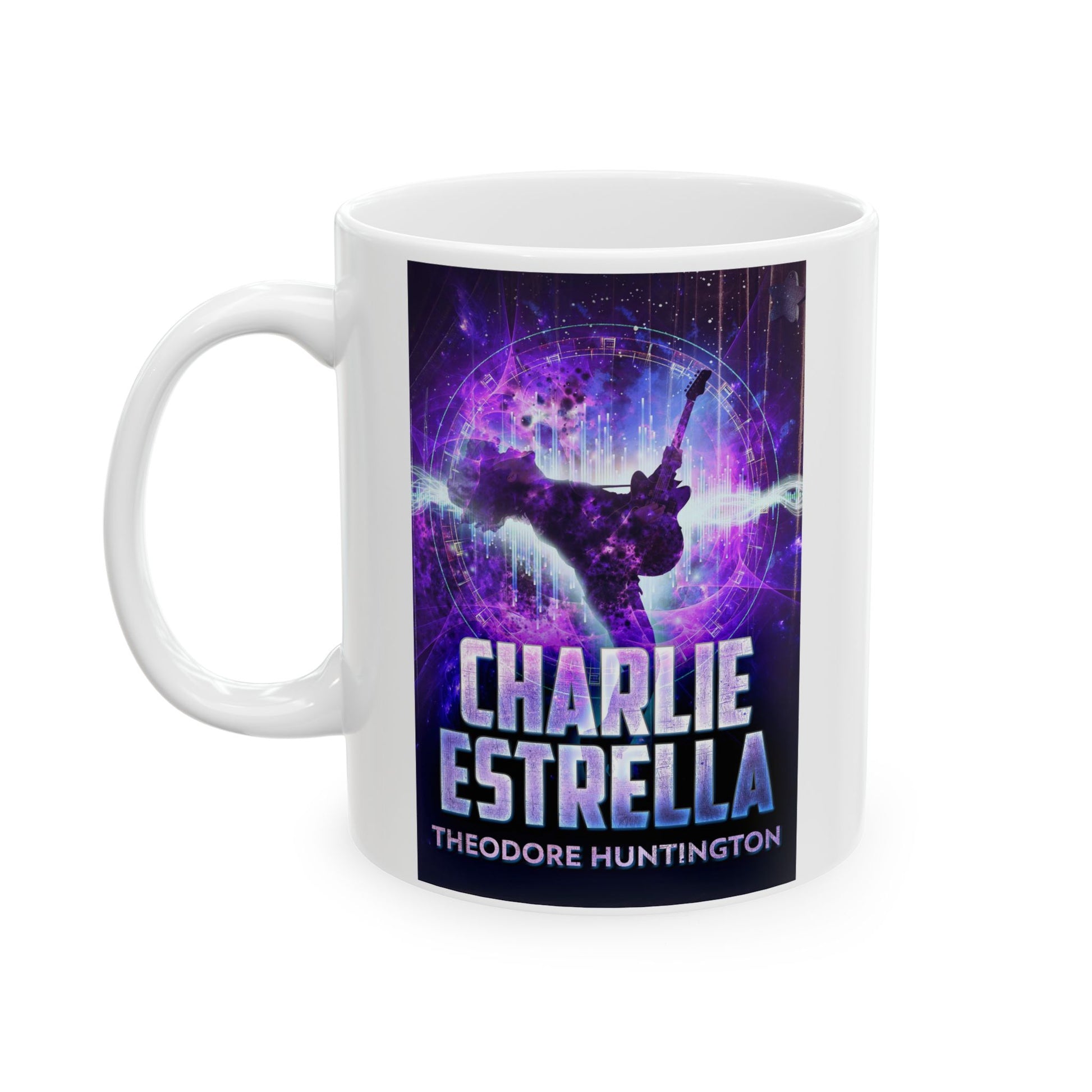 Warm your soul with a nice cuppa out of this perfectly sized white ceramic mug. It’s BPA and lead-free, microwave and dishwasher-safe, and made of durable ceramic. The cover art in this coffee mug is from Theodore Huntington's book, Charlie Estrella.