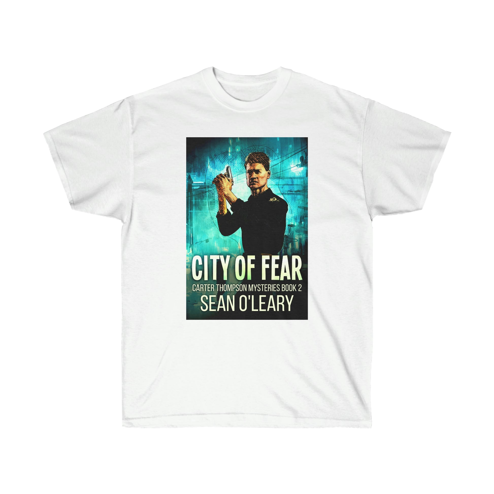 This cotton tee is a classic. Quality construction means that designs are sure to shine, and the shoulders are tapped for a good upper-body fit. There are no side seams, ensuring a clean, unbroken flow. The collar has ribbed knitting for improved elasticity, and the materials that went into this product are sustainably sourced and economically friendly. The cover art in this T-shirt is from Sean O'Leary's book, City Of Fear.