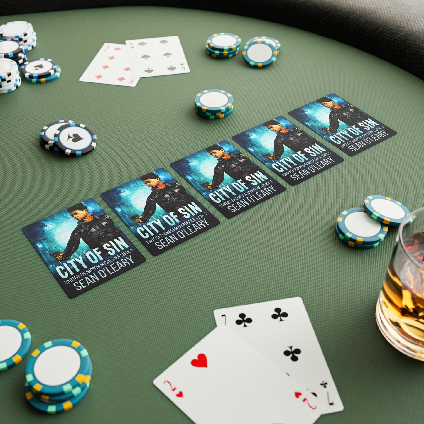 Card games are a great deal of fun, and a deck of custom cards brings so much more entertainment to the table. Made with high-grade 300gsm paper that features a glossy UV-resistant coating, this deck resists cracking and folding. The cover art in this card deck is from Sean O'Leary's book, City Of Sin.