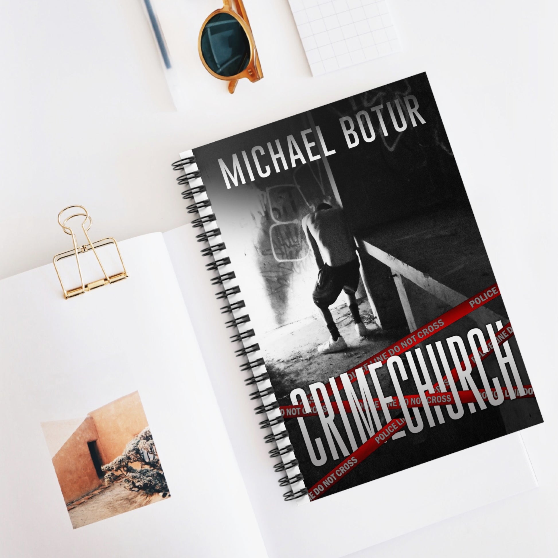 Shopping lists, school notes or poems - this 118 page spiral notebook with ruled line paper is a perfect companion in everyday life. The cover art in this spiral notebook is from Michael Botur's book, Crimechurch.