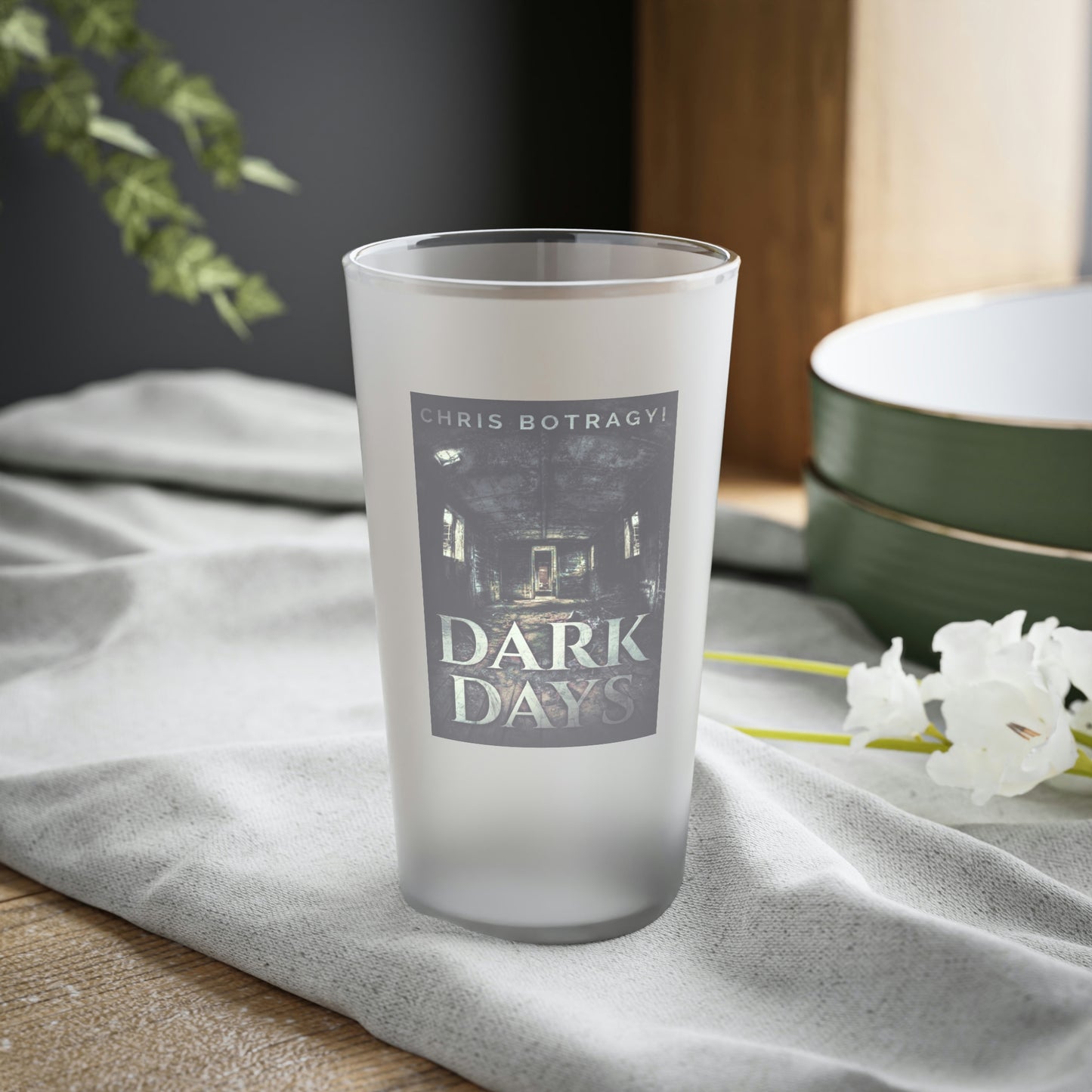 This frosted matte finish pint glass is versatile and dishwasher-safe. The cover art in this pint glass is from Chris Botragyi's book, Dark Days.