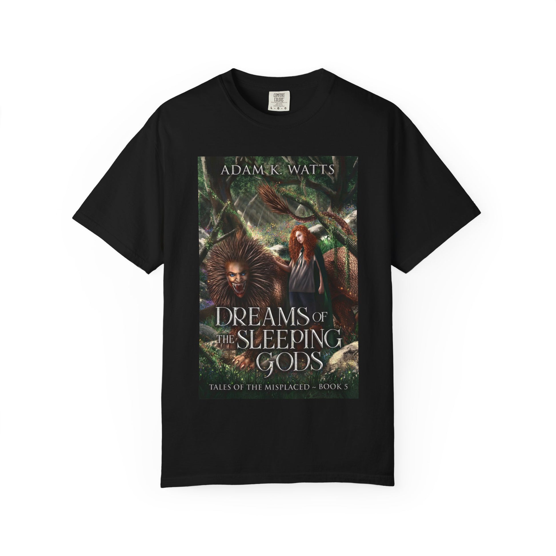This soft-washed, garment-dyed T-shirt will bring extra coziness to your wardrobe while the relaxed fit makes it an excellent daily choice. The double-needle stitching throughout the tee makes it highly durable, while the lack of side seams helps the shirt retain its shape. The book cover art on this T-shirt is from Adam K. Watts's book, Dreams of the Sleeping Gods.