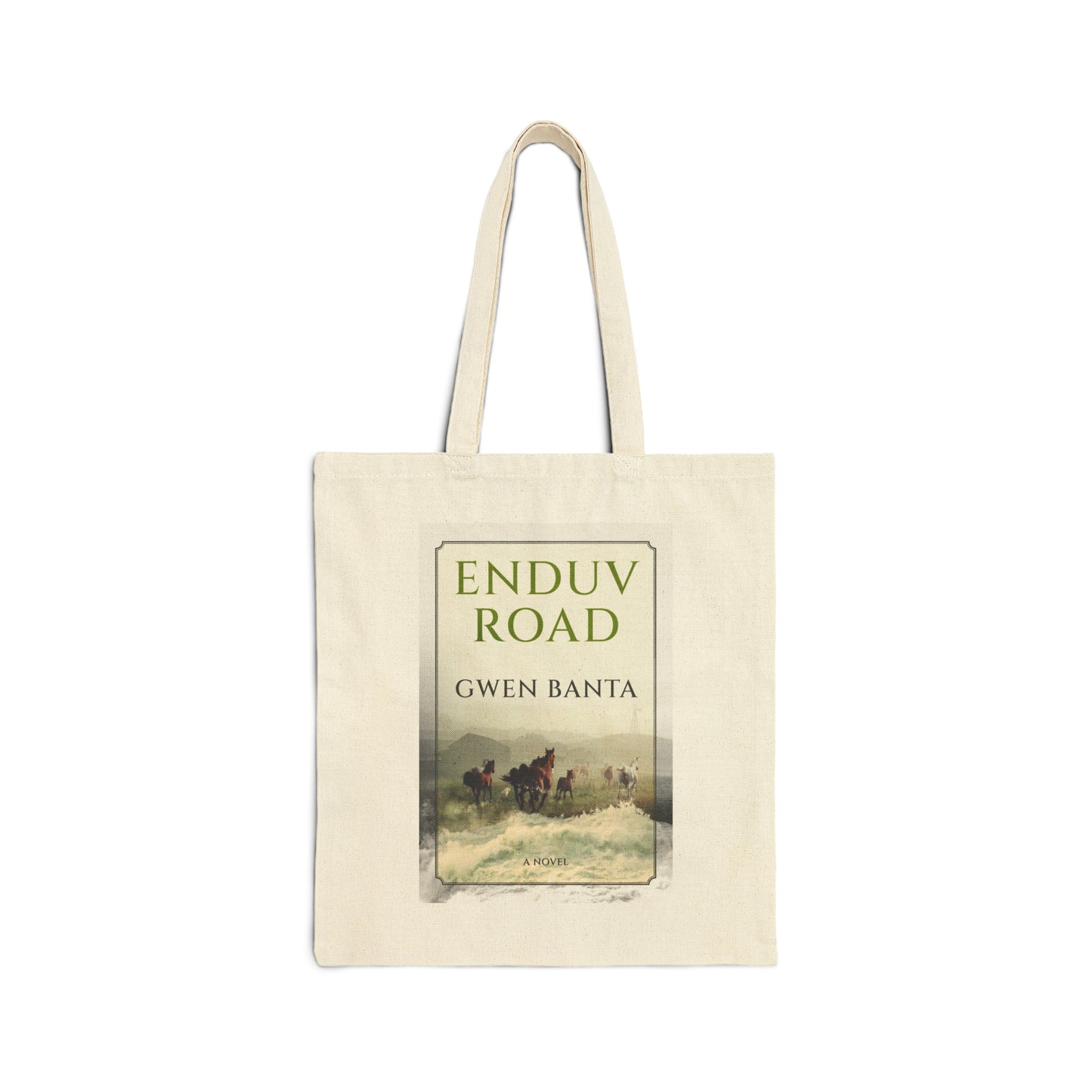 This 100% cotton bag comes in one size – 15" x 16"– perfect for everyday wear. The canvas material is durable and the bag features 20" handles, making it easy to carry even with a week's worth of shopping. The cover art in this tote bag is from Gwen Banta's book, Enduv Road.