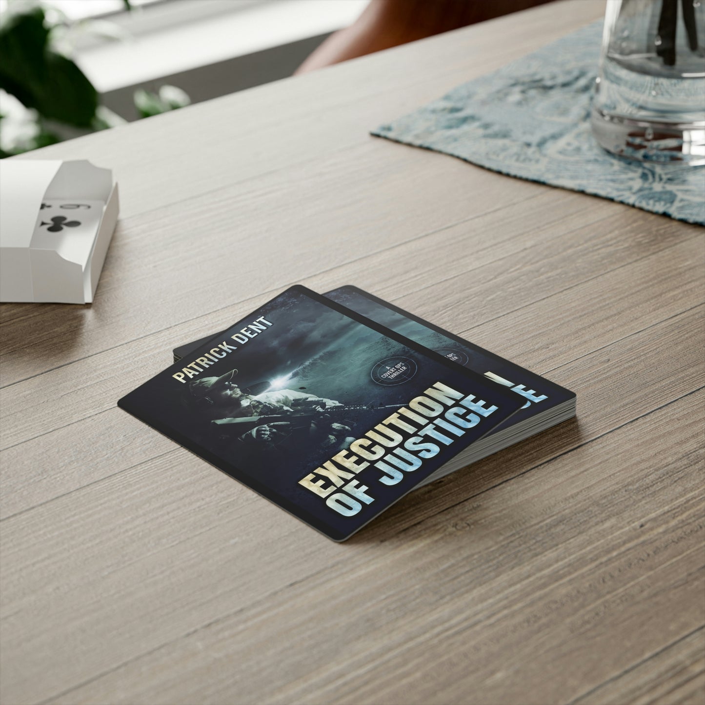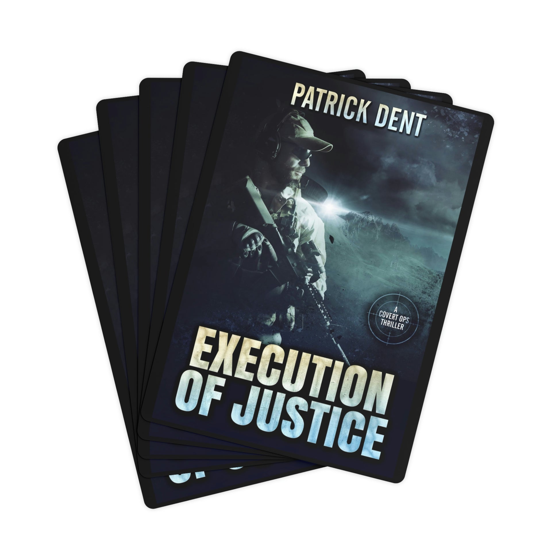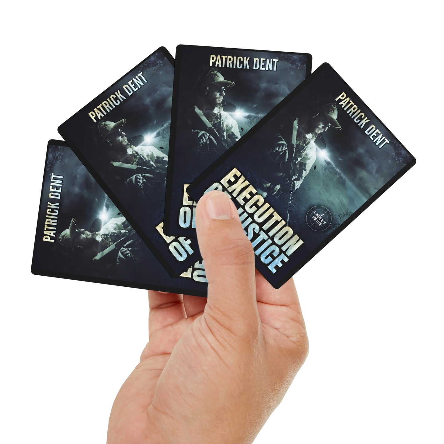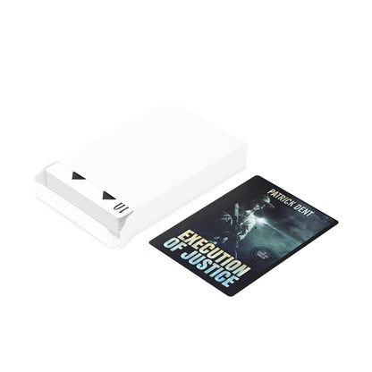 Card games are a great deal of fun, and a deck of custom cards brings so much more entertainment to the table. Made with high-grade 300gsm paper that features a glossy UV-resistant coating, this deck resists cracking and folding. The cover art in this card deck is from Patrick Dent's book, Execution of Justice.