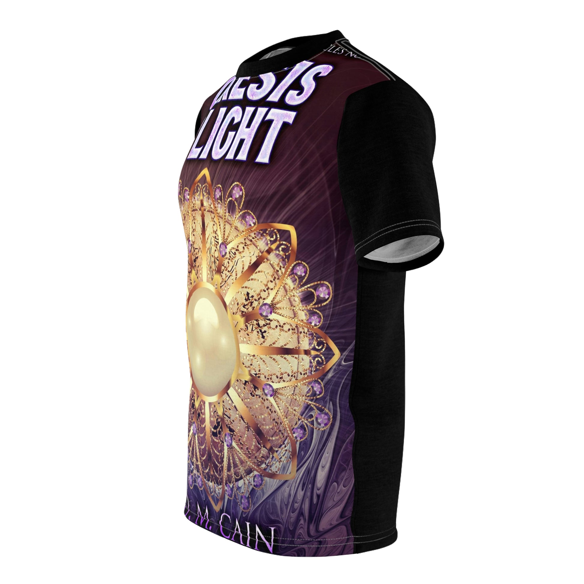This tee is a versatile, stylish companion for all your casual appearances. With its uniquely textured, thick, microfiber-knit fabric, this T-shirt bears a premium, soft feel that remains lightweight and highly breathable – the perfect combo for a hot day or layering. The cover art in this all-over print T-shirt is from D.M. Cain's book, Genesis Of Light.