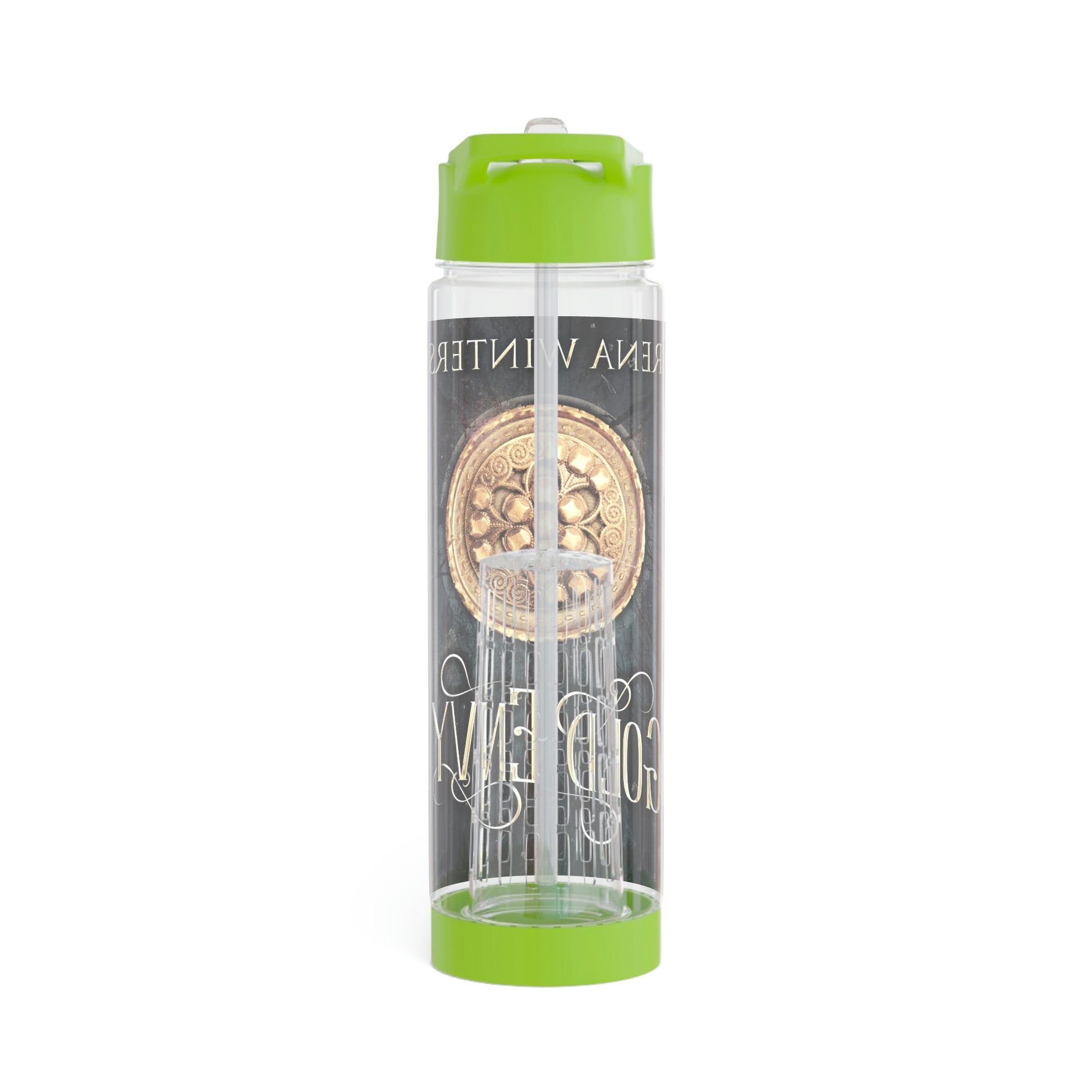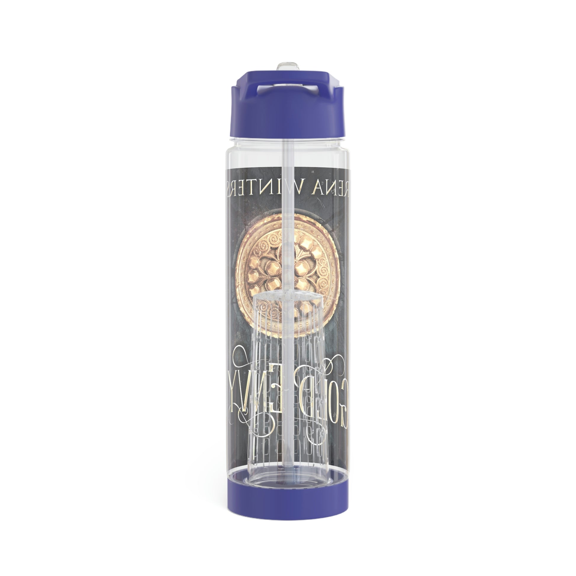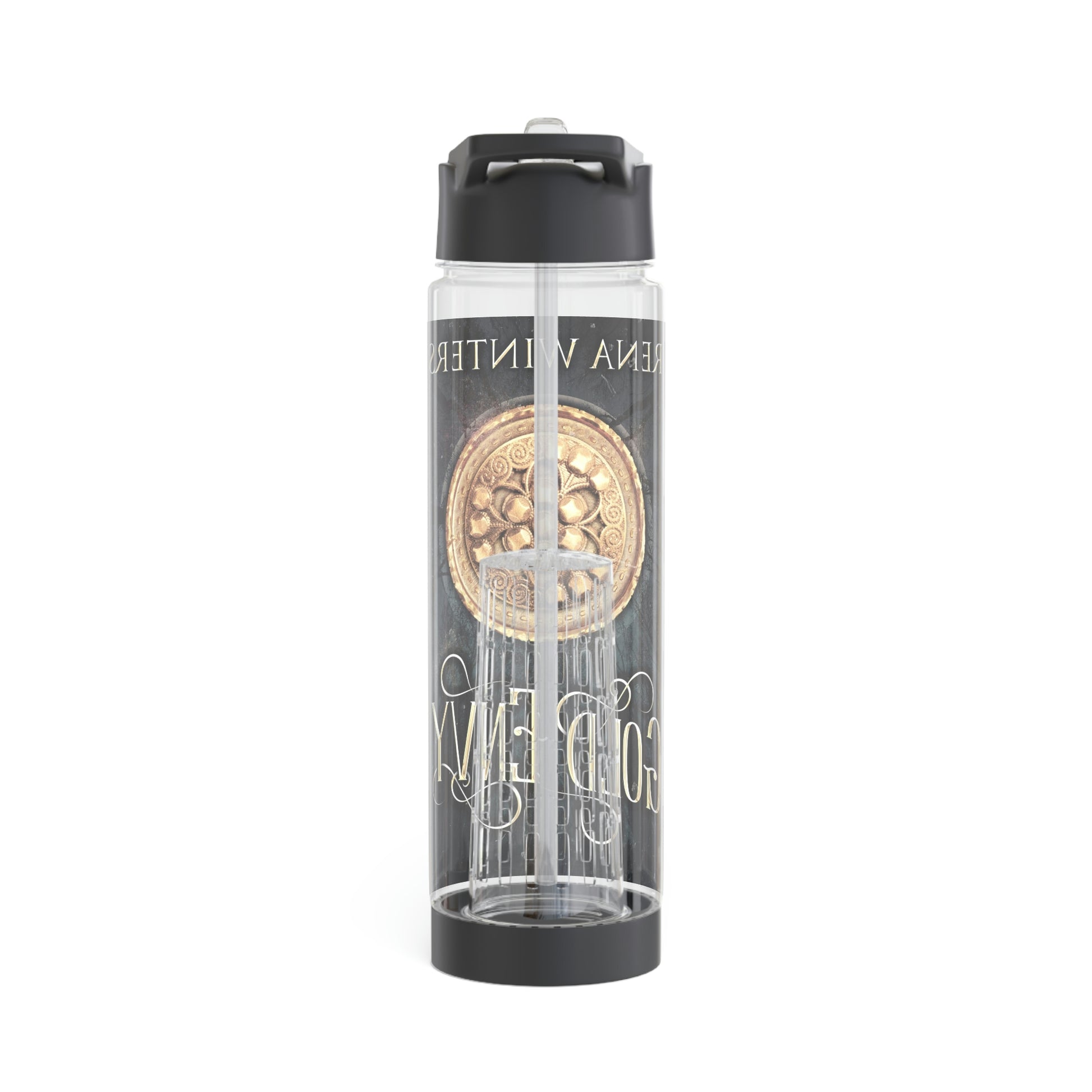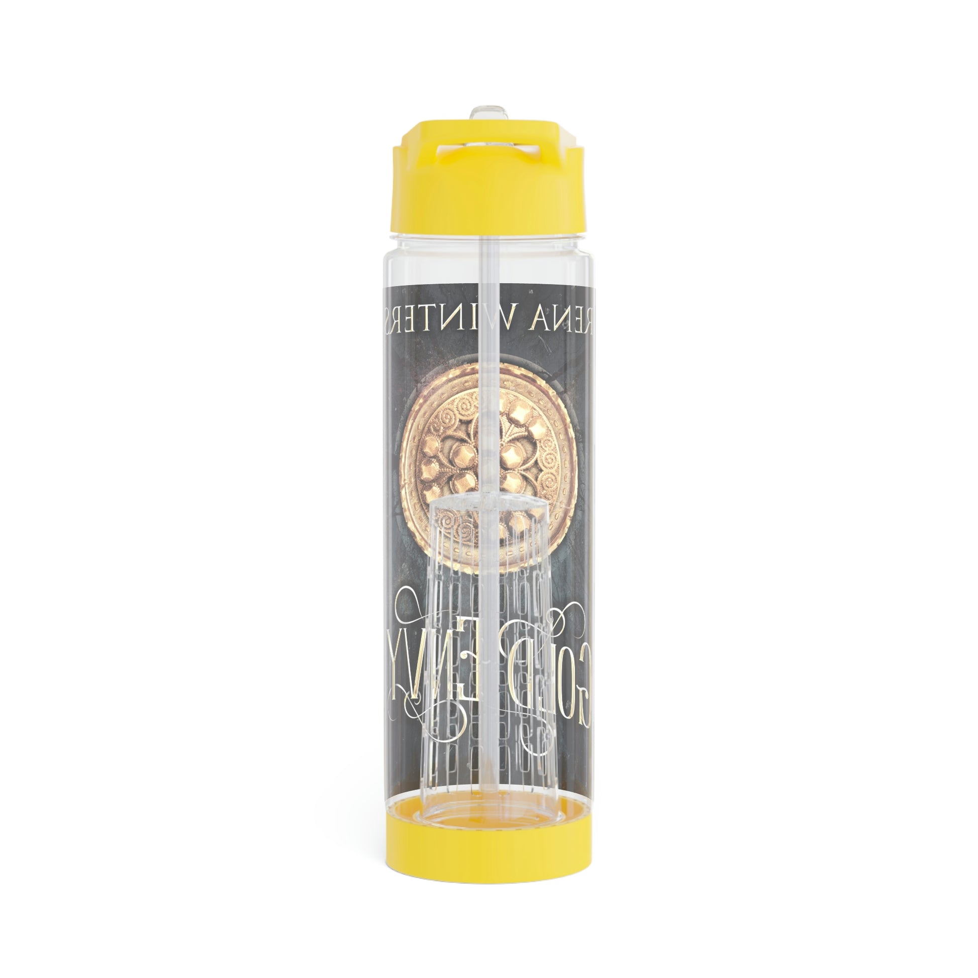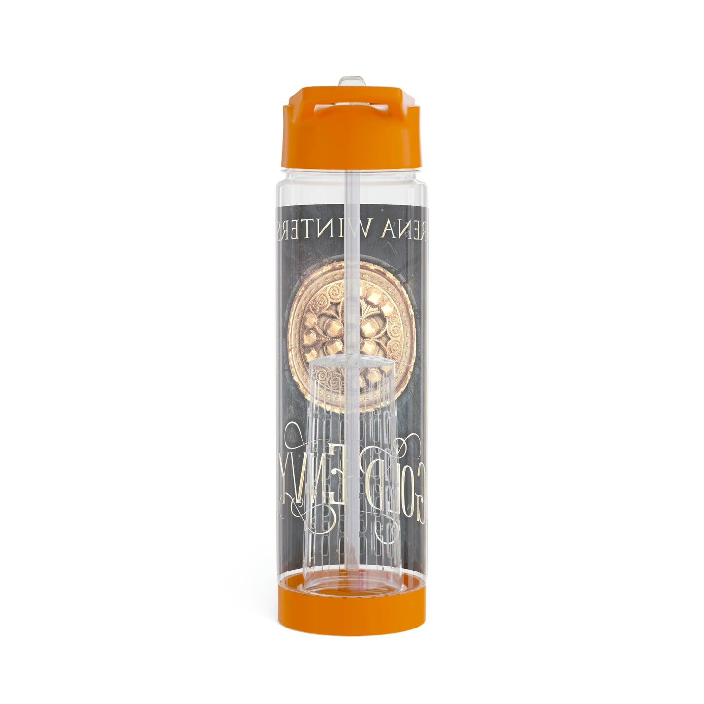 Add flavor and personality to your water with this infuser bottle. Twist the base off to access the infuser and add fruits, tea leaves, or anything you desire to enhance the flavor of your water. On the top, you'll find a twist-on lid with a flip-top drinking sprout for a seamless drinking experience. This infuser is excellent for using at home, during outdoor excursions, or at the gym as a sports bottle. The cover art in this infuser water bottle is from Rena Winters's book, Gold Envy.