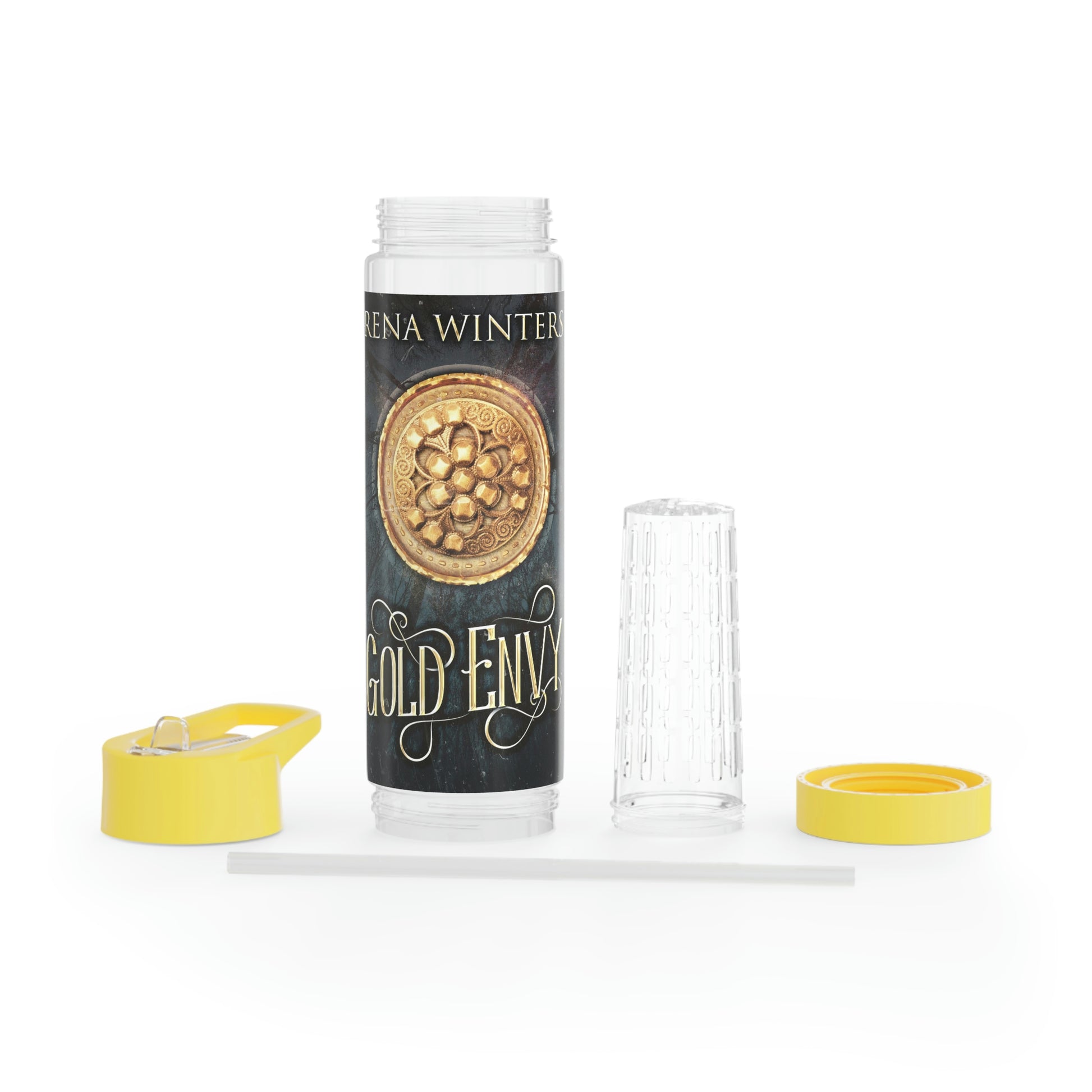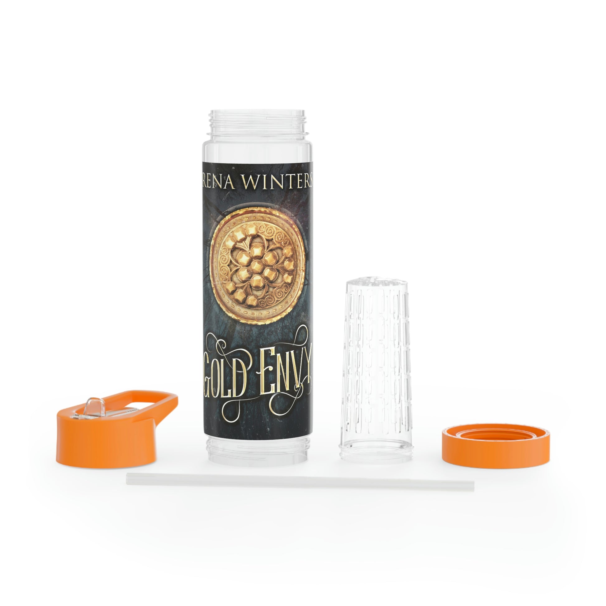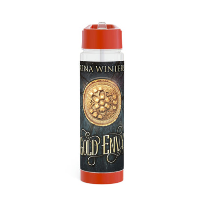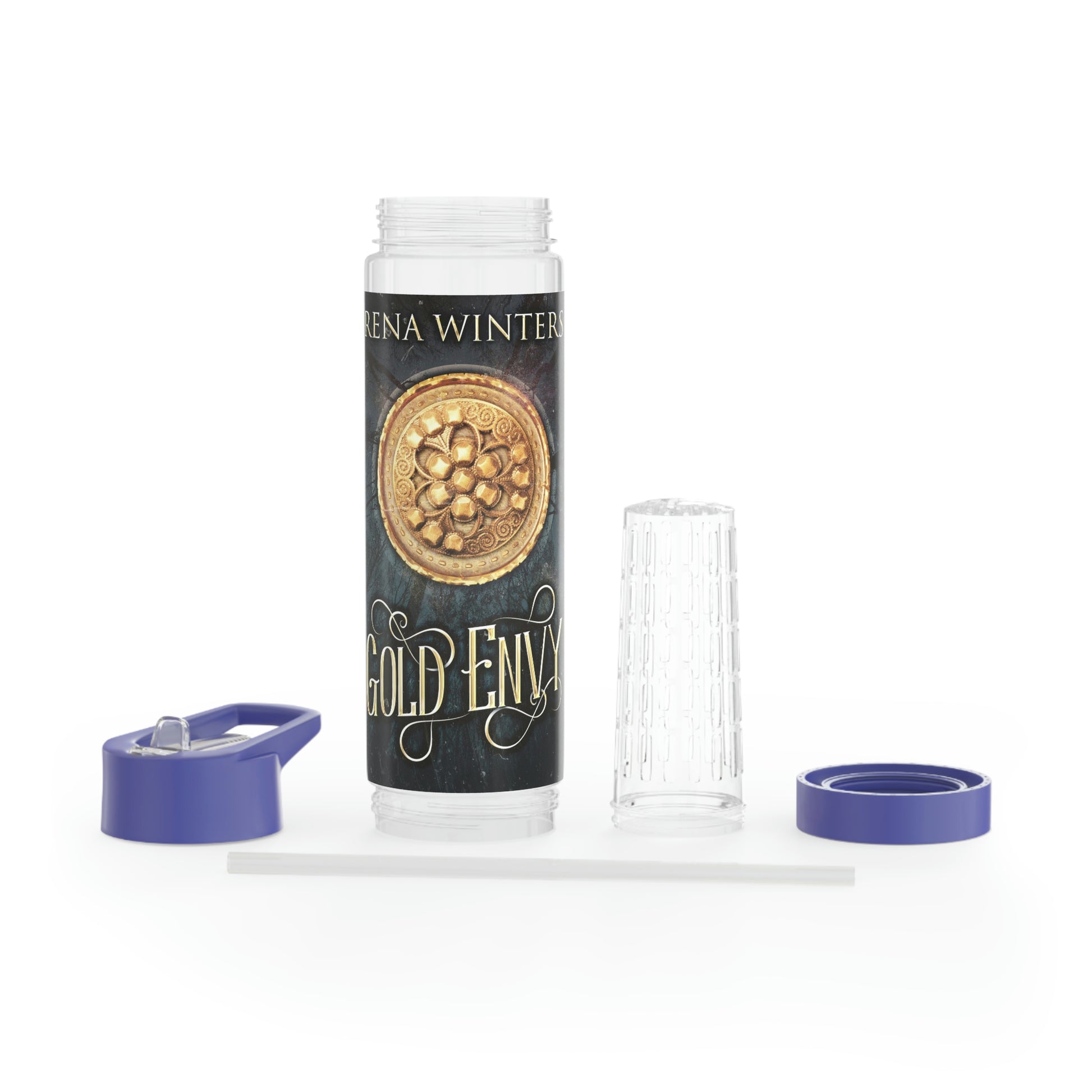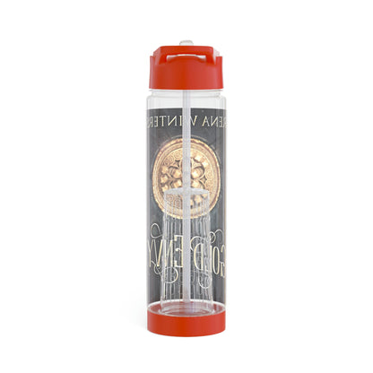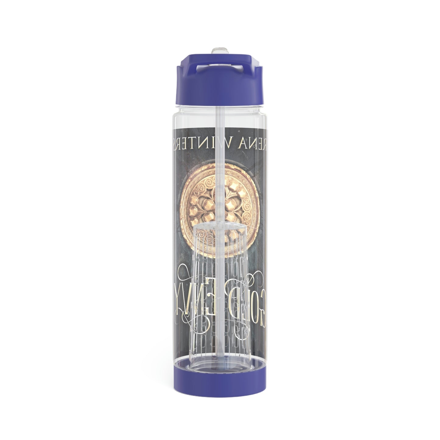 Add flavor and personality to your water with this infuser bottle. Twist the base off to access the infuser and add fruits, tea leaves, or anything you desire to enhance the flavor of your water. On the top, you'll find a twist-on lid with a flip-top drinking sprout for a seamless drinking experience. This infuser is excellent for using at home, during outdoor excursions, or at the gym as a sports bottle. The cover art in this infuser water bottle is from Rena Winters's book, Gold Envy.