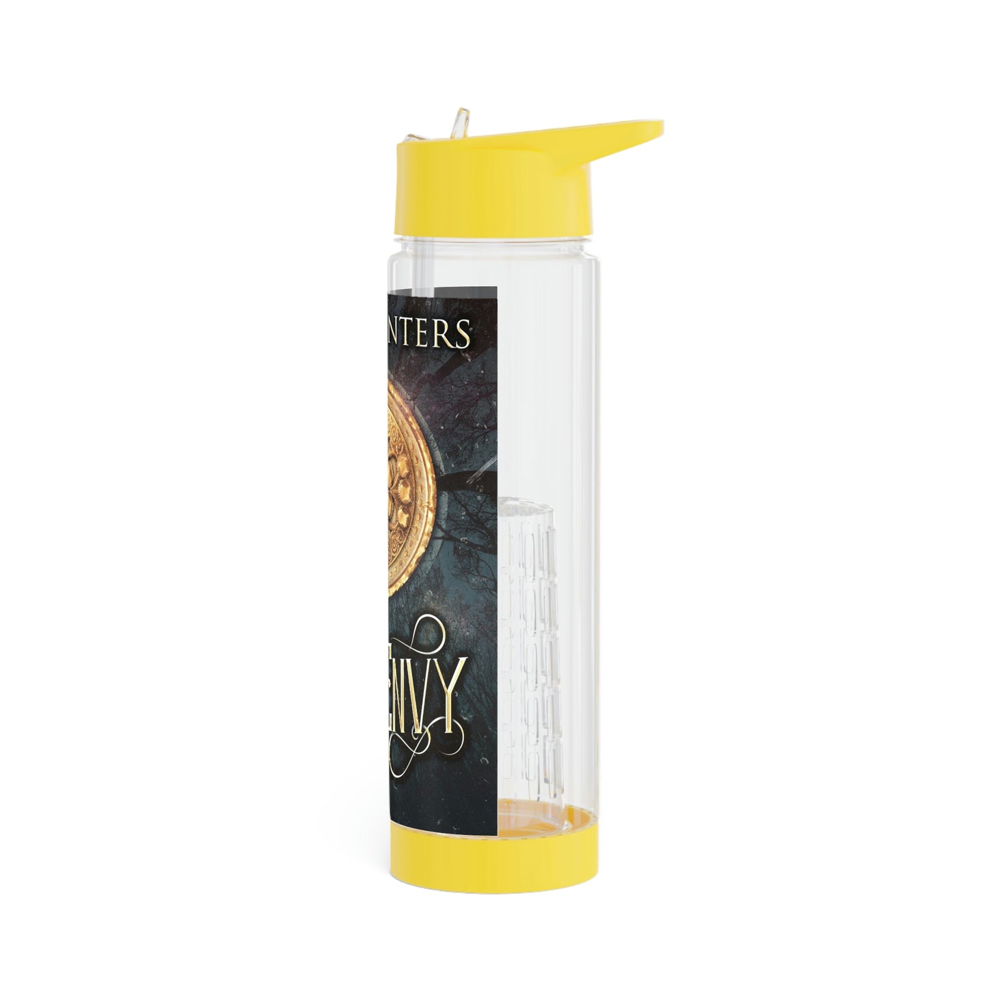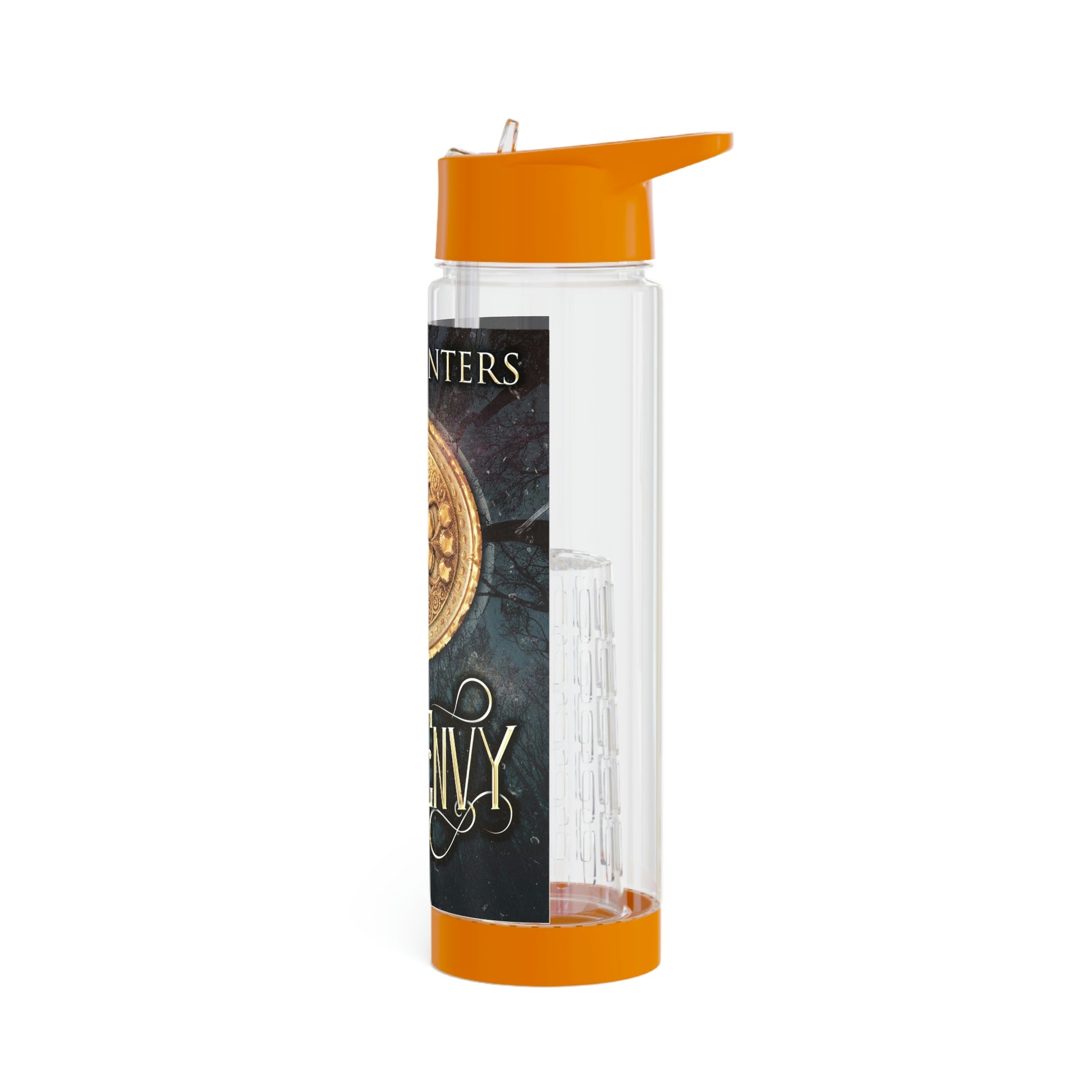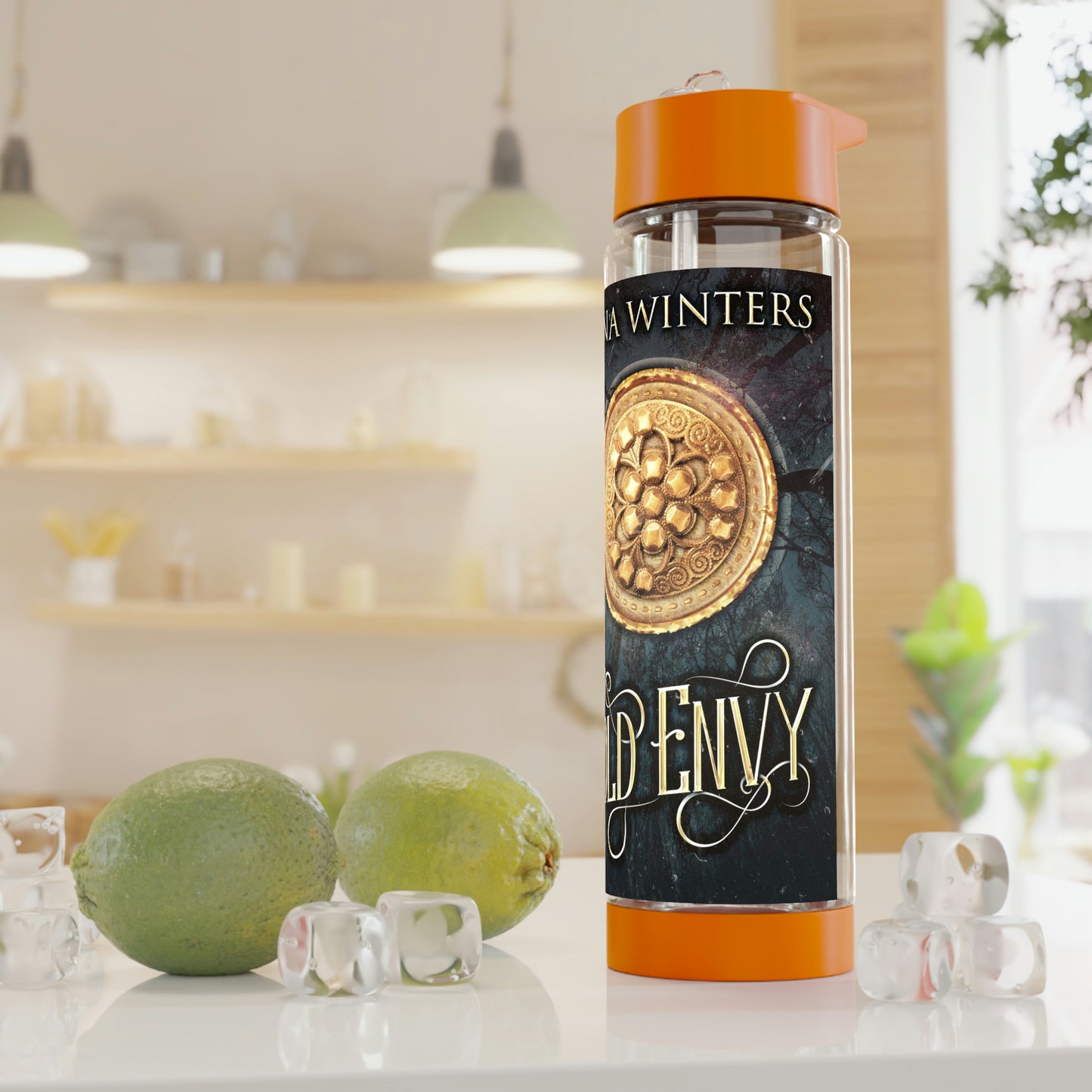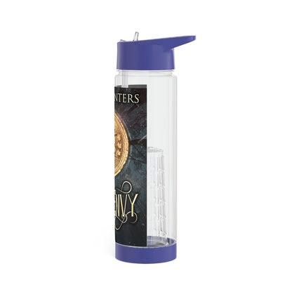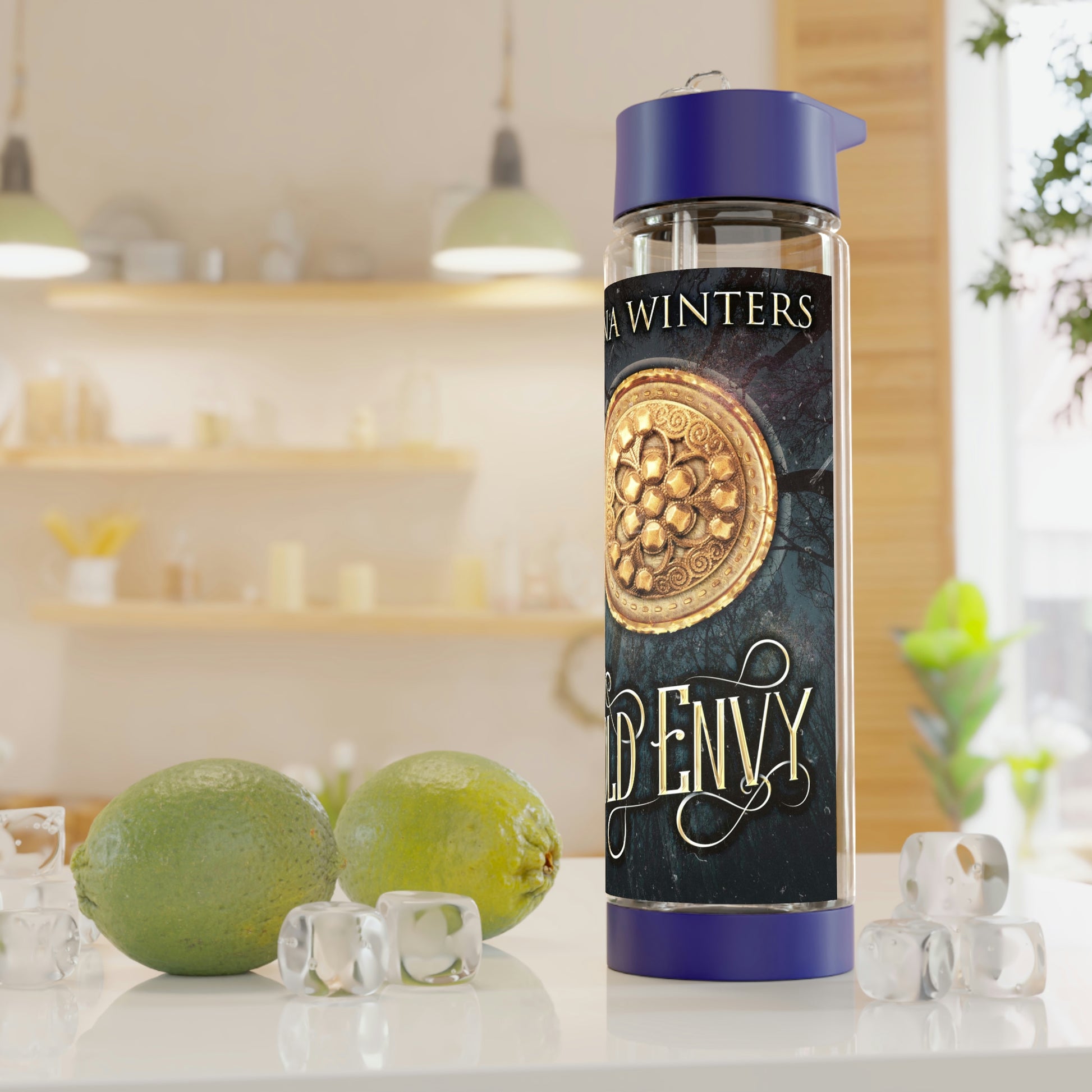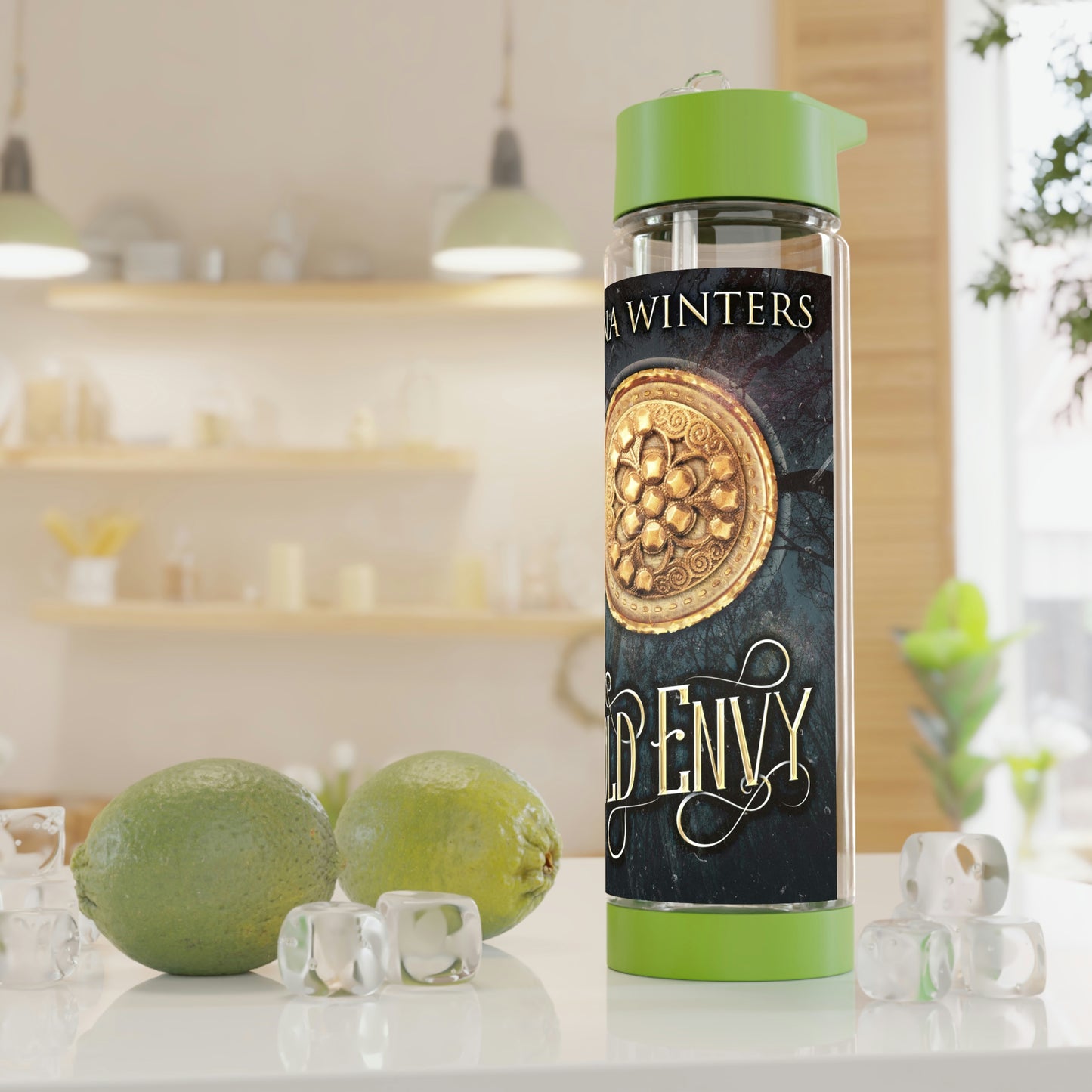 Add flavor and personality to your water with this infuser bottle. Twist the base off to access the infuser and add fruits, tea leaves, or anything you desire to enhance the flavor of your water. On the top, you'll find a twist-on lid with a flip-top drinking sprout for a seamless drinking experience. This infuser is excellent for using at home, during outdoor excursions, or at the gym as a sports bottle. The cover art in this infuser water bottle is from Rena Winters's book, Gold Envy.