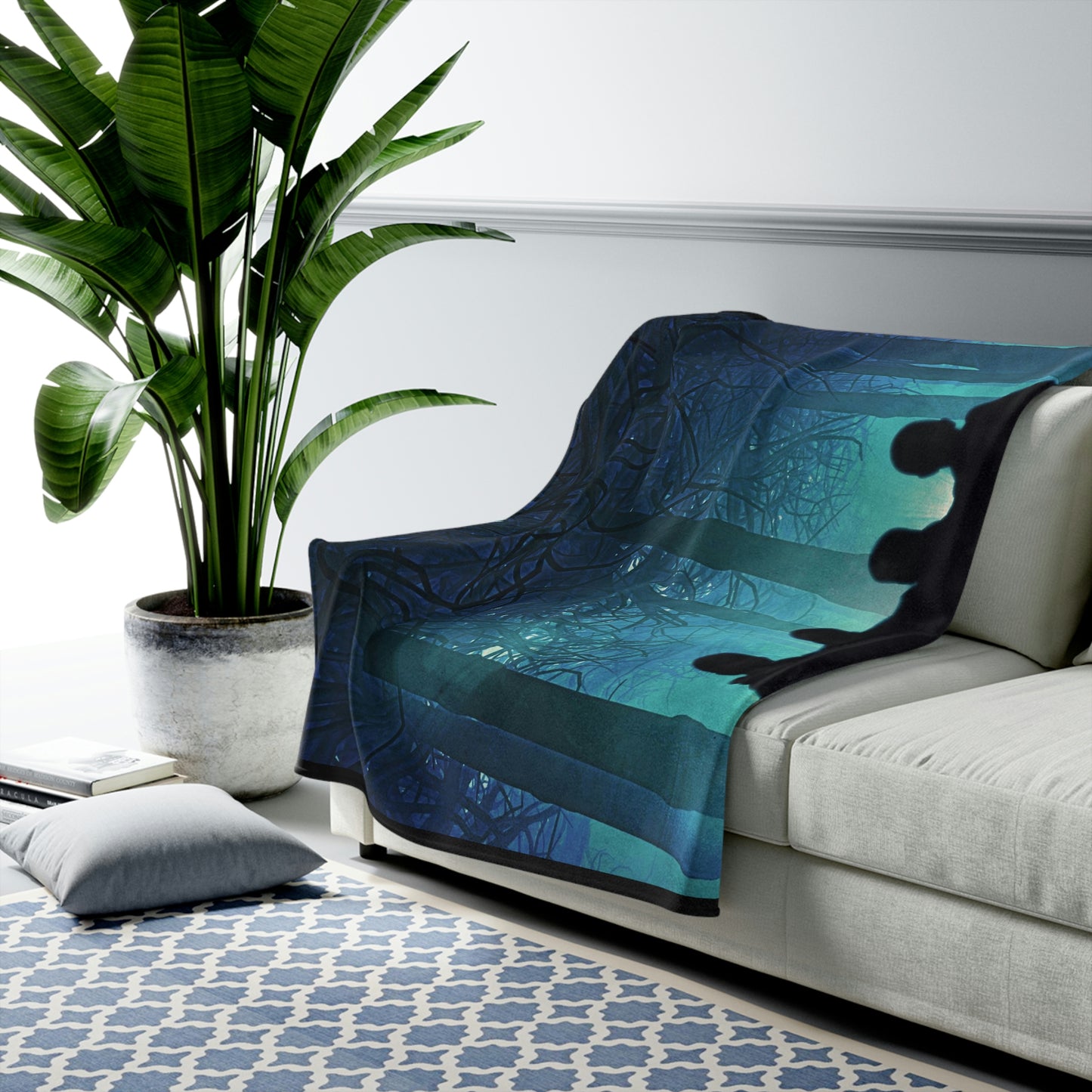 Create a cozy and warm atmosphere at home with this plush velveteen blanket. It is soft to touch and perfect for any home. The cover art in this blanket is from Ian Taylor & Rosi Taylor's book, GUILT.