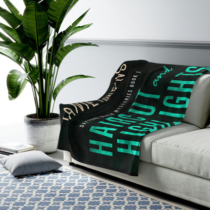 Create a cozy and warm atmosphere at home with this plush velveteen blanket. It is soft to touch and perfect for any home. The cover art in this blanket is from Janie Owens's book, Haircut and Highlights.