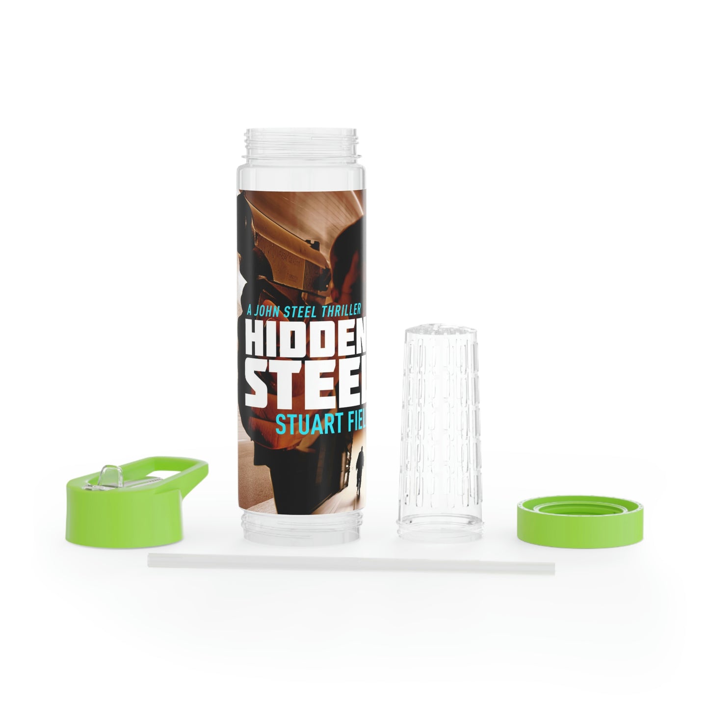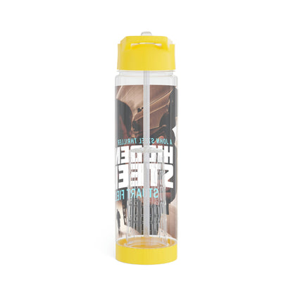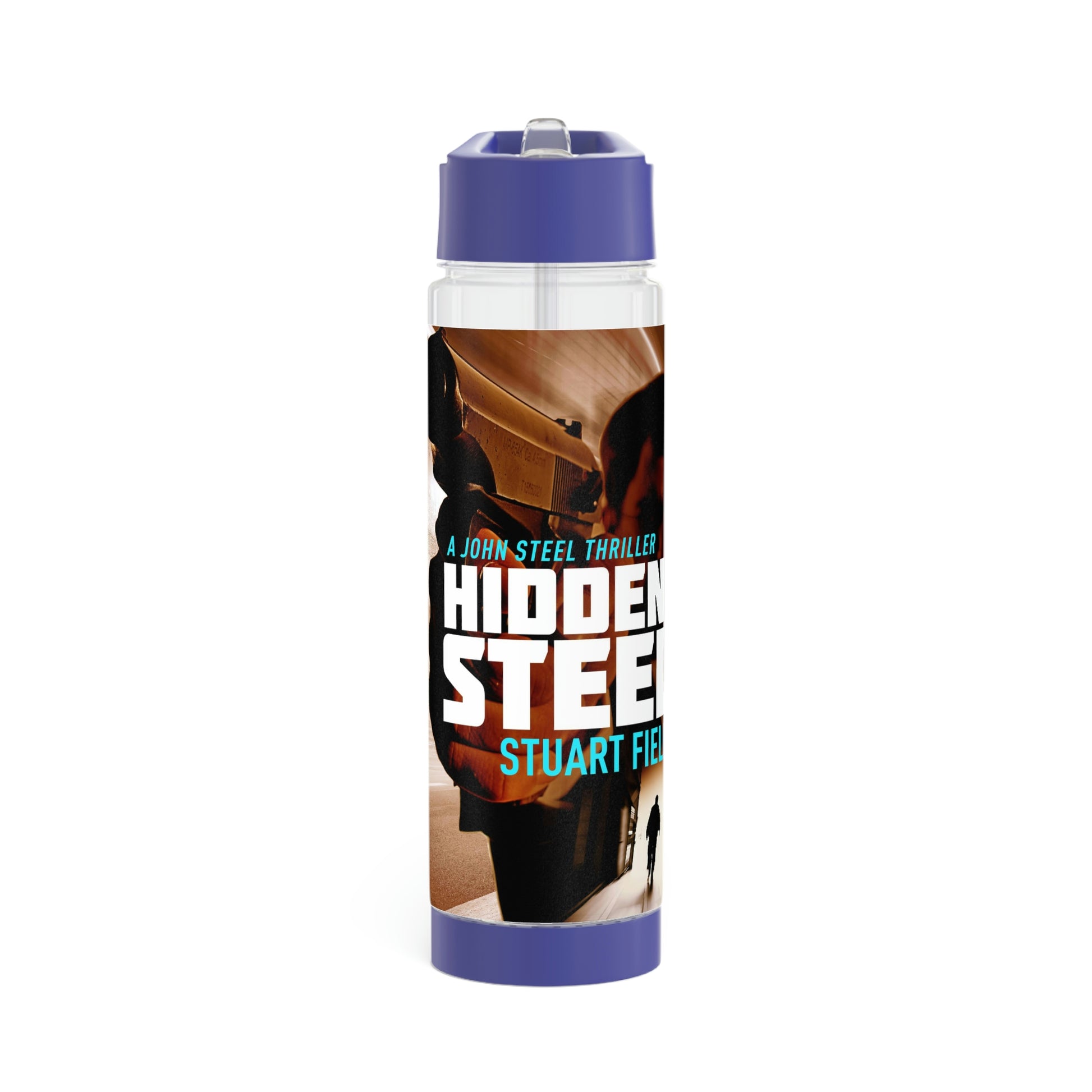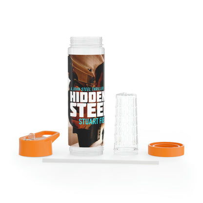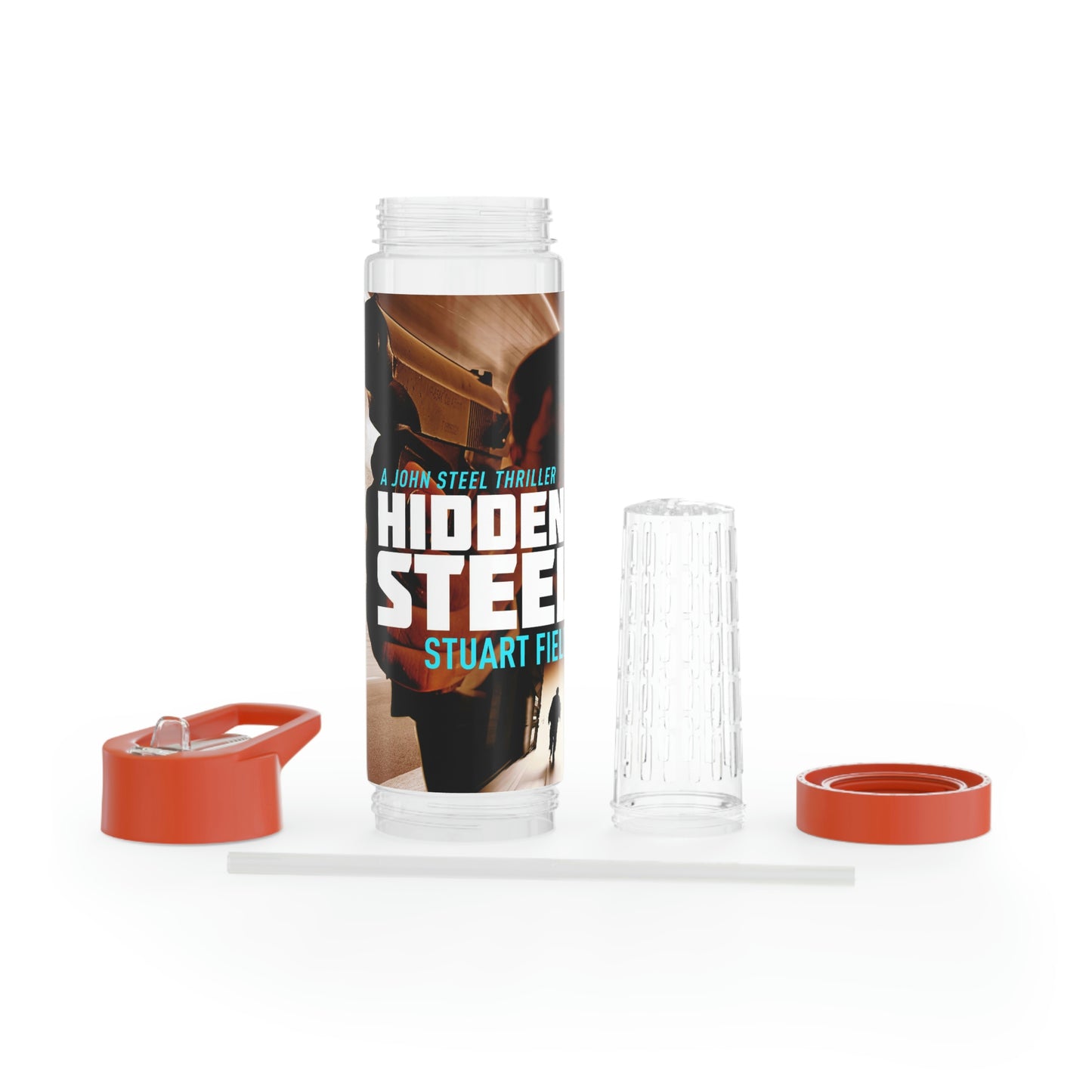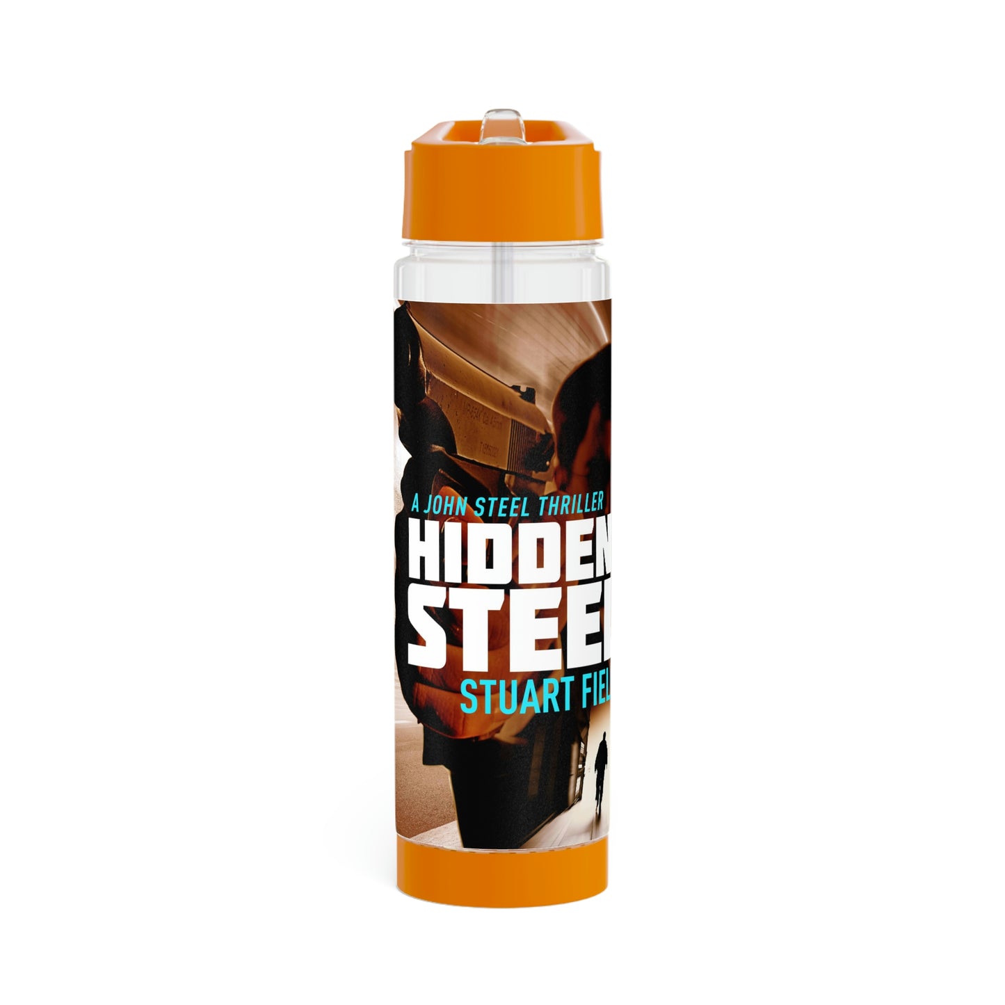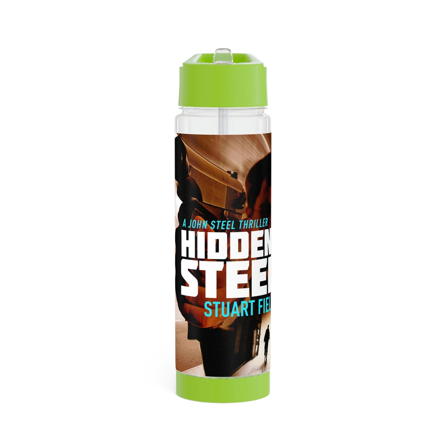 Add flavor and personality to your water with this infuser bottle. Twist the base off to access the infuser and add fruits, tea leaves, or anything you desire to enhance the flavor of your water. On the top, you'll find a twist-on lid with a flip-top drinking sprout for a seamless drinking experience. This infuser is excellent for using at home, during outdoor excursions, or at the gym as a sports bottle. The cover art in this infuser water bottle is from Stuart Field's book, Hidden Steel.