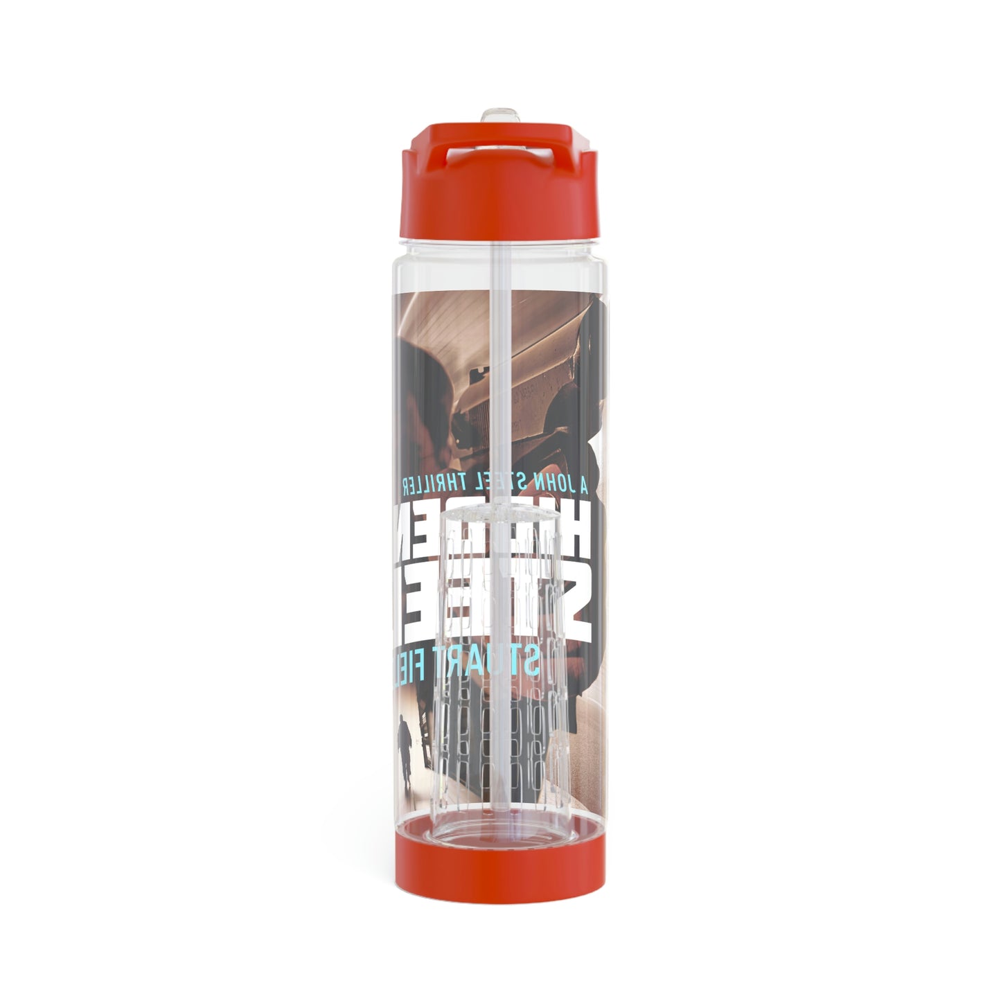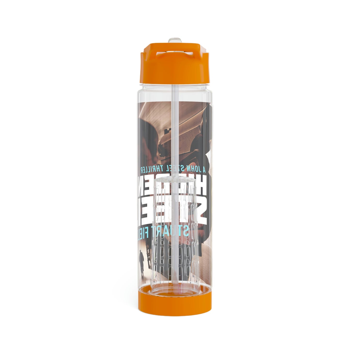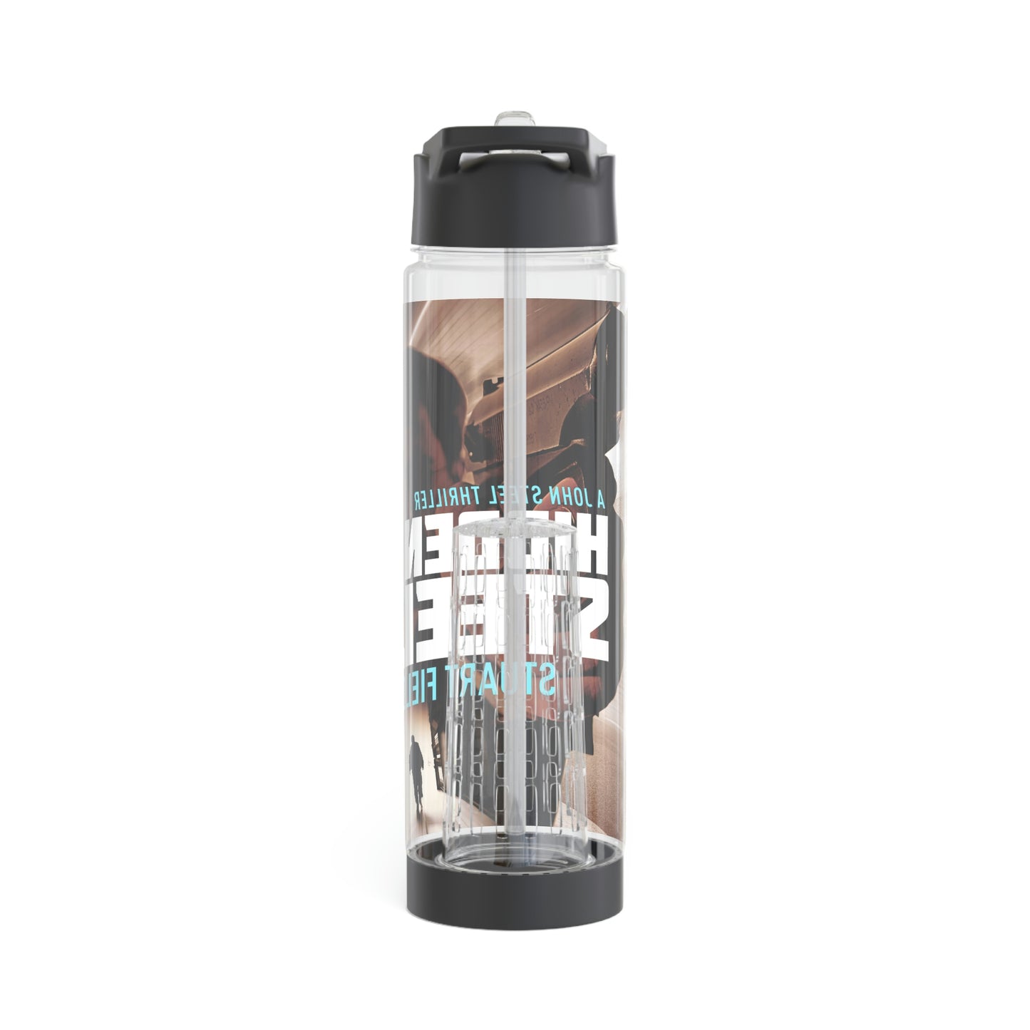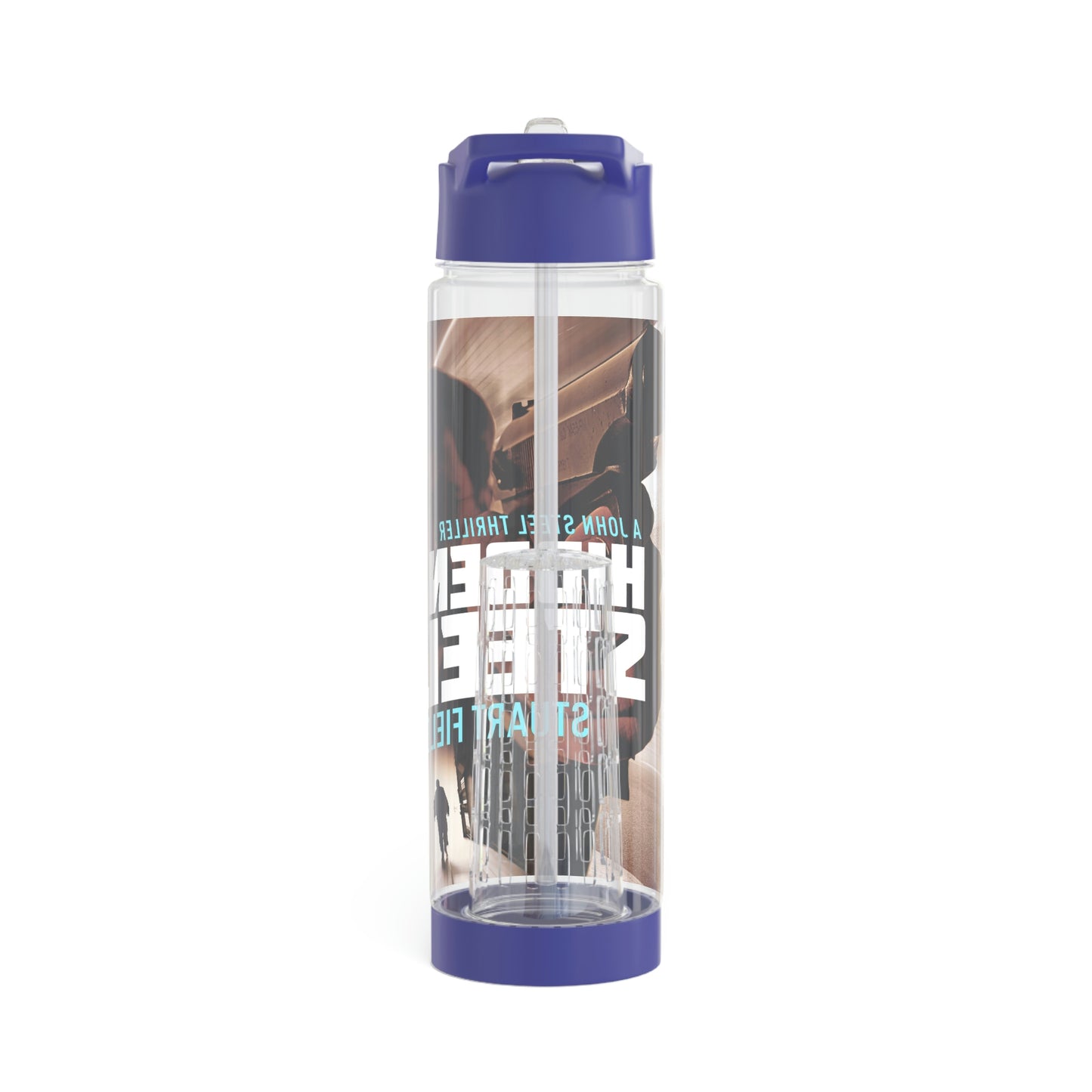 Add flavor and personality to your water with this infuser bottle. Twist the base off to access the infuser and add fruits, tea leaves, or anything you desire to enhance the flavor of your water. On the top, you'll find a twist-on lid with a flip-top drinking sprout for a seamless drinking experience. This infuser is excellent for using at home, during outdoor excursions, or at the gym as a sports bottle. The cover art in this infuser water bottle is from Stuart Field's book, Hidden Steel.