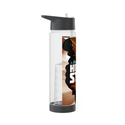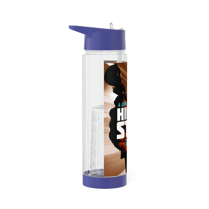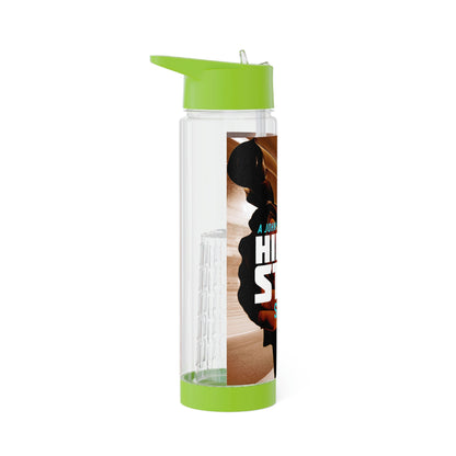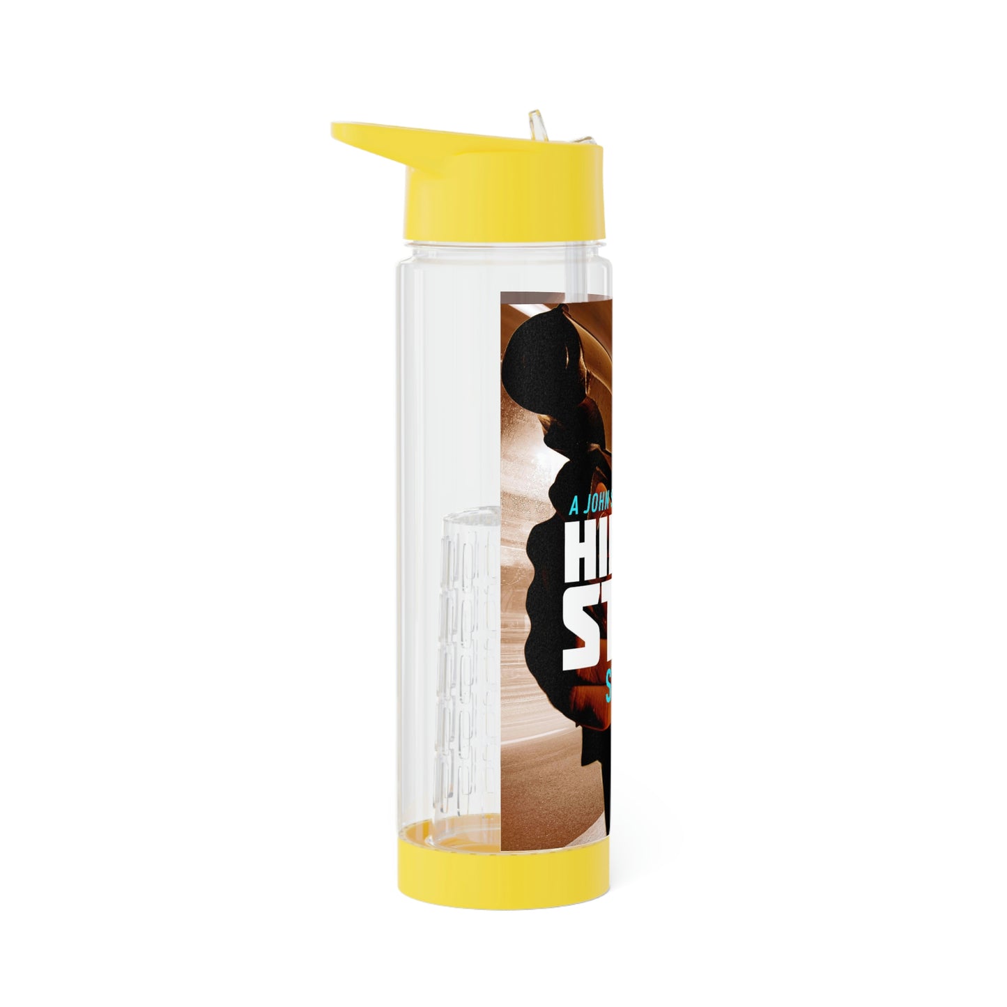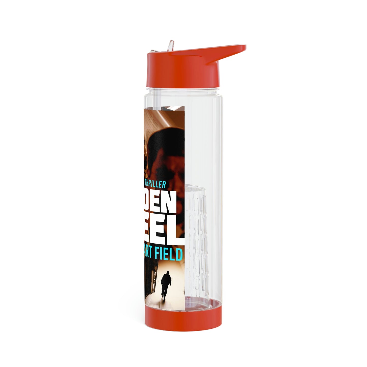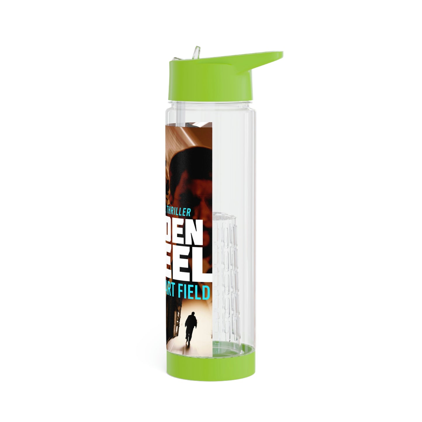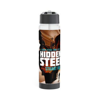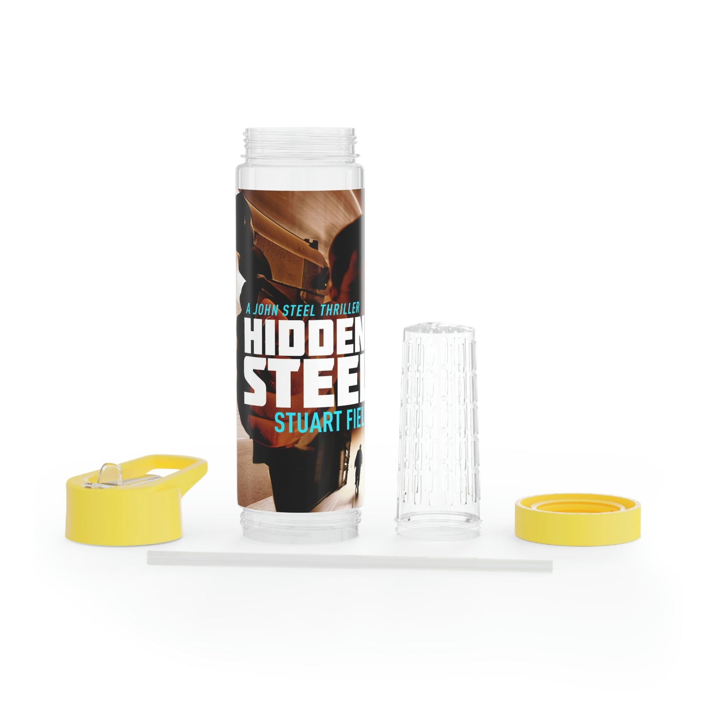 Add flavor and personality to your water with this infuser bottle. Twist the base off to access the infuser and add fruits, tea leaves, or anything you desire to enhance the flavor of your water. On the top, you'll find a twist-on lid with a flip-top drinking sprout for a seamless drinking experience. This infuser is excellent for using at home, during outdoor excursions, or at the gym as a sports bottle. The cover art in this infuser water bottle is from Stuart Field's book, Hidden Steel.