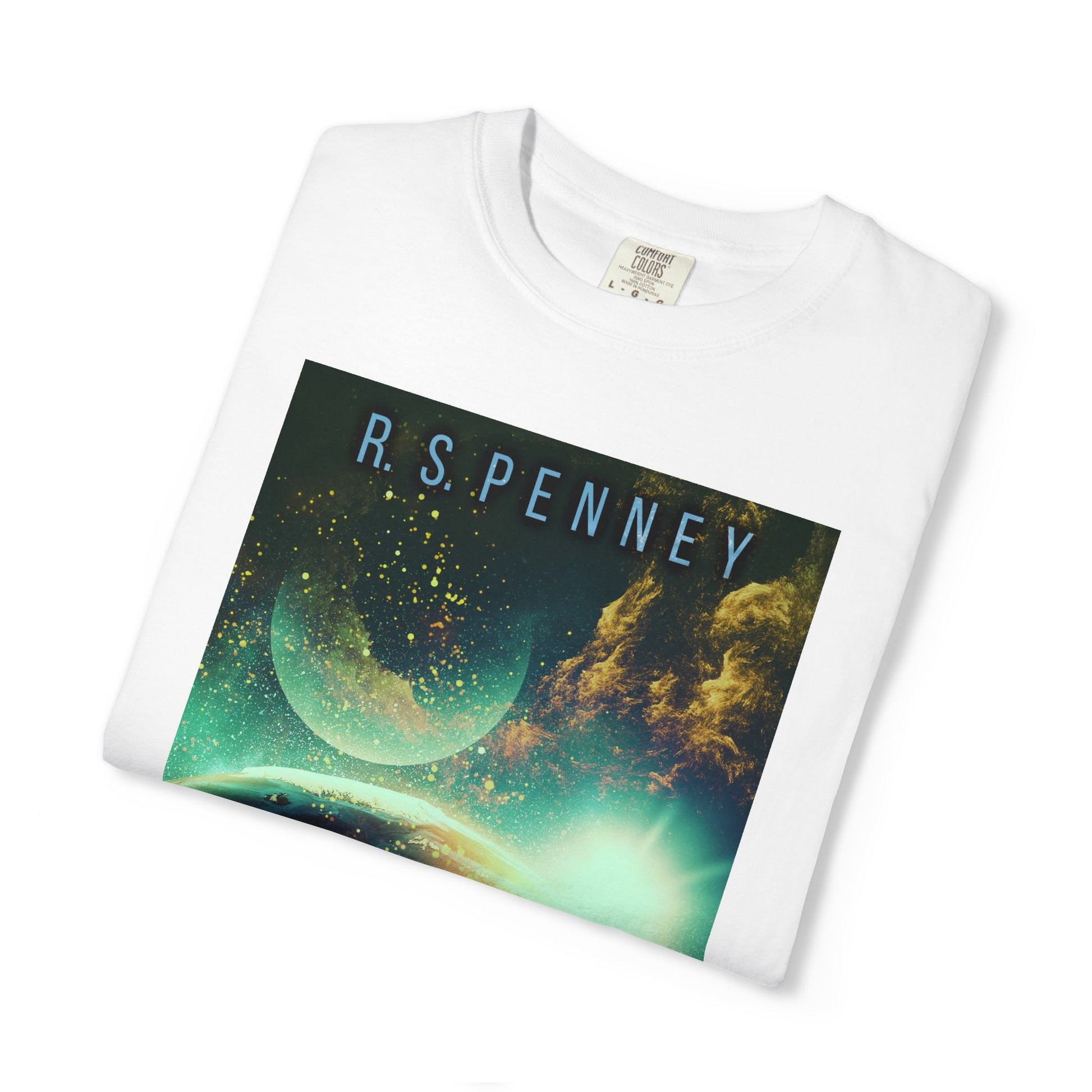 This soft-washed, garment-dyed T-shirt will bring extra coziness to your wardrobe while the relaxed fit makes it an excellent daily choice. The double-needle stitching throughout the tee makes it highly durable, while the lack of side seams helps the shirt retain its shape. The book cover art on this T-shirt is from R.S. Penney's book, Into The Fire.