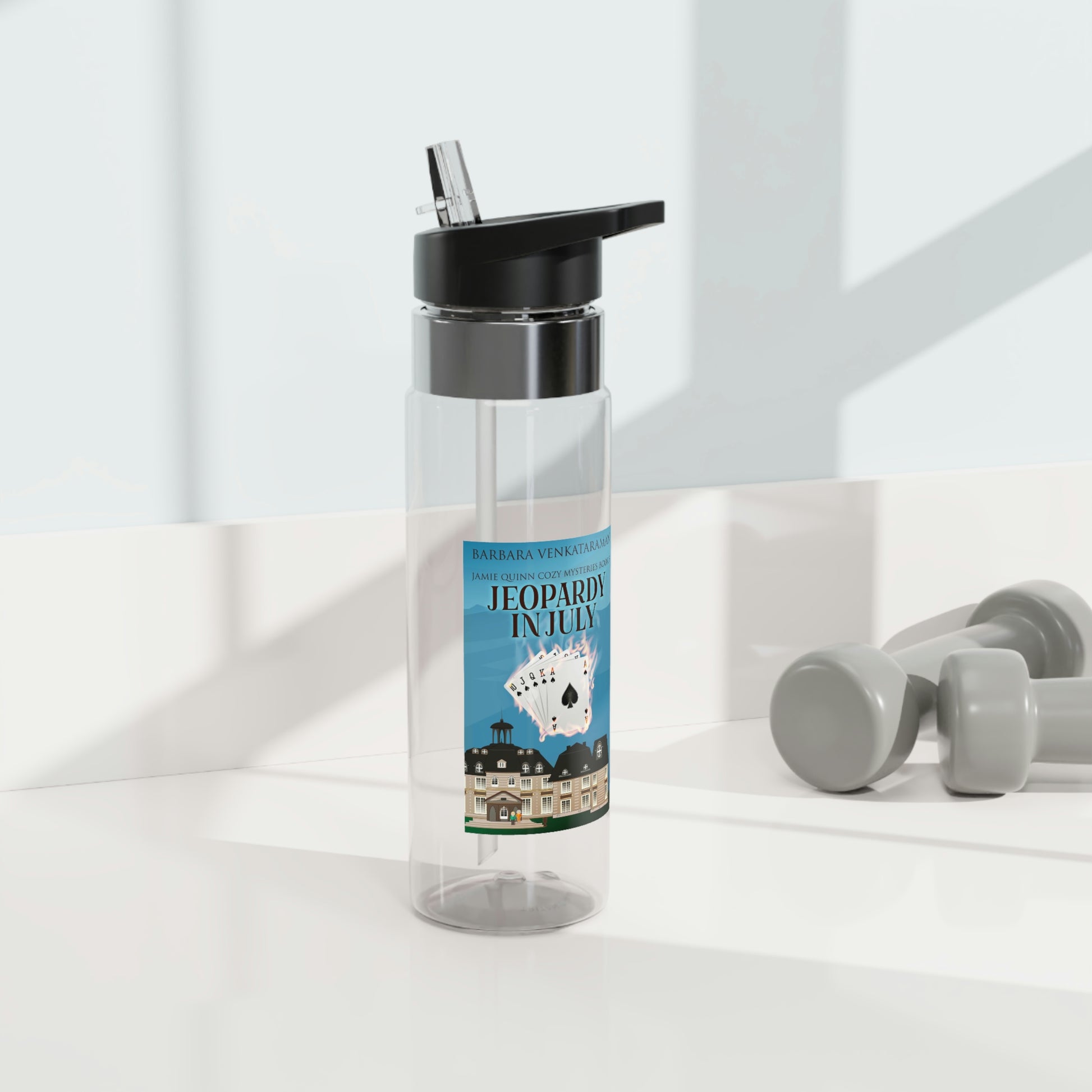 The personalized Tritan™ sport water bottle is here to keep you hydrated in style. Embark on adventures or conquer city life with this customizable, BPA-free water bottle that is made with robust Tritan™ material. Attach it effortlessly on any backpack thanks to its smart carabiner hook and enjoy an accident-free experience with the screw-on, spill-resistant lid and straw. The cover art in this water bottle is from Barbara Venkataraman's book, Jeopardy In July.