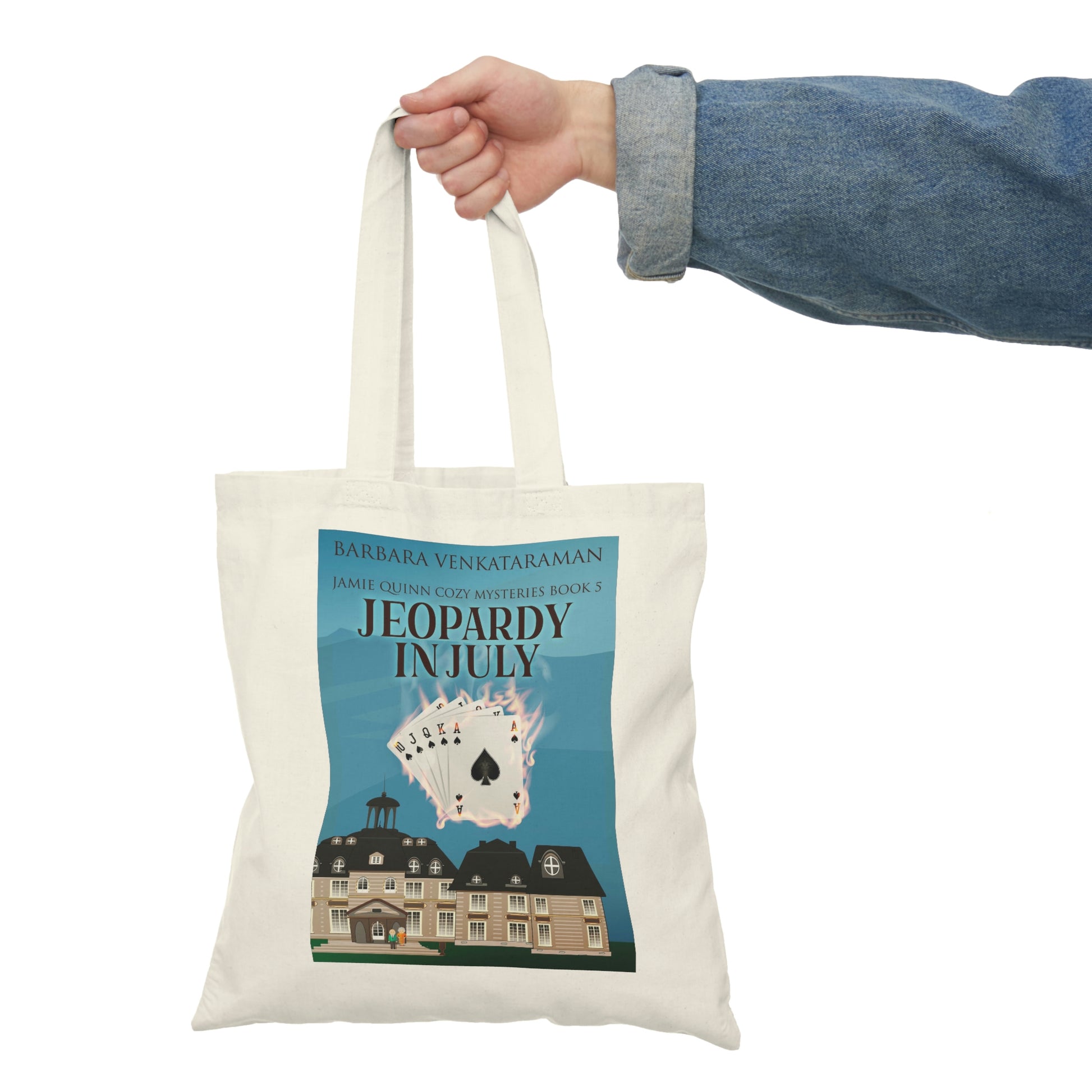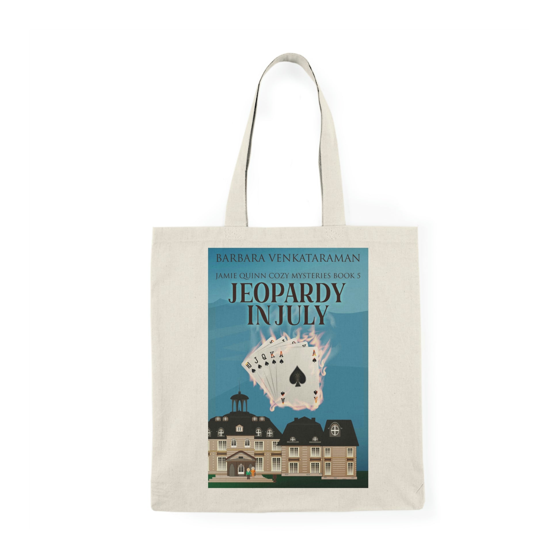 This 100% cotton tote bag is the champion of durability, sustainability, and style. The cover art in this tote bag is from Barbara Venkataraman's book, Jeopardy In July.