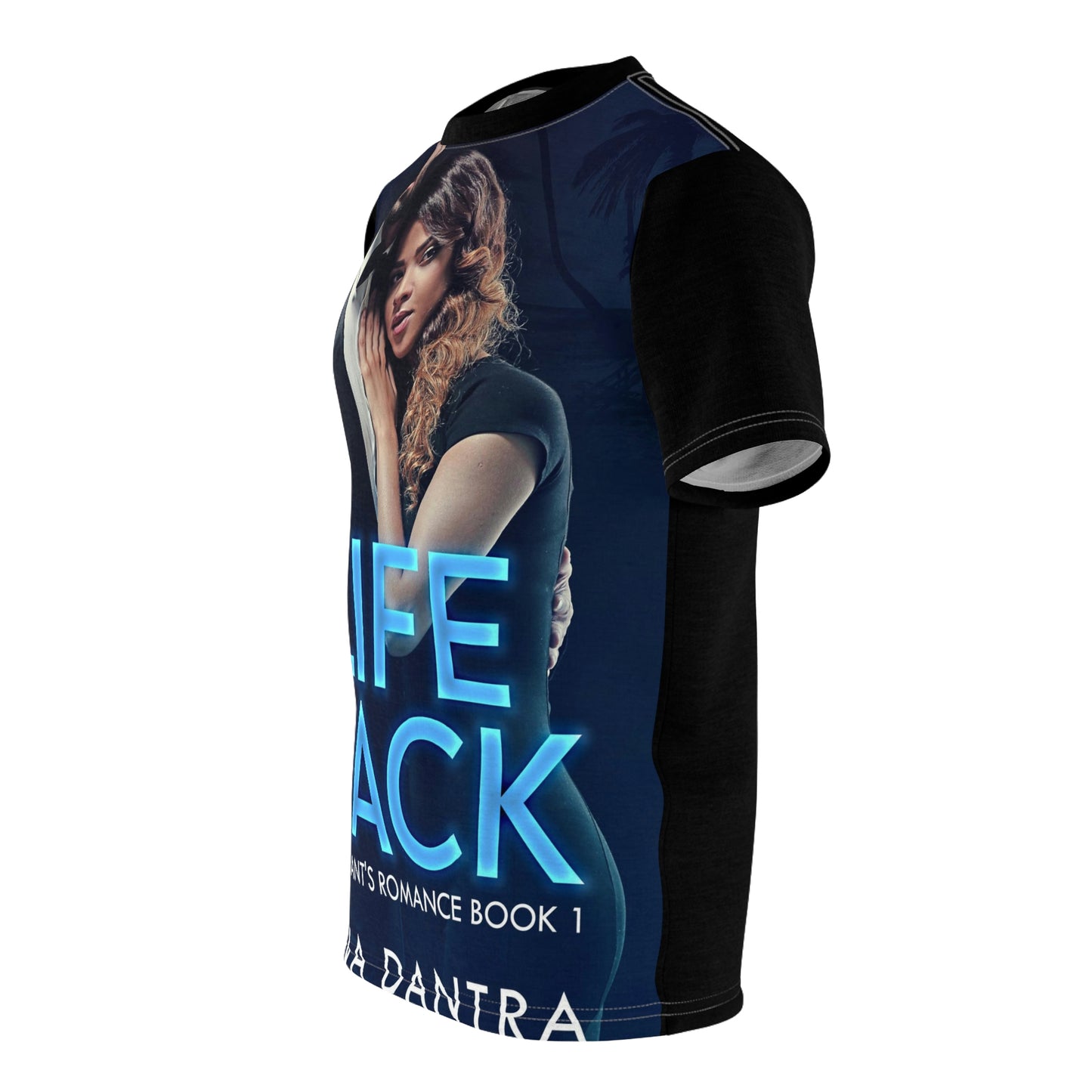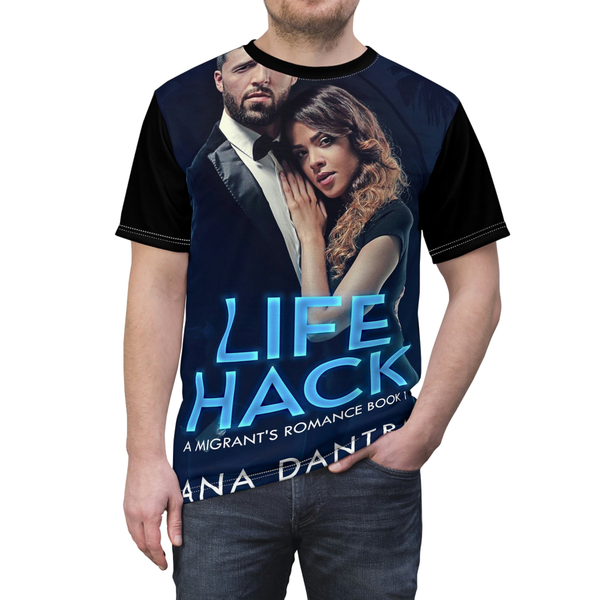 This tee is a versatile, stylish companion for all your casual appearances. With its uniquely textured, thick, microfiber-knit fabric, this T-shirt bears a premium, soft feel that remains lightweight and highly breathable – the perfect combo for a hot day or layering. The cover art in this all-over print T-shirt is from Ana Dantra's book, Life Hack.