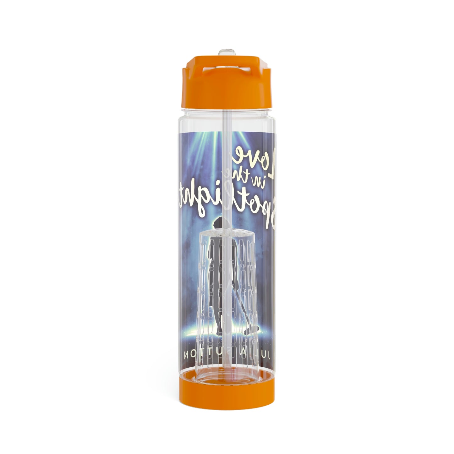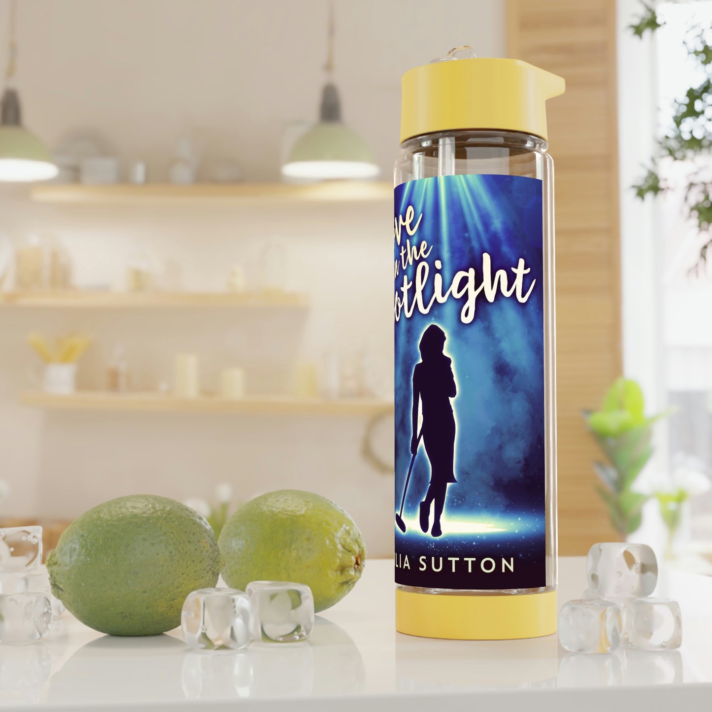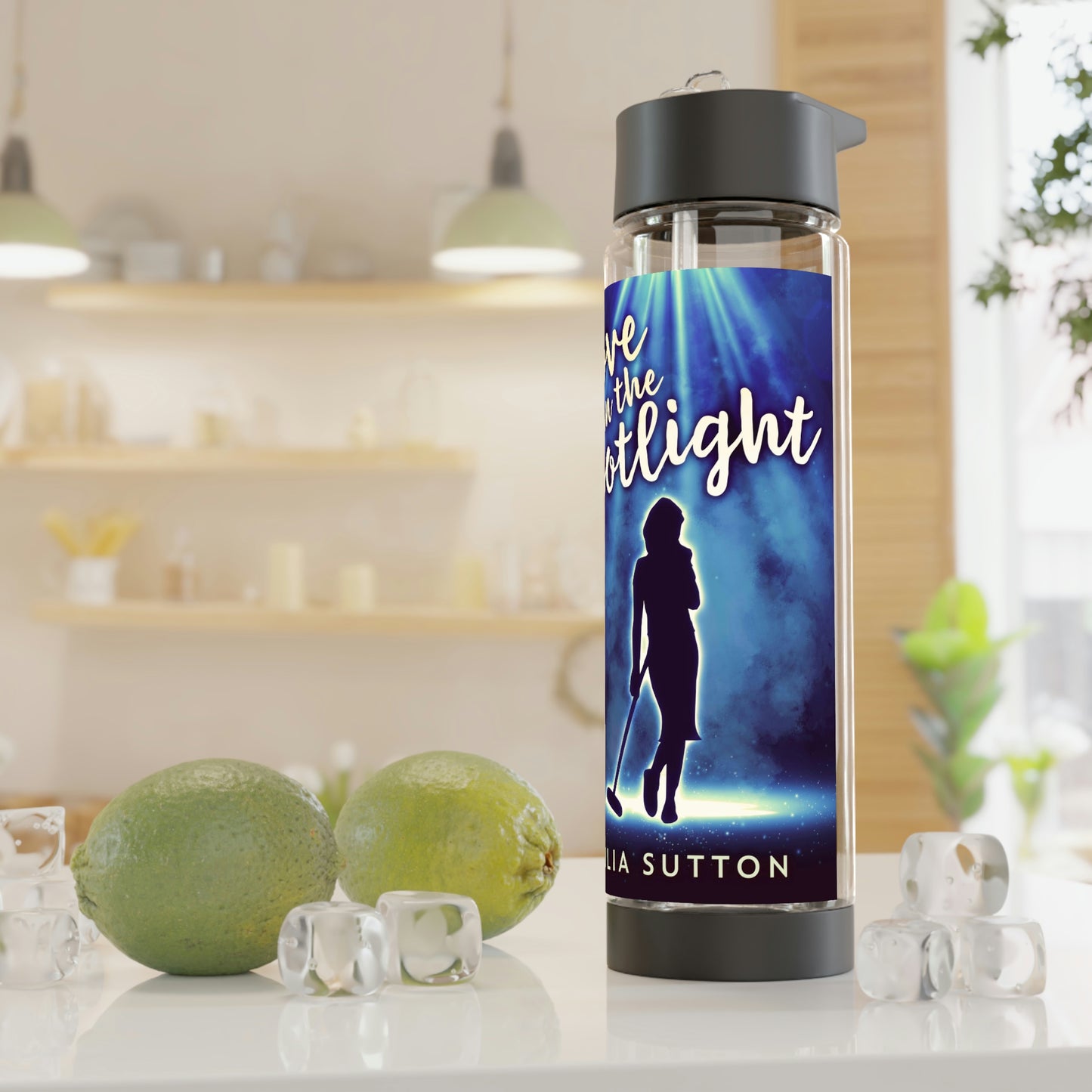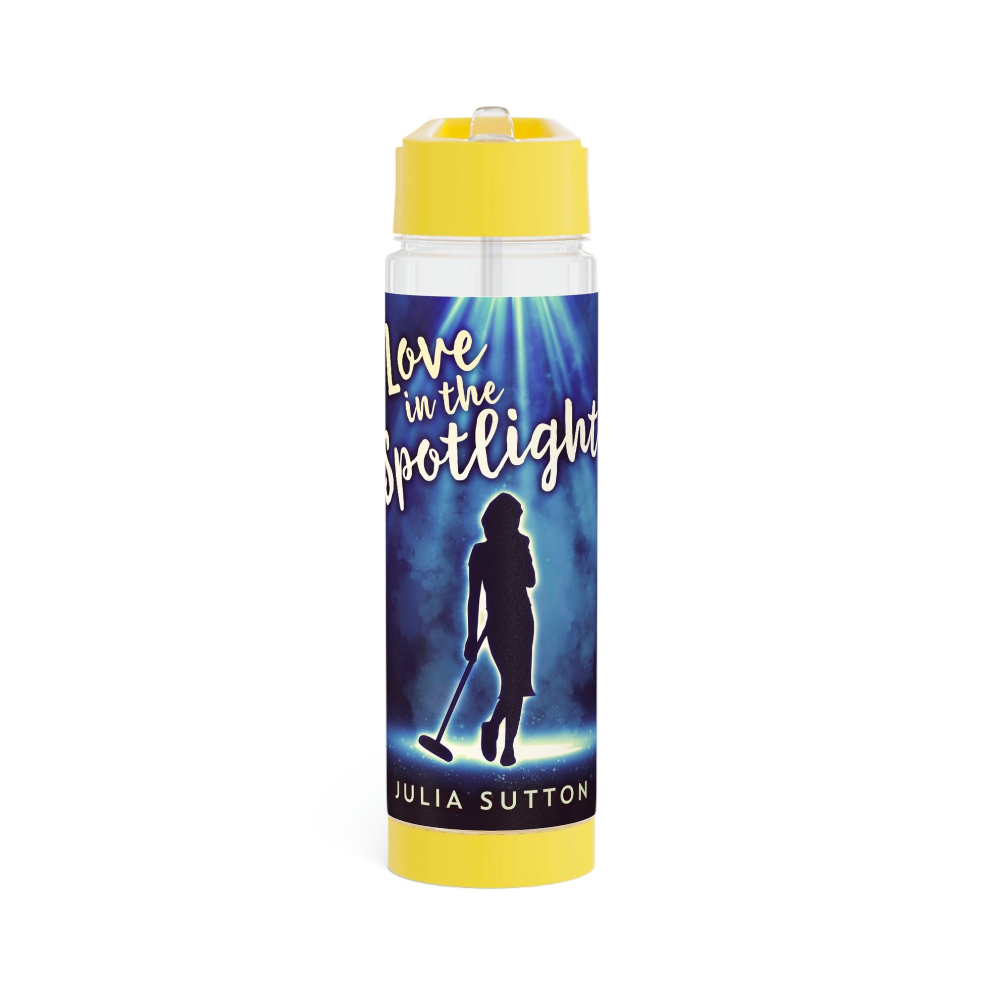 Add flavor and personality to your water with this infuser bottle. Twist the base off to access the infuser and add fruits, tea leaves, or anything you desire to enhance the flavor of your water. On the top, you'll find a twist-on lid with a flip-top drinking sprout for a seamless drinking experience. This infuser is excellent for using at home, during outdoor excursions, or at the gym as a sports bottle. The cover art in this infuser water bottle is from Julia Sutton's book, Love In The Spotlight.