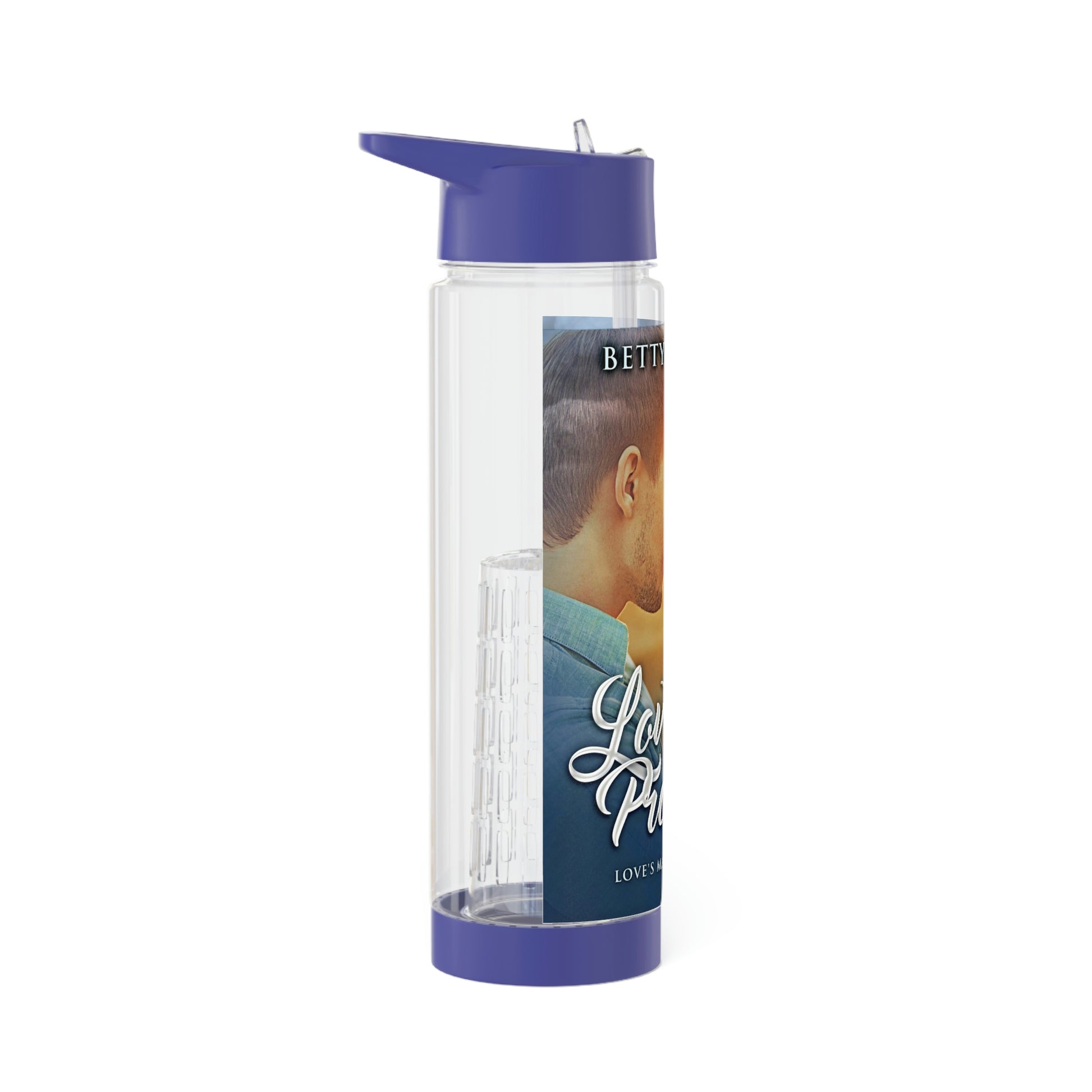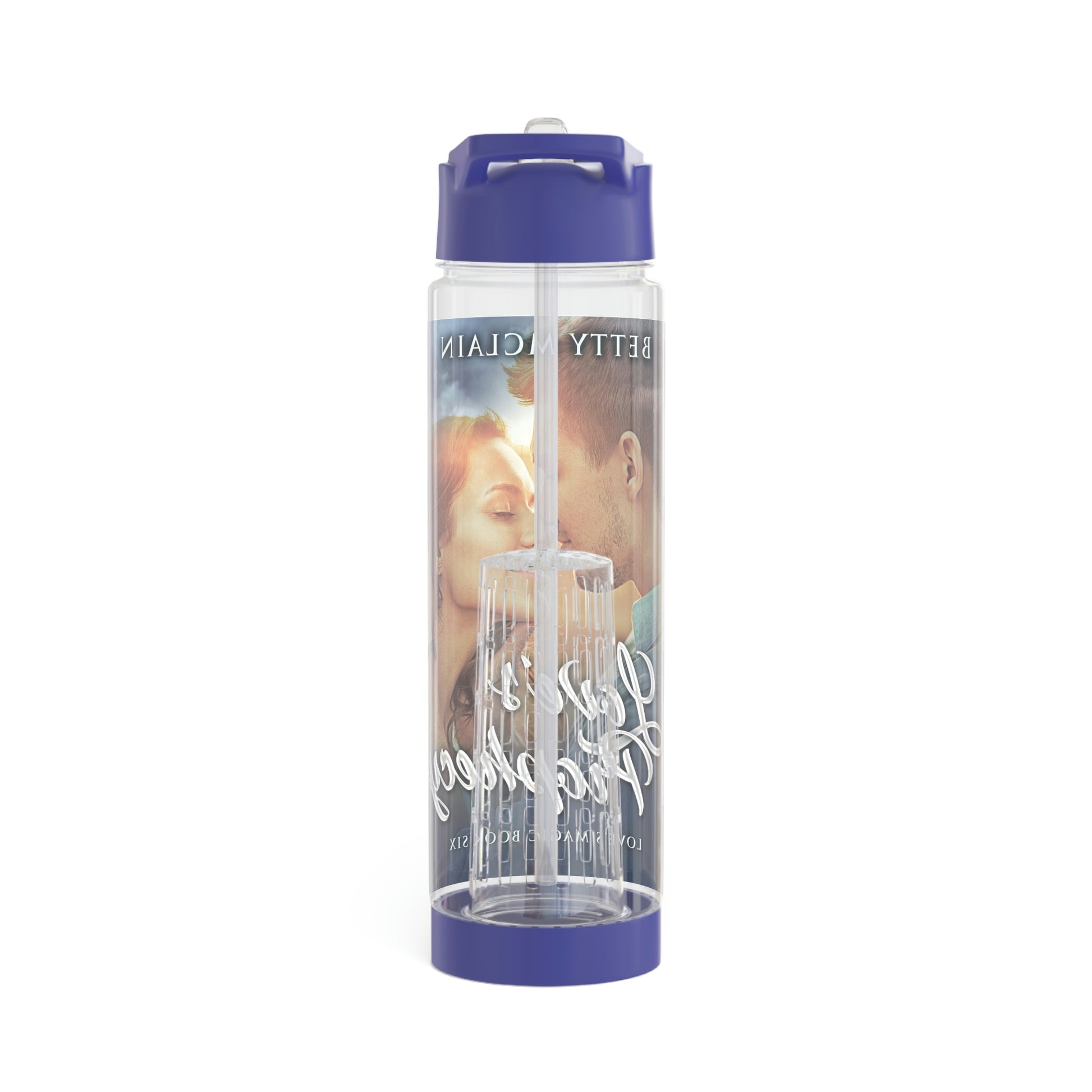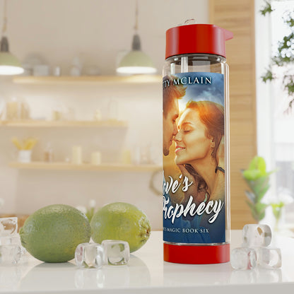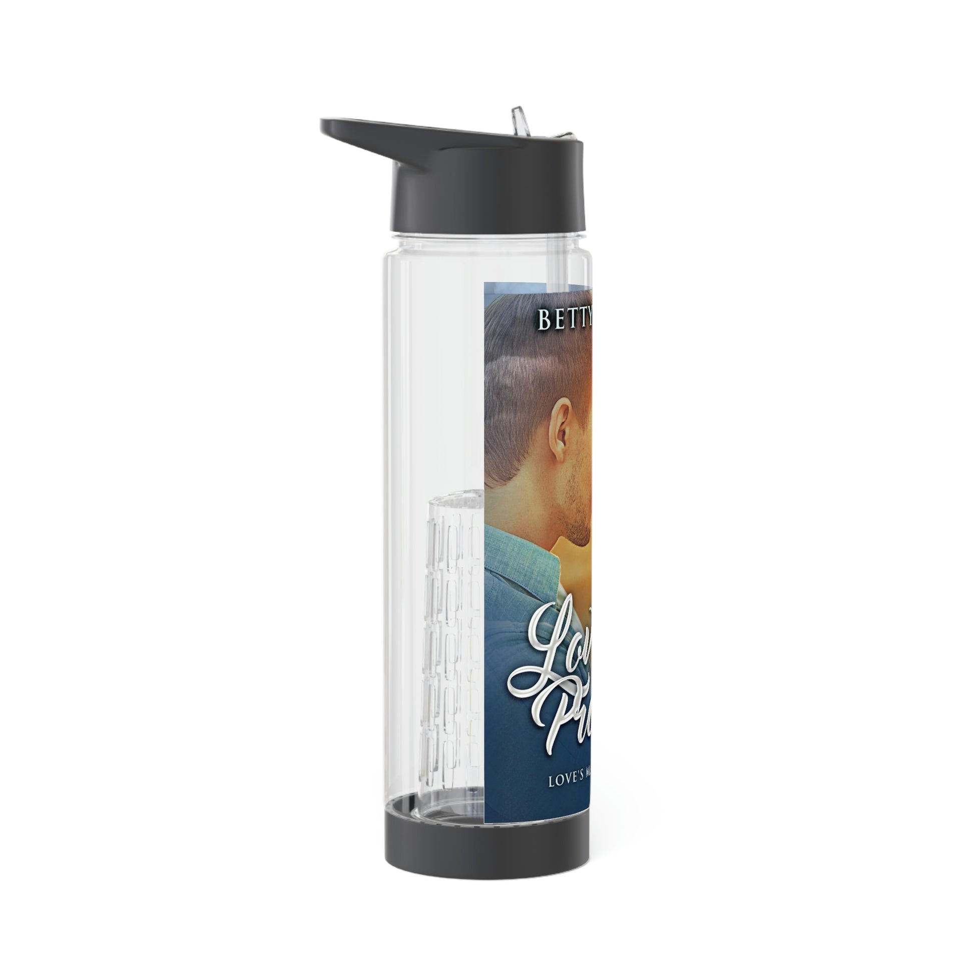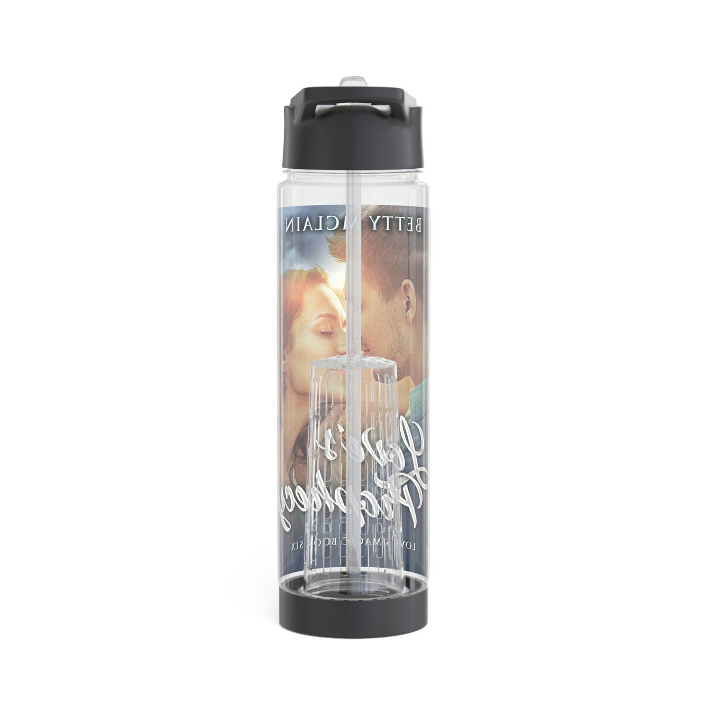 Add flavor and personality to your water with this infuser bottle. Twist the base off to access the infuser and add fruits, tea leaves, or anything you desire to enhance the flavor of your water. On the top, you'll find a twist-on lid with a flip-top drinking sprout for a seamless drinking experience. This infuser is excellent for using at home, during outdoor excursions, or at the gym as a sports bottle. The cover art in this infuser water bottle is from Betty McLain's book, Love's Prophecy.