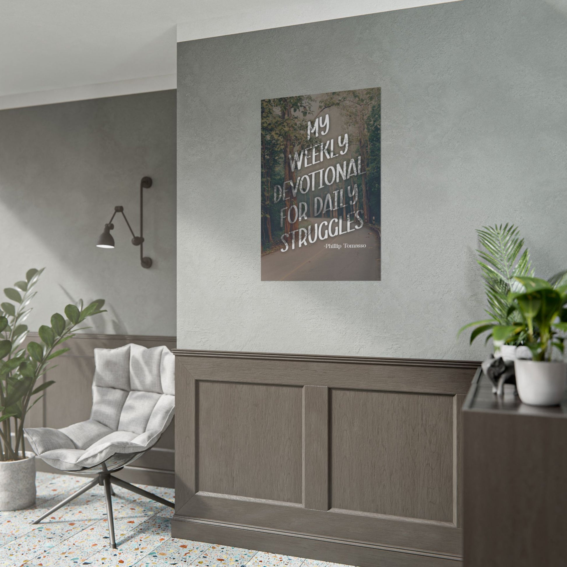 Enhance your home décor with this poster featuring the cover art from Phillip Tomasso’s book, My Weekly Devotional for Daily Struggles. Available in three sizes and two finishes: matte or semi-glossy.