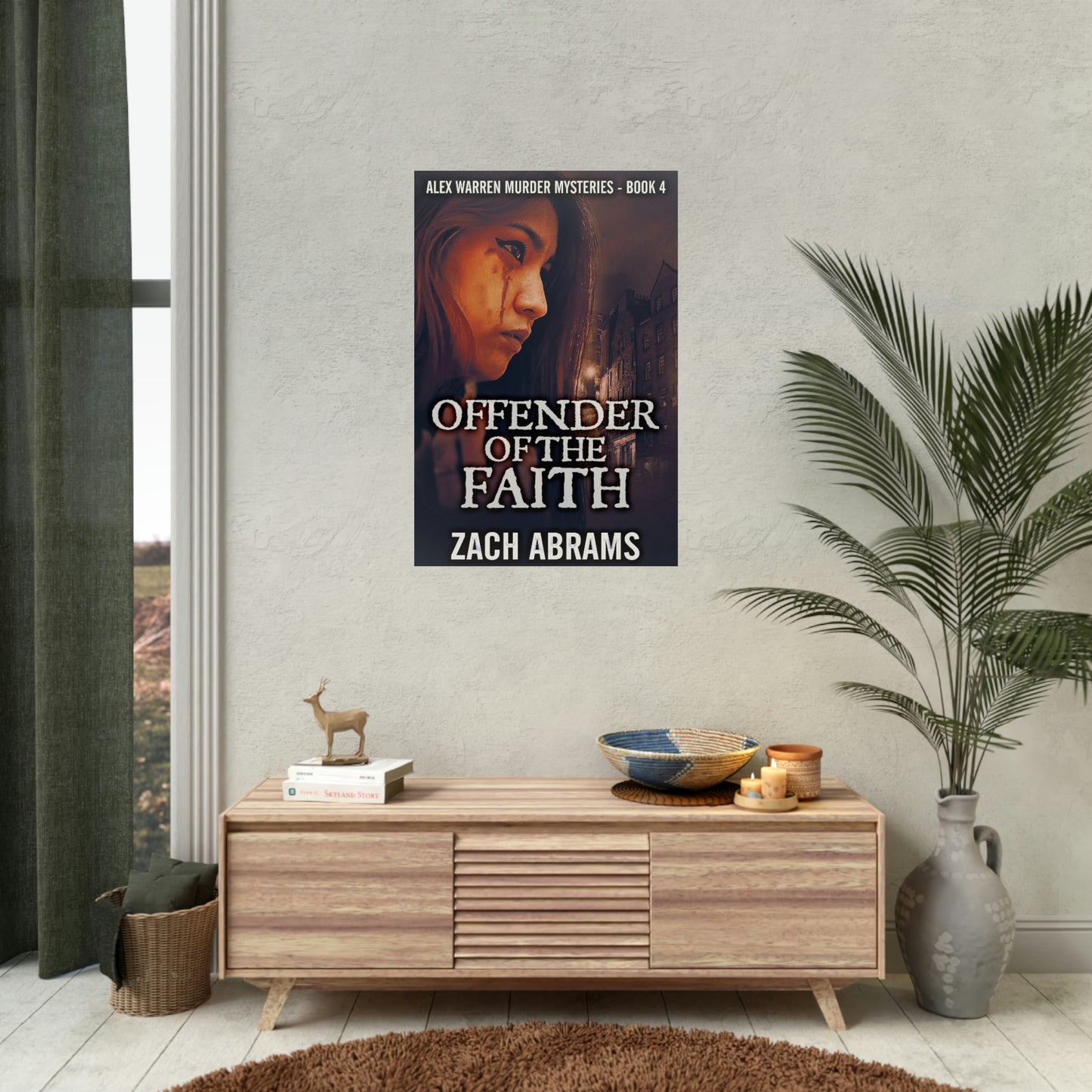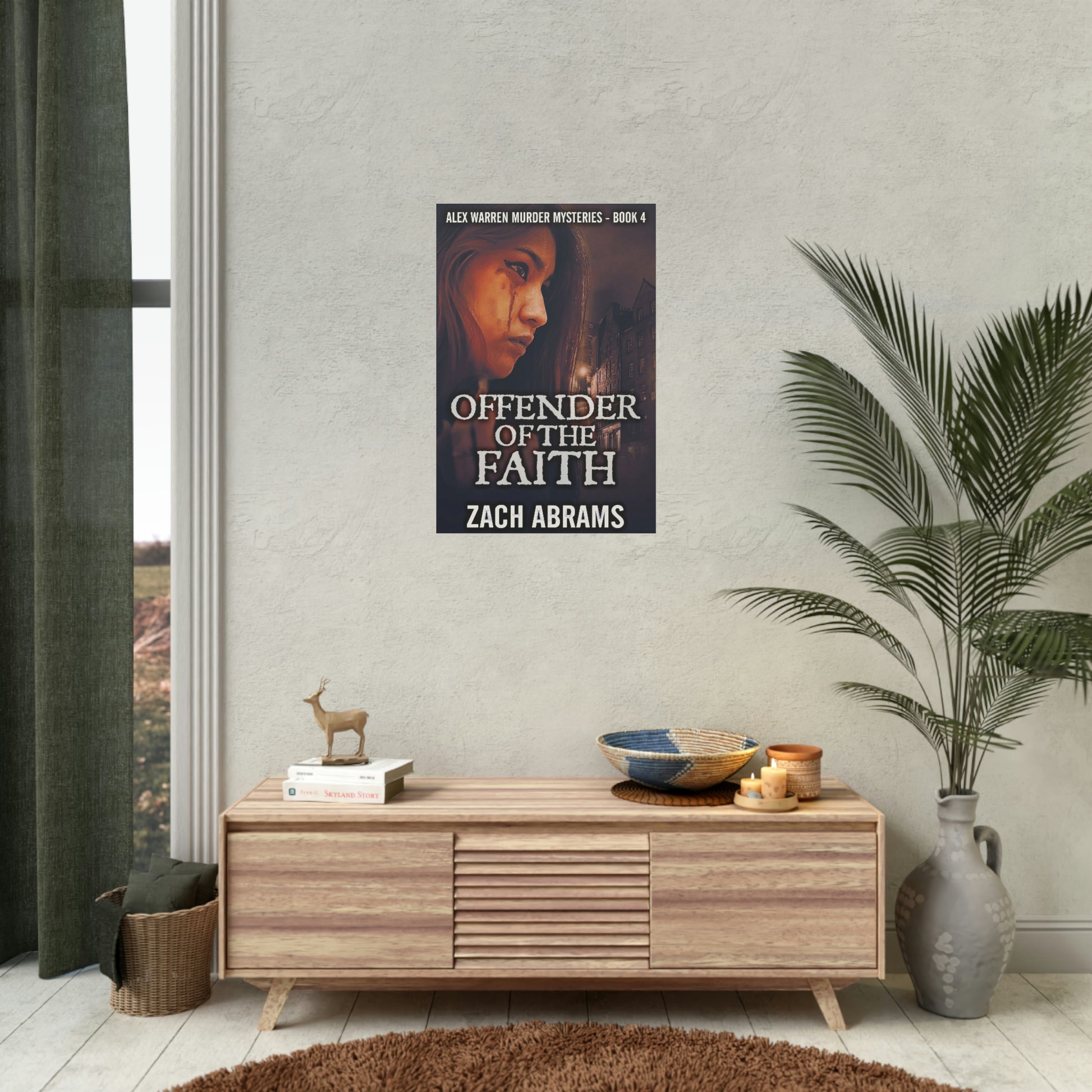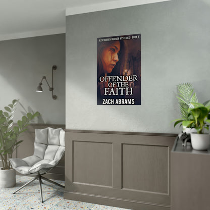 This rolled poster is based on the cover art of Zach Abrams's book, Offender Of The Faith. Choose between fine-art (310gsm) or semi-gloss paper (260gsm). The fine art paper is equivalent to traditional watercolor or etching paper, and has a soft textured surface and archival quality. The semi-glossy paper is a bright white photo paper with a satin finish, and offers full sharp color fidelity.