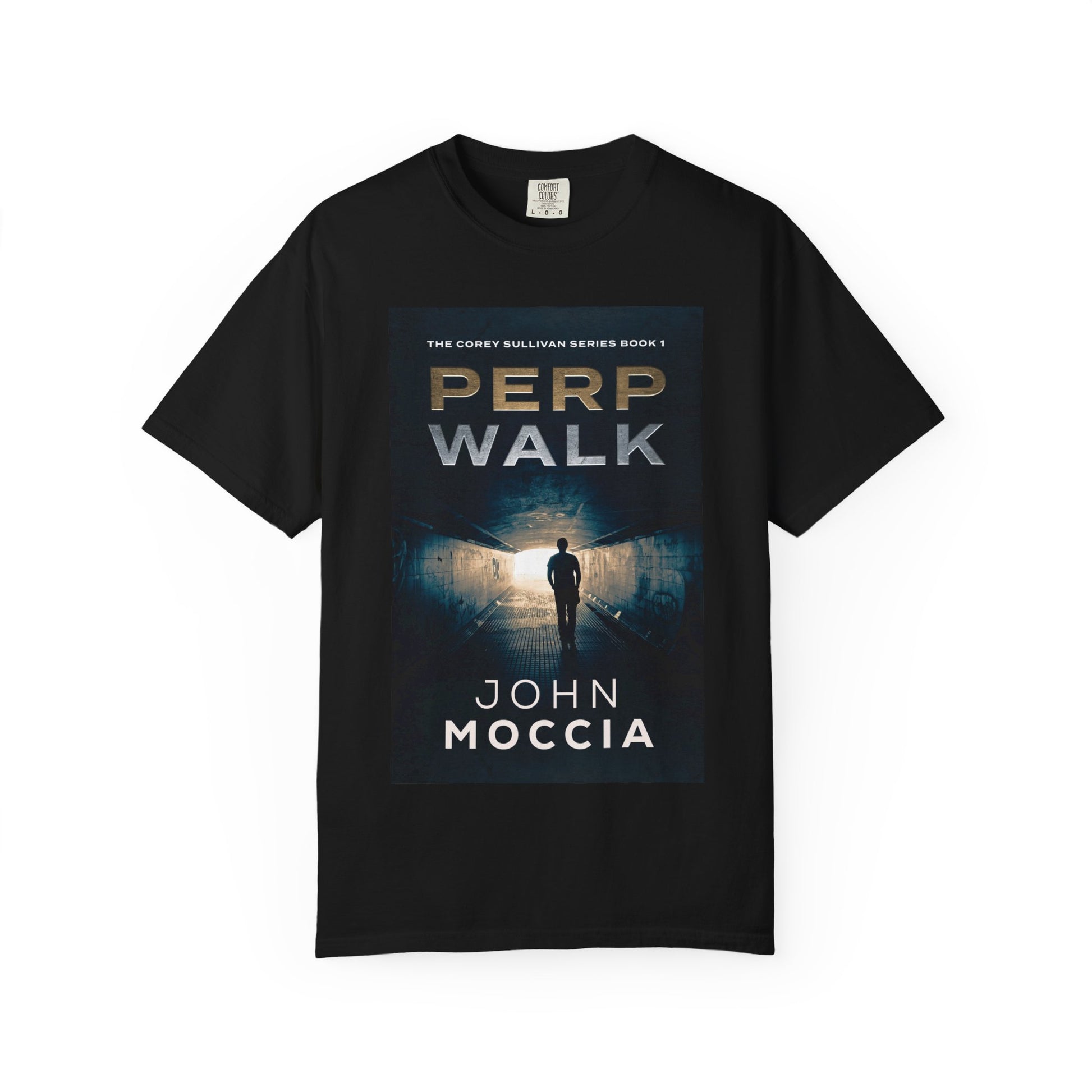 This soft-washed, garment-dyed T-shirt will bring extra coziness to your wardrobe while the relaxed fit makes it an excellent daily choice. The double-needle stitching throughout the tee makes it highly durable, while the lack of side seams helps the shirt retain its shape. The book cover art on this T-shirt is from John Moccia's book, Perp Walk.