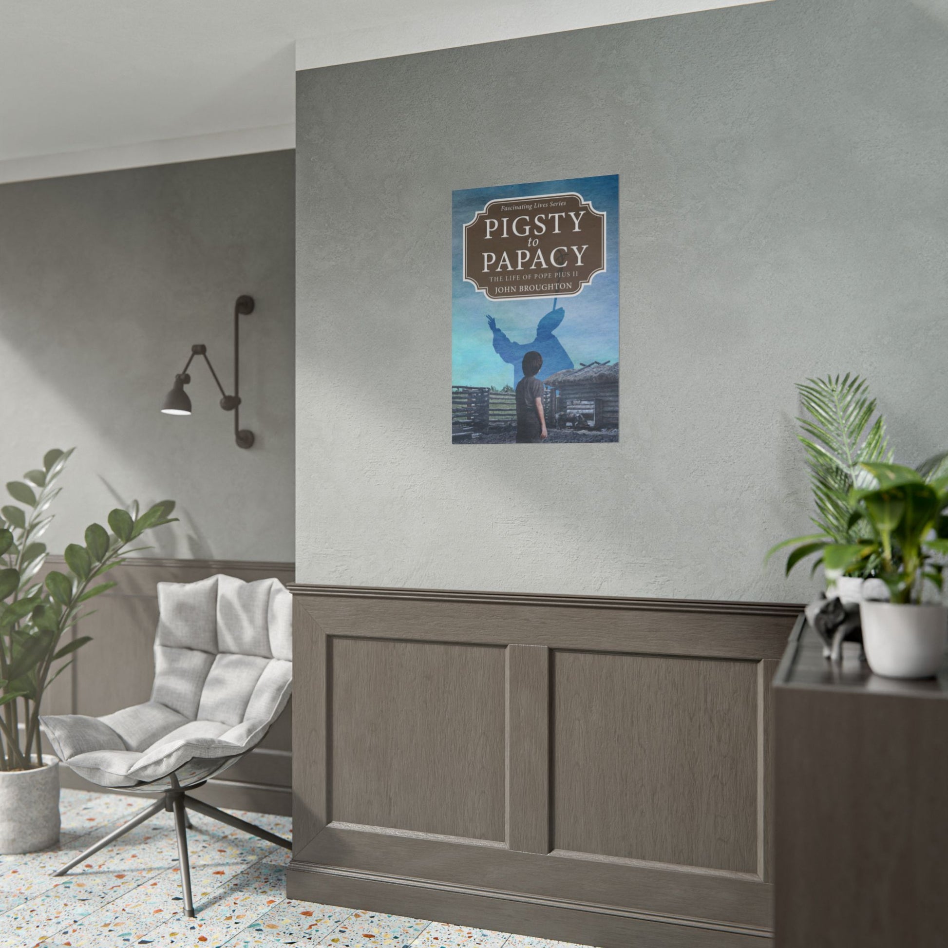 Enhance your home décor with this poster featuring the cover art from John Broughton’s book, Pigsty to Papacy. Available in three sizes and two finishes: matte or semi-glossy.