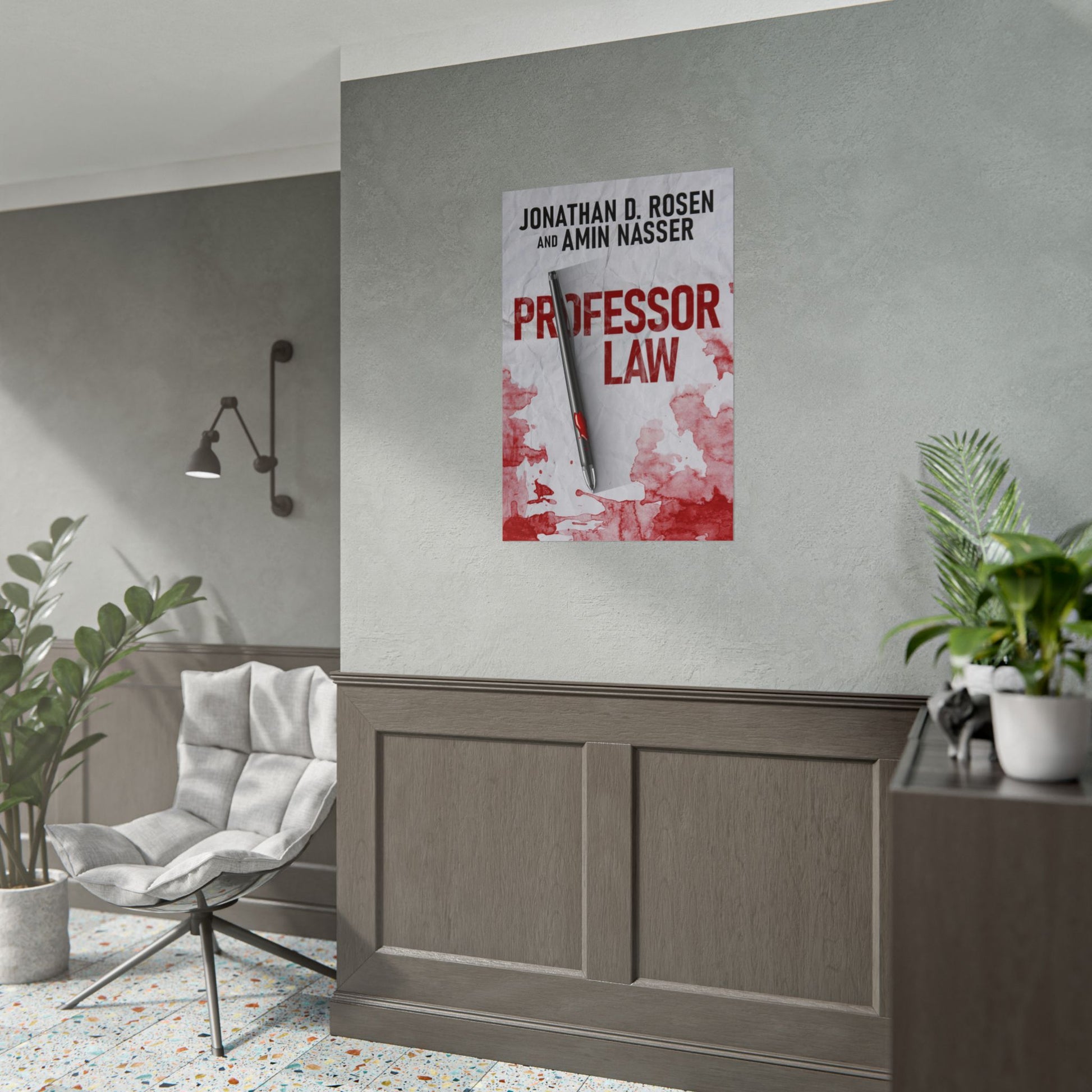 Enhance your home décor with this poster featuring the cover art from Jonathan D. Rosen, Amin Nasser’s book, Professor Law. Available in three sizes and two finishes: matte or semi-glossy.