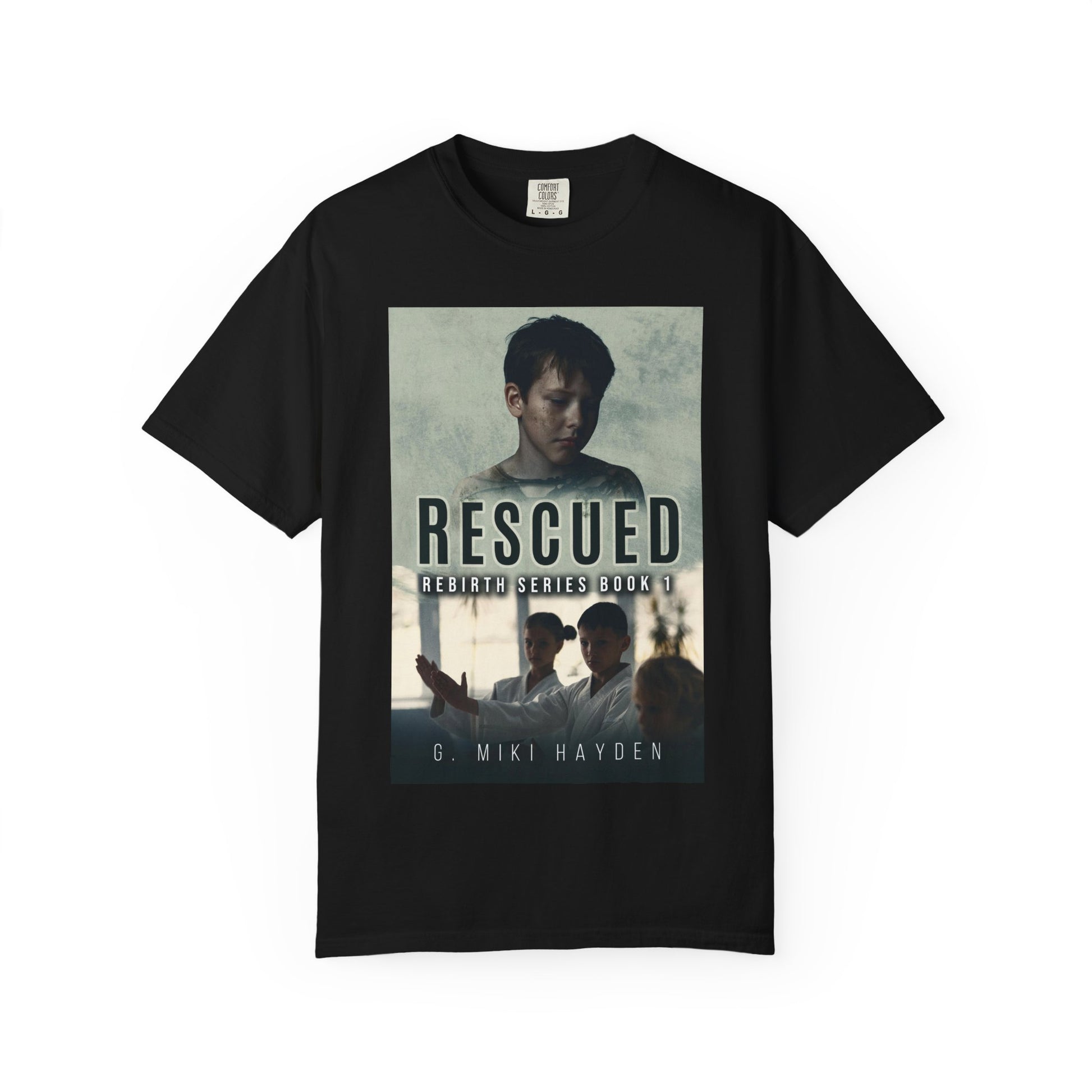 This soft-washed, garment-dyed T-shirt will bring extra coziness to your wardrobe while the relaxed fit makes it an excellent daily choice. The double-needle stitching throughout the tee makes it highly durable, while the lack of side seams helps the shirt retain its shape. The book cover art on this T-shirt is from G. Miki Hayden's book, Rescued.