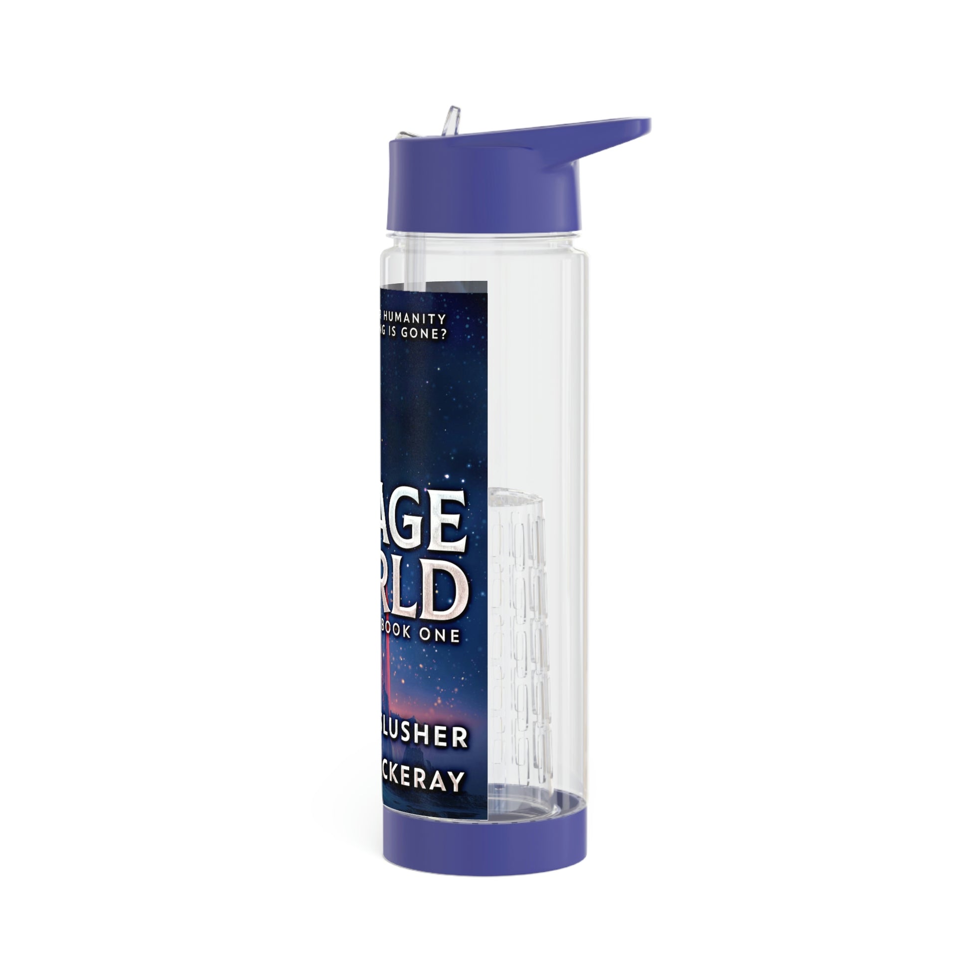 Add flavor and personality to your water with this infuser bottle. Twist the base off to access the infuser and add fruits, tea leaves, or anything you desire to enhance the flavor of your water. On the top, you'll find a twist-on lid with a flip-top drinking sprout for a seamless drinking experience. This infuser is excellent for using at home, during outdoor excursions, or at the gym as a sports bottle. The cover art in this infuser water bottle is from Jennifer Slusher's book, Savage World.