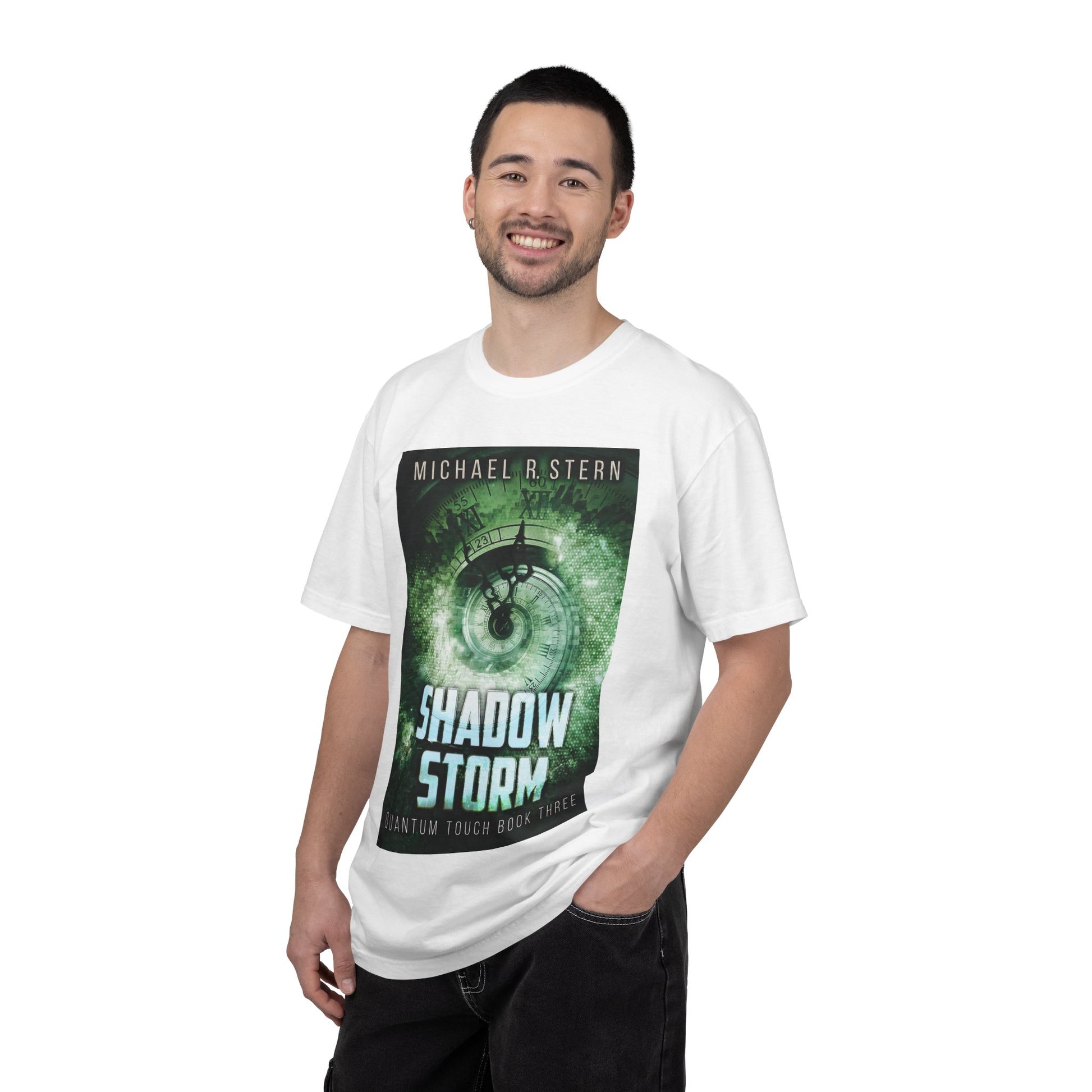 This soft-washed, garment-dyed T-shirt will bring extra coziness to your wardrobe while the relaxed fit makes it an excellent daily choice. The double-needle stitching throughout the tee makes it highly durable, while the lack of side seams helps the shirt retain its shape. The book cover art on this T-shirt is from Michael R. Stern's book, Shadow Storm.