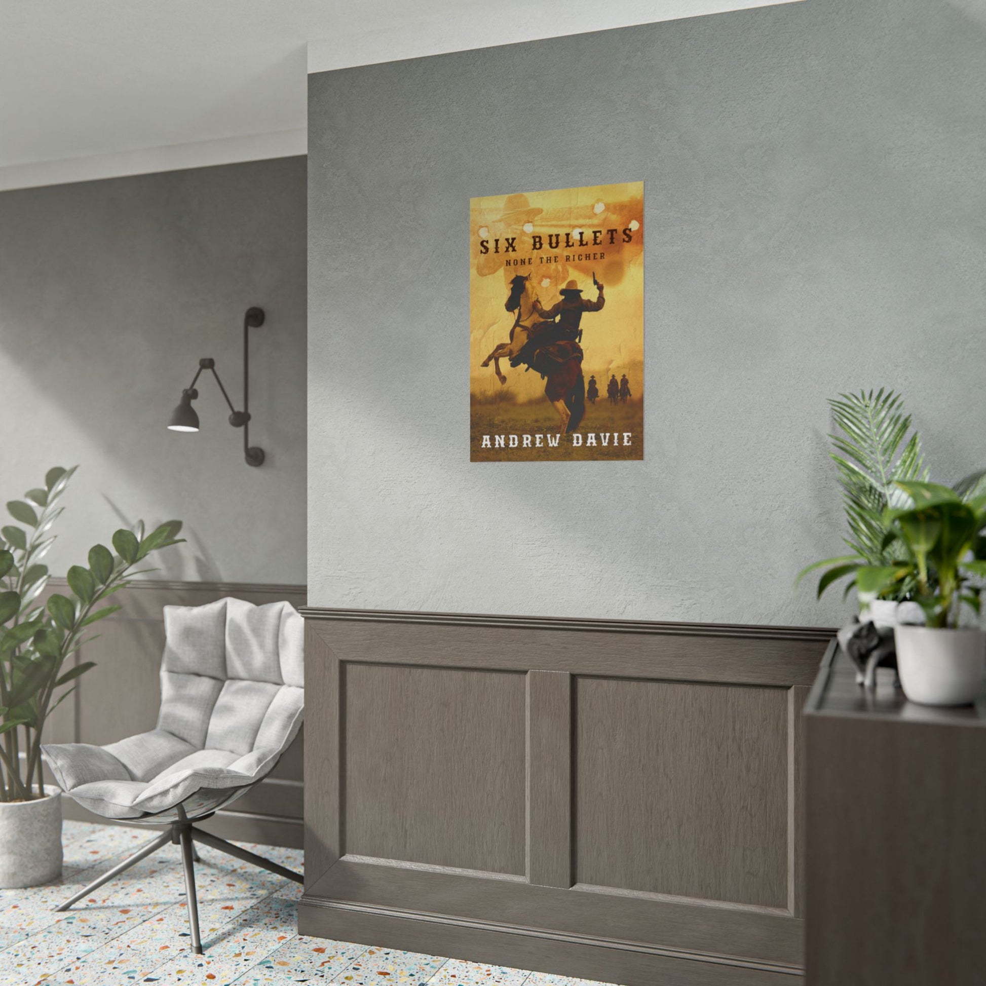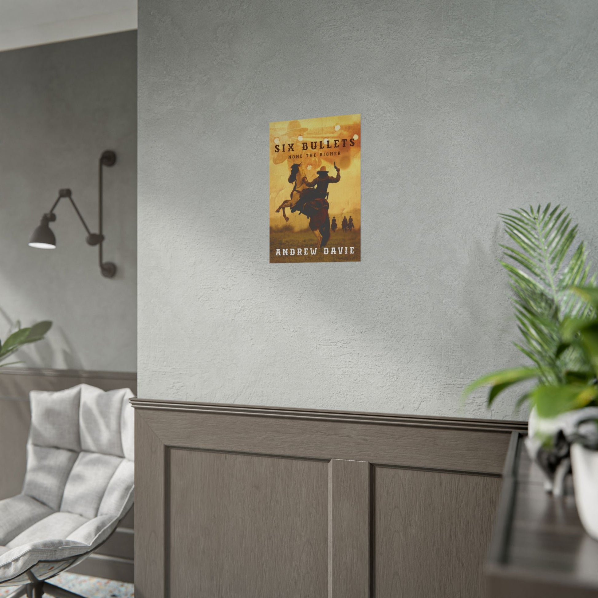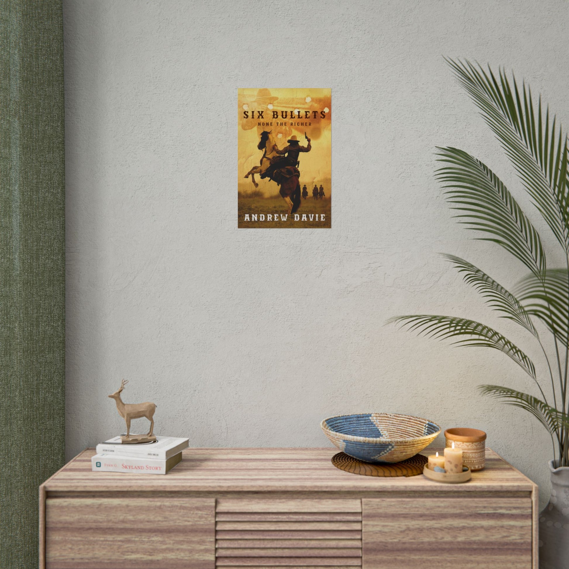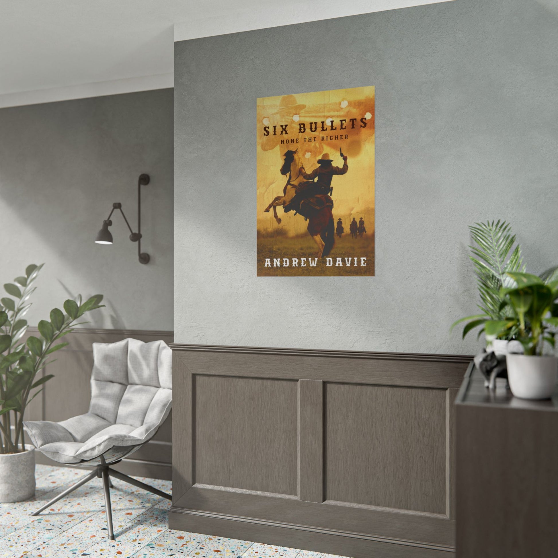 Enhance your home décor with this poster featuring the cover art from Andrew Davie’s book, Six Bullets. Available in three sizes and two finishes: matte or semi-glossy.