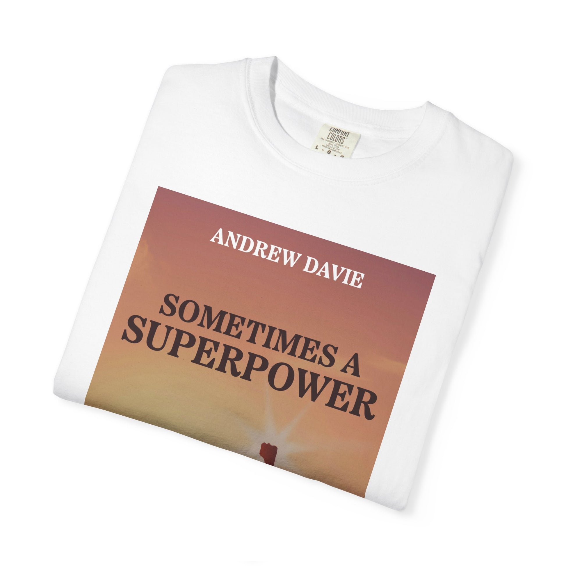 This soft-washed, garment-dyed T-shirt will bring extra coziness to your wardrobe while the relaxed fit makes it an excellent daily choice. The double-needle stitching throughout the tee makes it highly durable, while the lack of side seams helps the shirt retain its shape. The book cover art on this T-shirt is from Andrew Davie's book, Sometimes a Superpower.