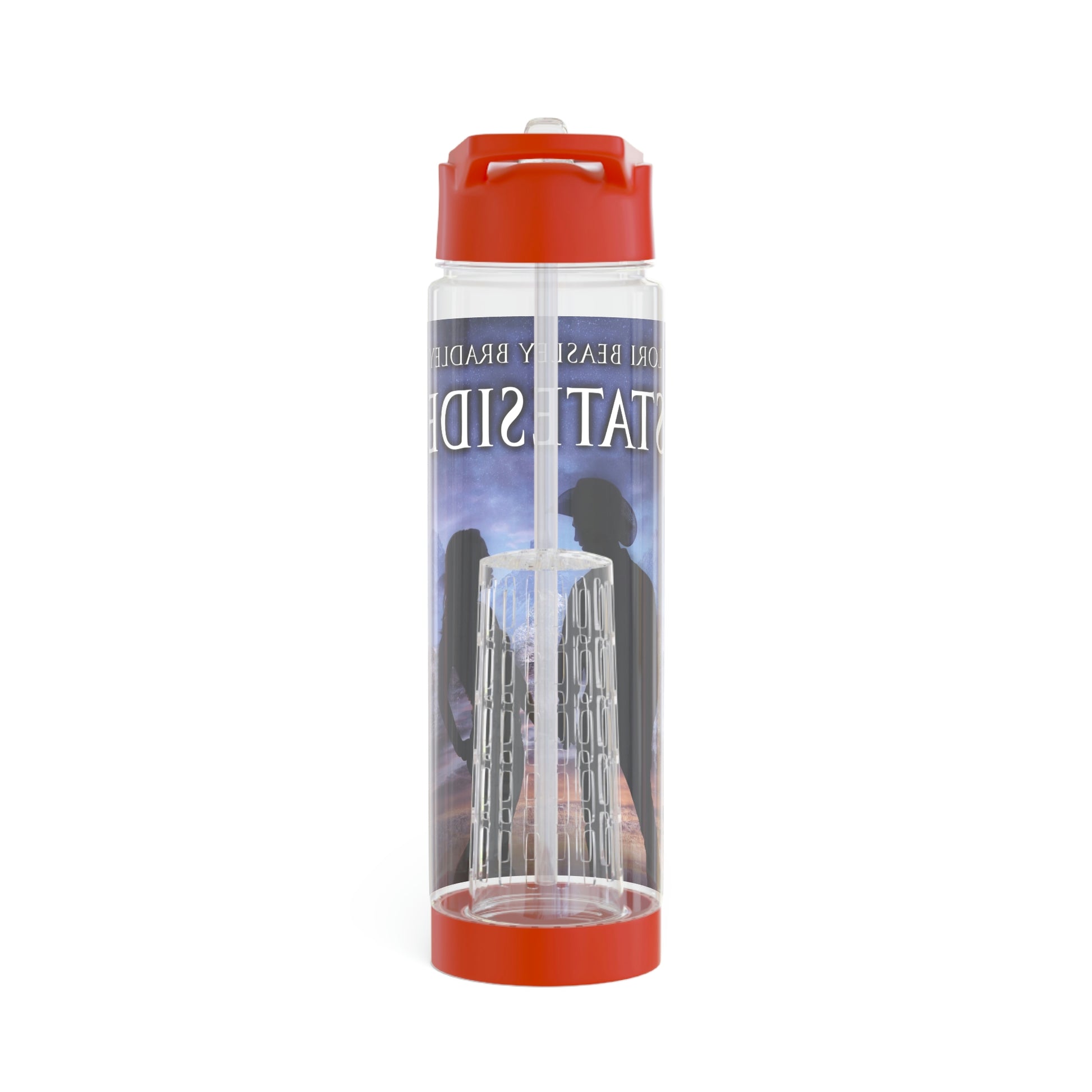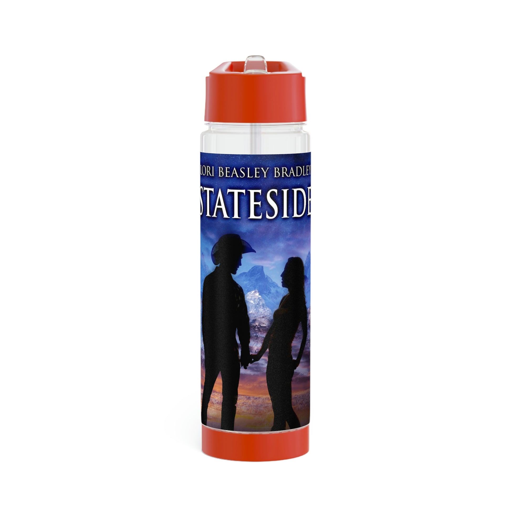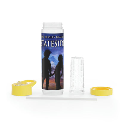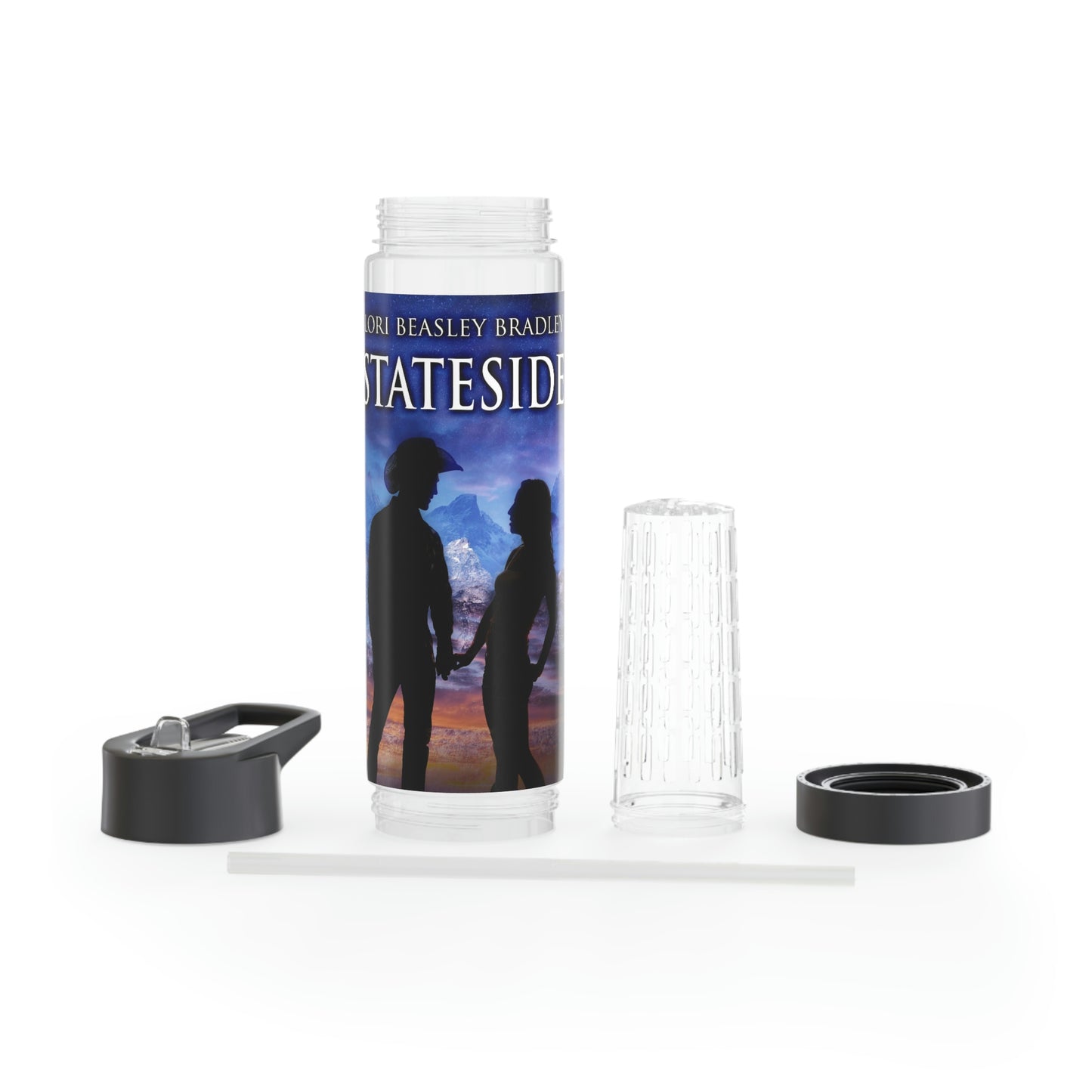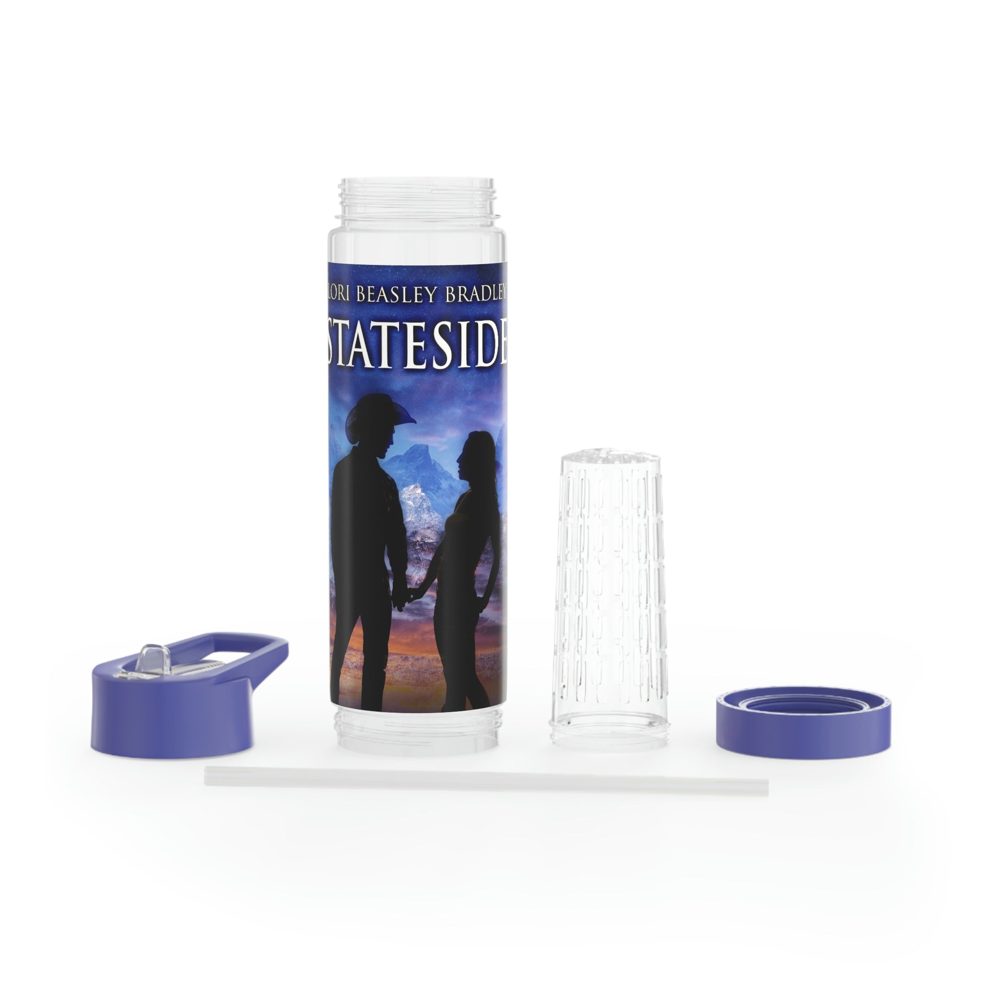 Add flavor and personality to your water with this infuser bottle. Twist the base off to access the infuser and add fruits, tea leaves, or anything you desire to enhance the flavor of your water. On the top, you'll find a twist-on lid with a flip-top drinking sprout for a seamless drinking experience. This infuser is excellent for using at home, during outdoor excursions, or at the gym as a sports bottle. The cover art in this infuser water bottle is from Lori Beasley Bradley's book, Stateside.