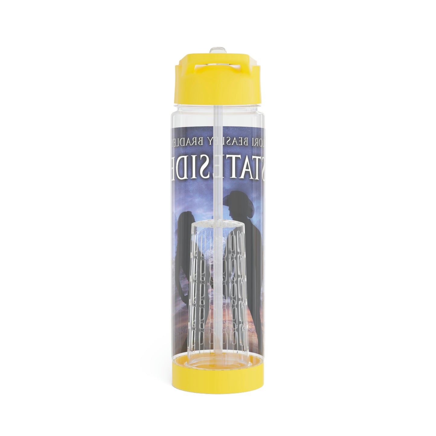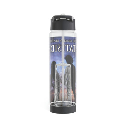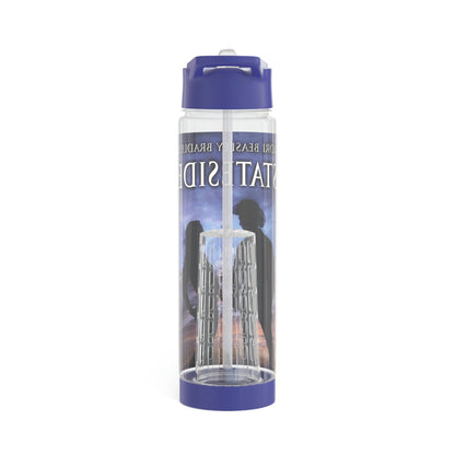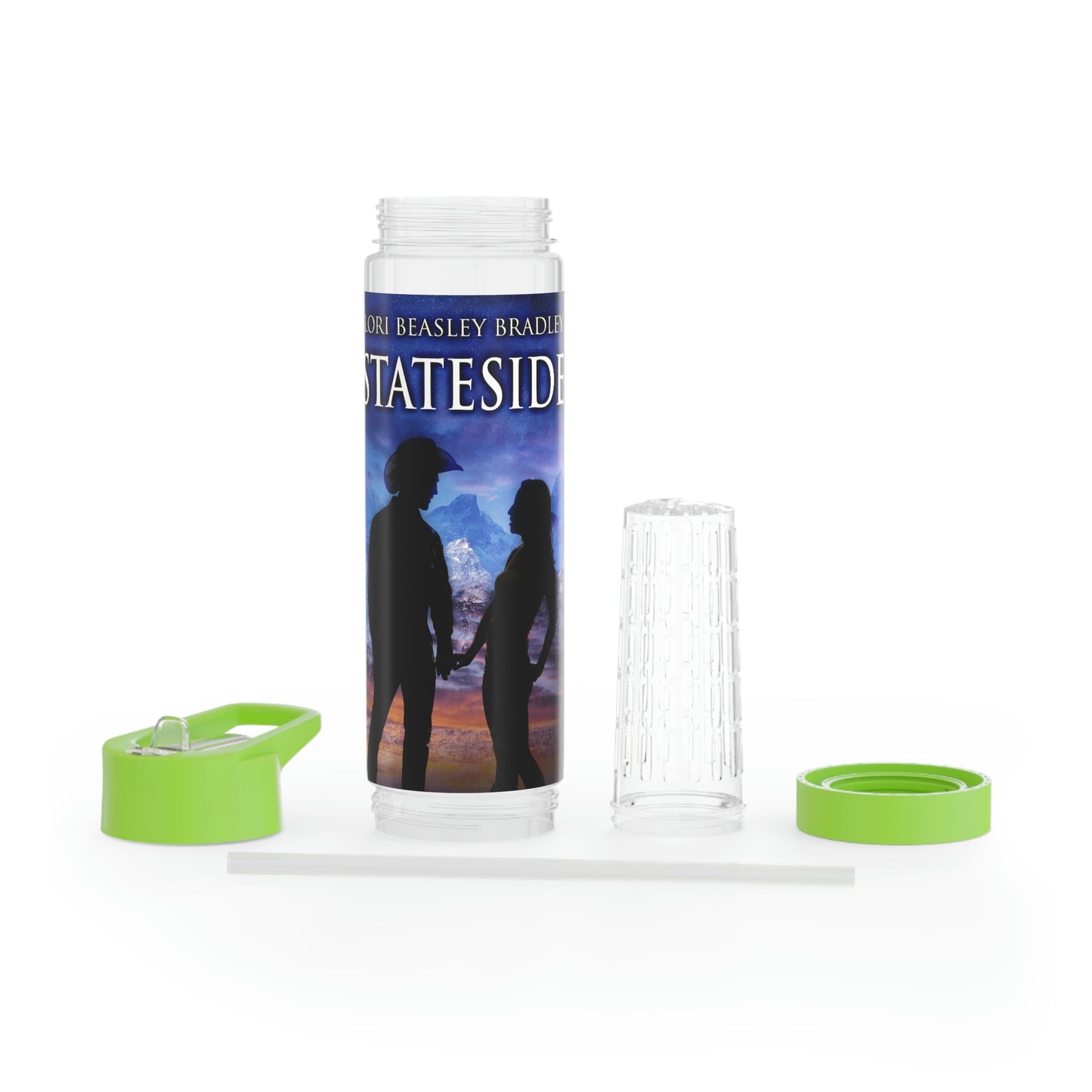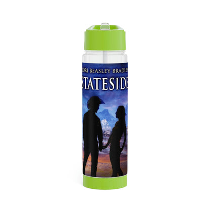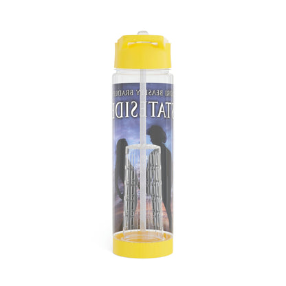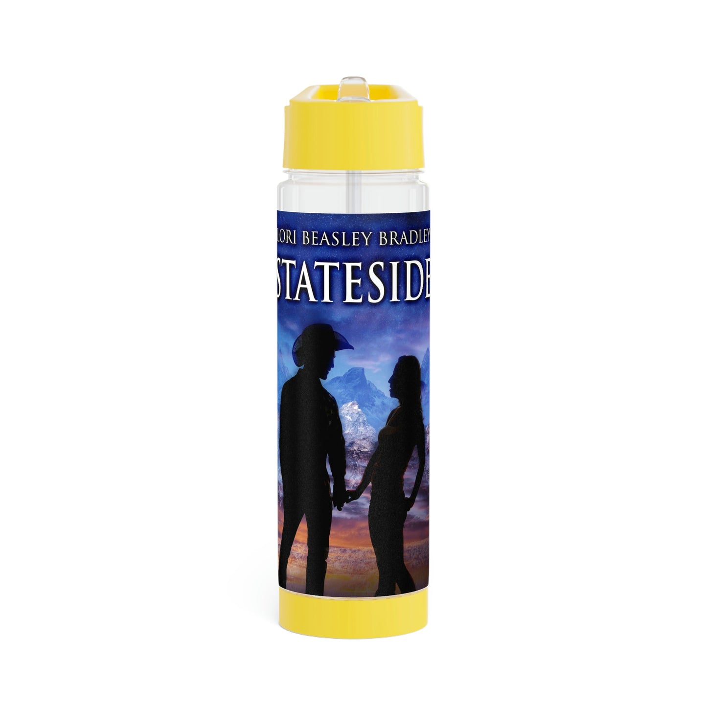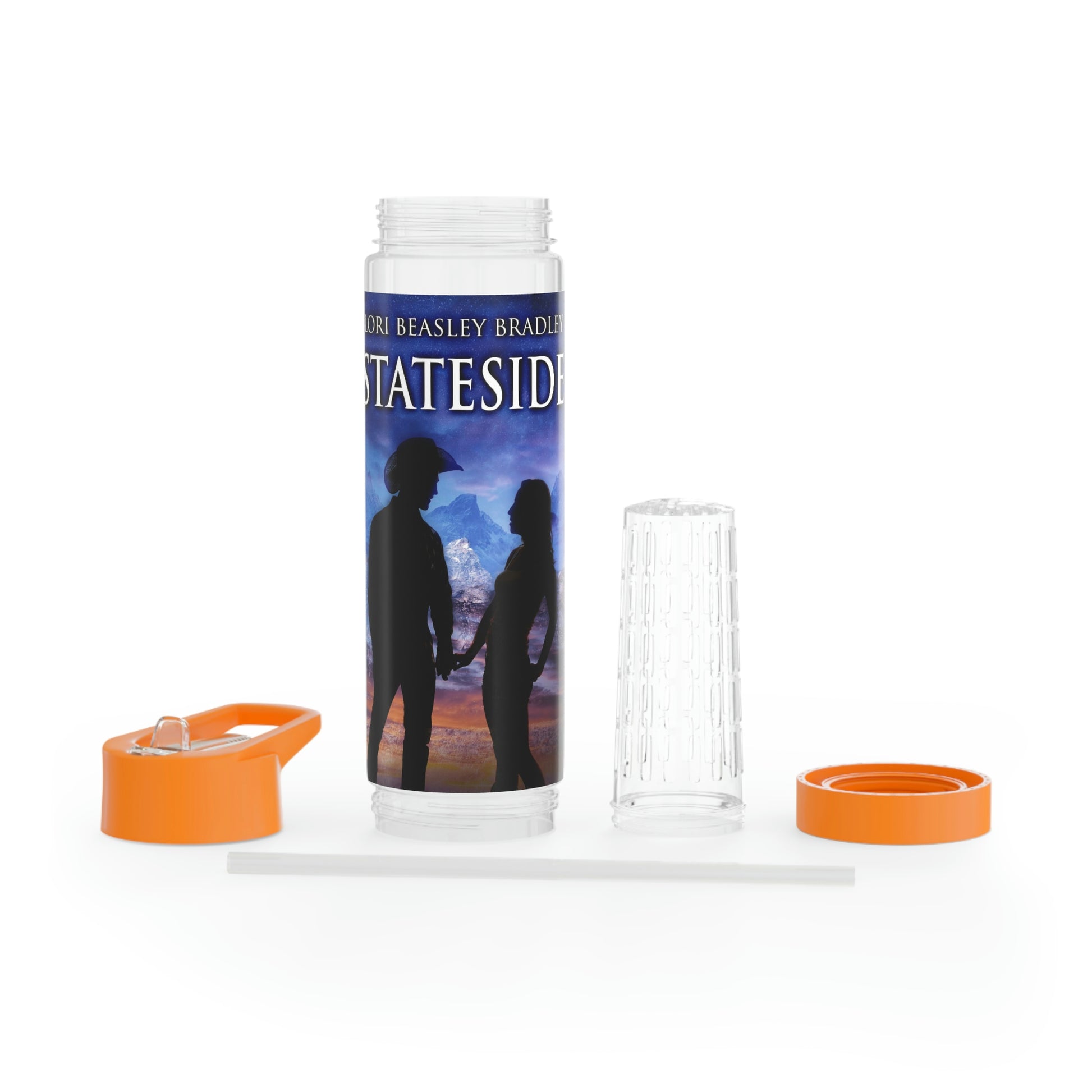 Add flavor and personality to your water with this infuser bottle. Twist the base off to access the infuser and add fruits, tea leaves, or anything you desire to enhance the flavor of your water. On the top, you'll find a twist-on lid with a flip-top drinking sprout for a seamless drinking experience. This infuser is excellent for using at home, during outdoor excursions, or at the gym as a sports bottle. The cover art in this infuser water bottle is from Lori Beasley Bradley's book, Stateside.