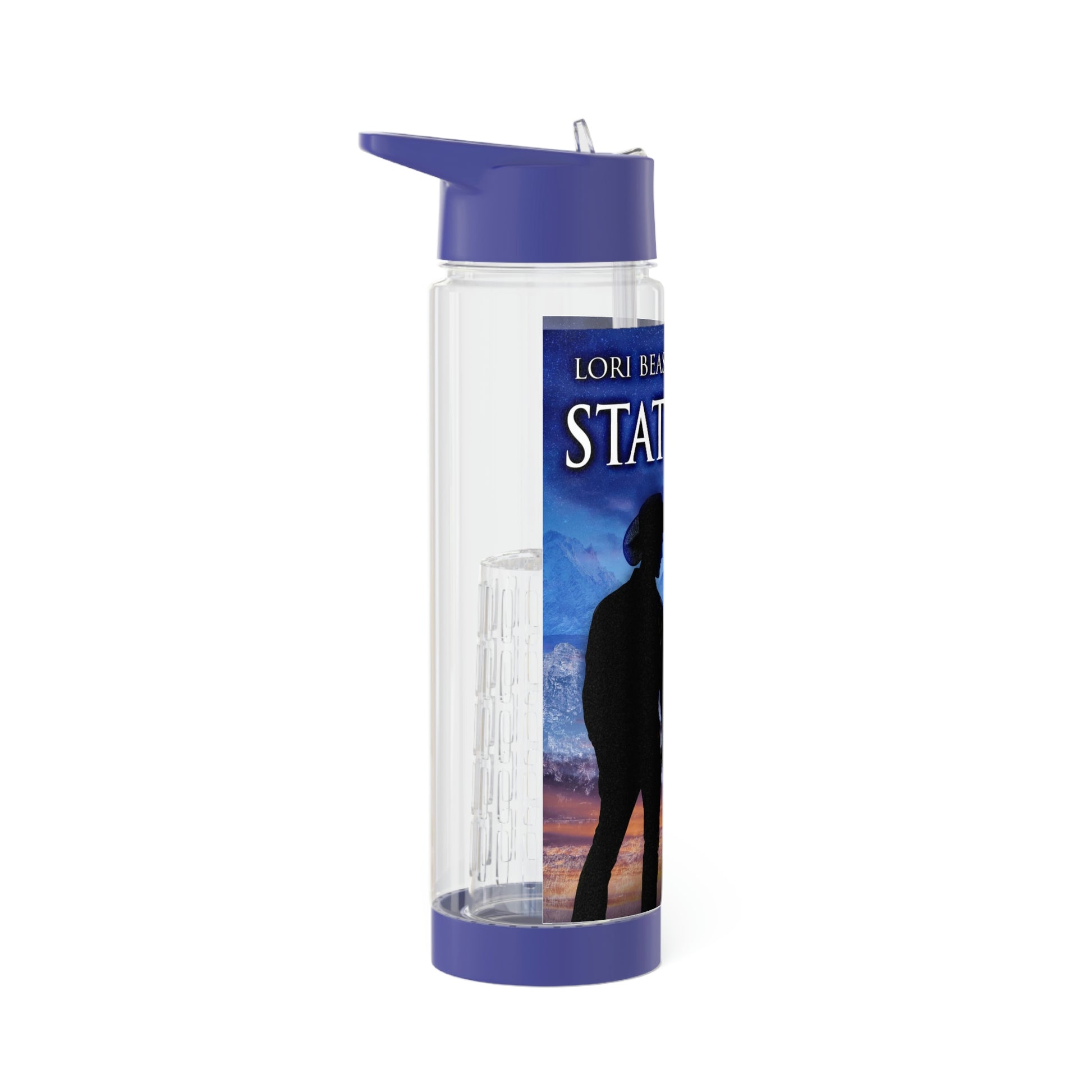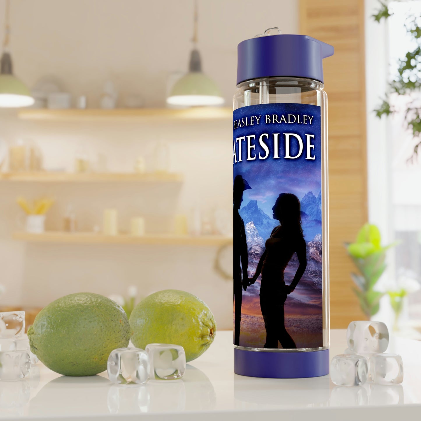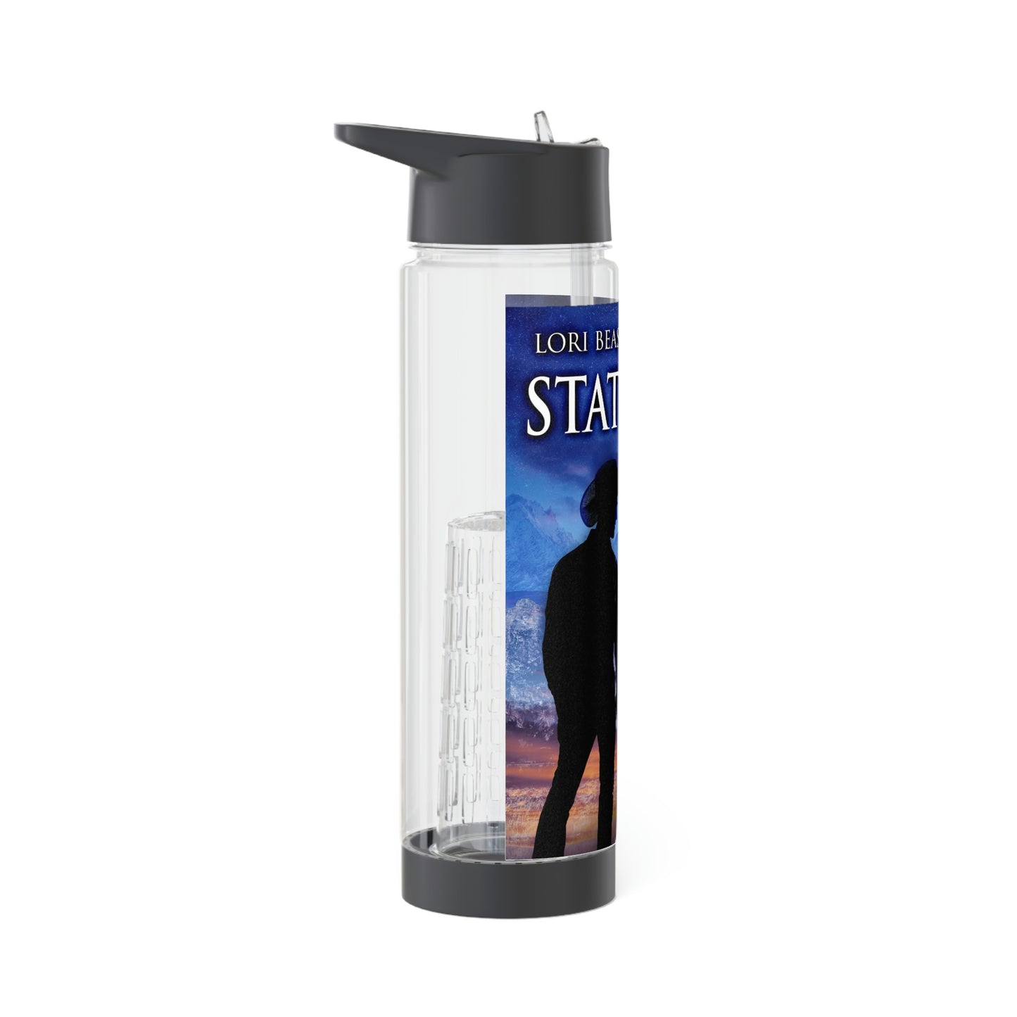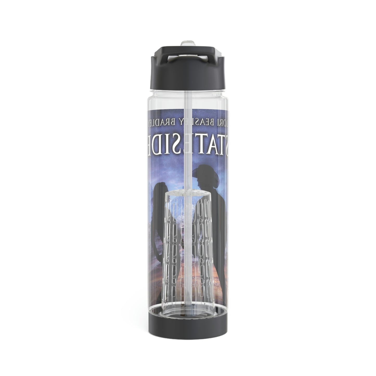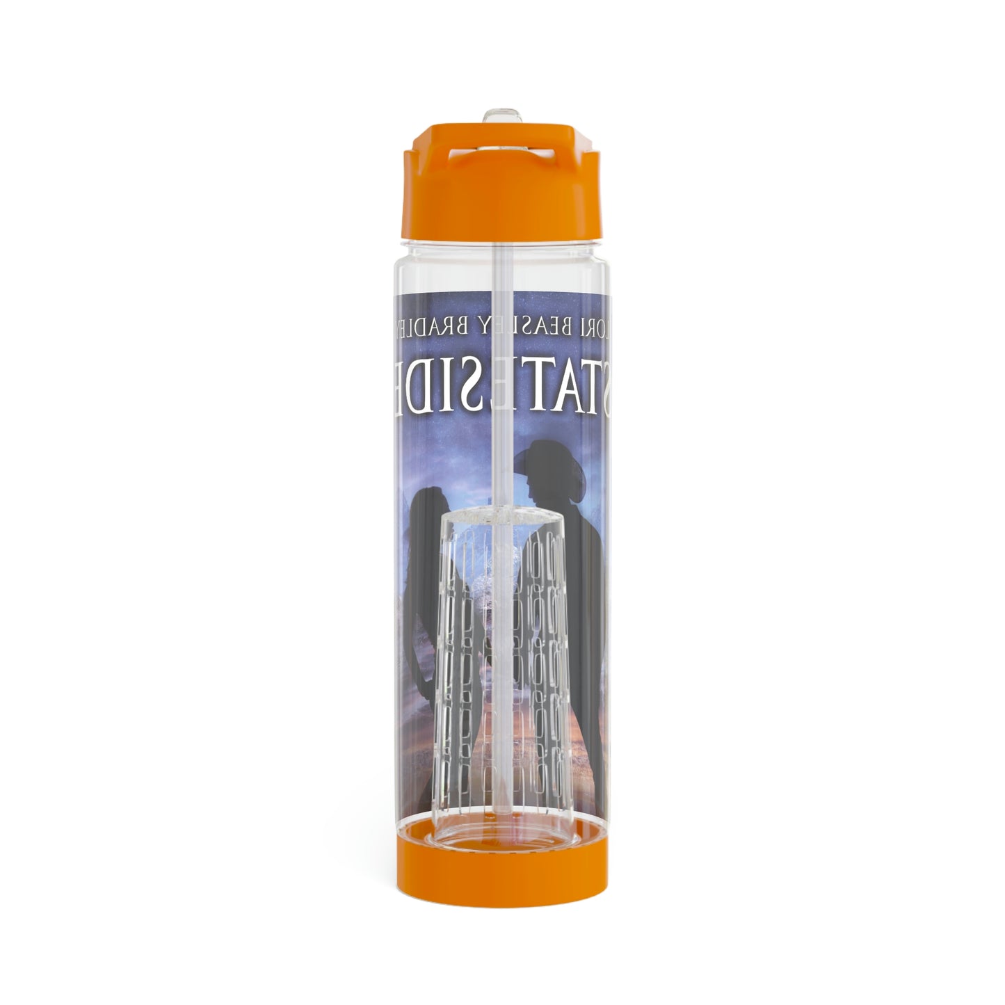 Add flavor and personality to your water with this infuser bottle. Twist the base off to access the infuser and add fruits, tea leaves, or anything you desire to enhance the flavor of your water. On the top, you'll find a twist-on lid with a flip-top drinking sprout for a seamless drinking experience. This infuser is excellent for using at home, during outdoor excursions, or at the gym as a sports bottle. The cover art in this infuser water bottle is from Lori Beasley Bradley's book, Stateside.
