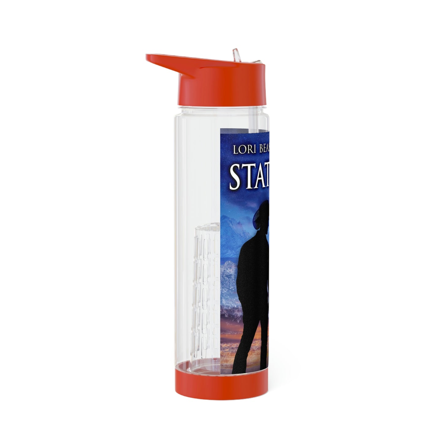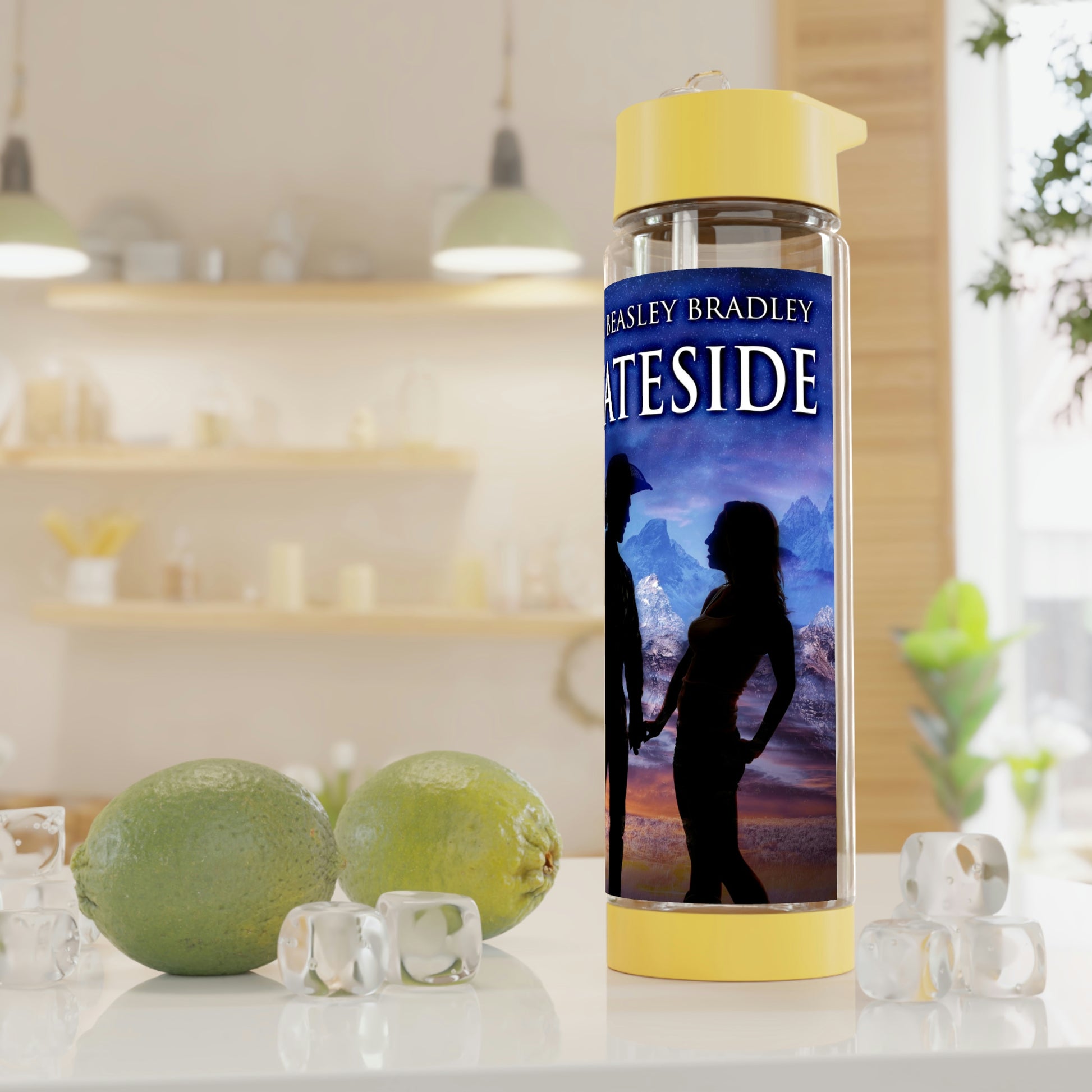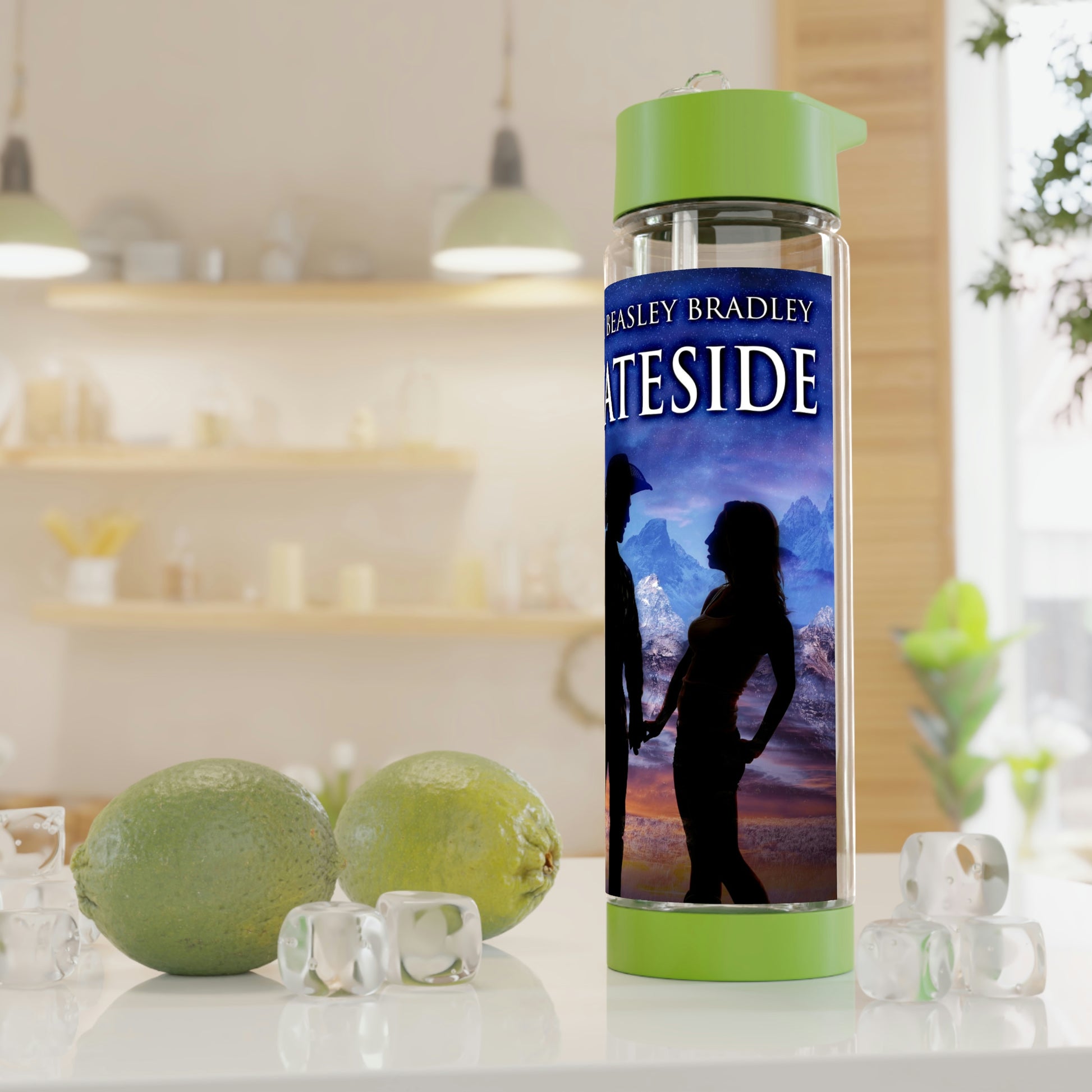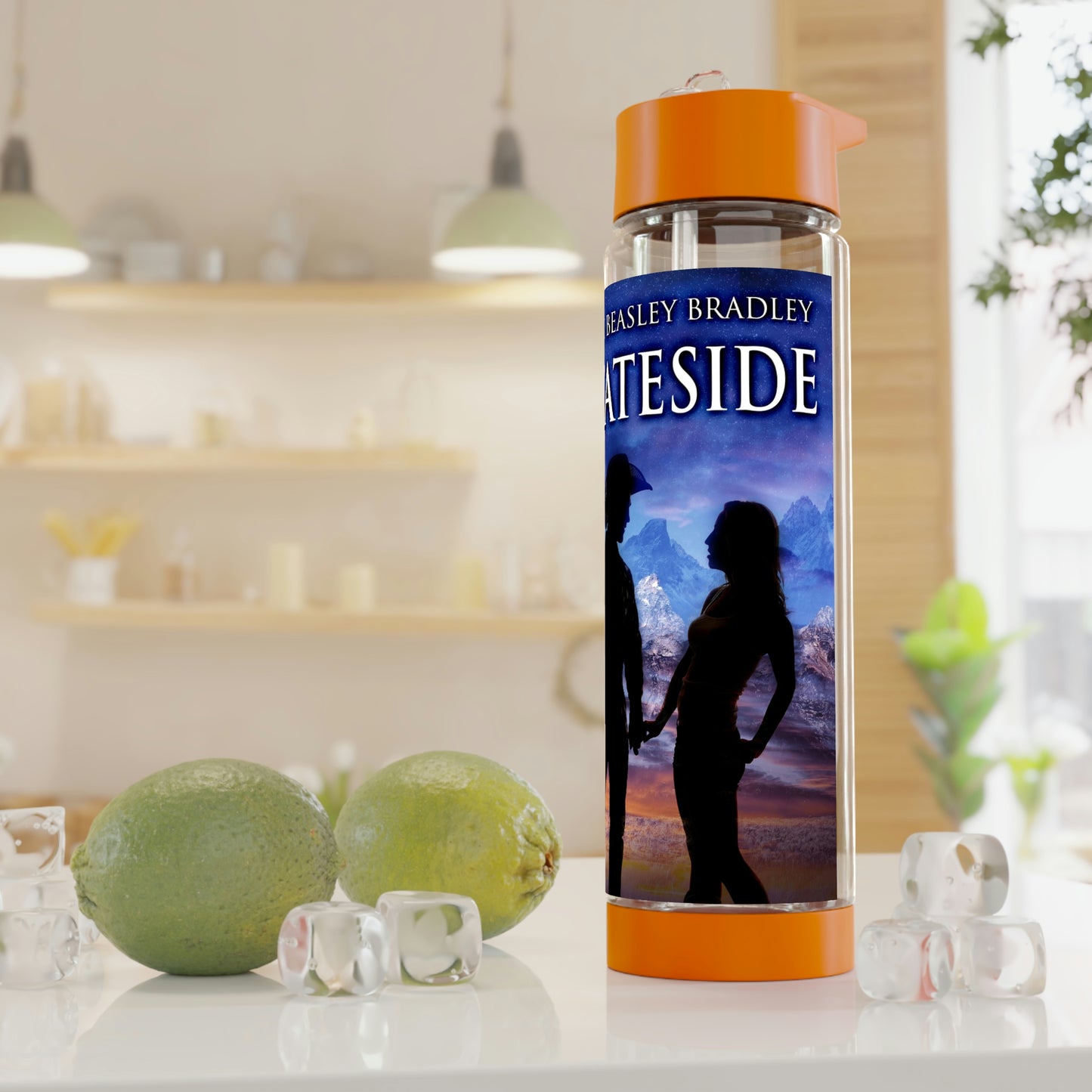 Add flavor and personality to your water with this infuser bottle. Twist the base off to access the infuser and add fruits, tea leaves, or anything you desire to enhance the flavor of your water. On the top, you'll find a twist-on lid with a flip-top drinking sprout for a seamless drinking experience. This infuser is excellent for using at home, during outdoor excursions, or at the gym as a sports bottle. The cover art in this infuser water bottle is from Lori Beasley Bradley's book, Stateside.