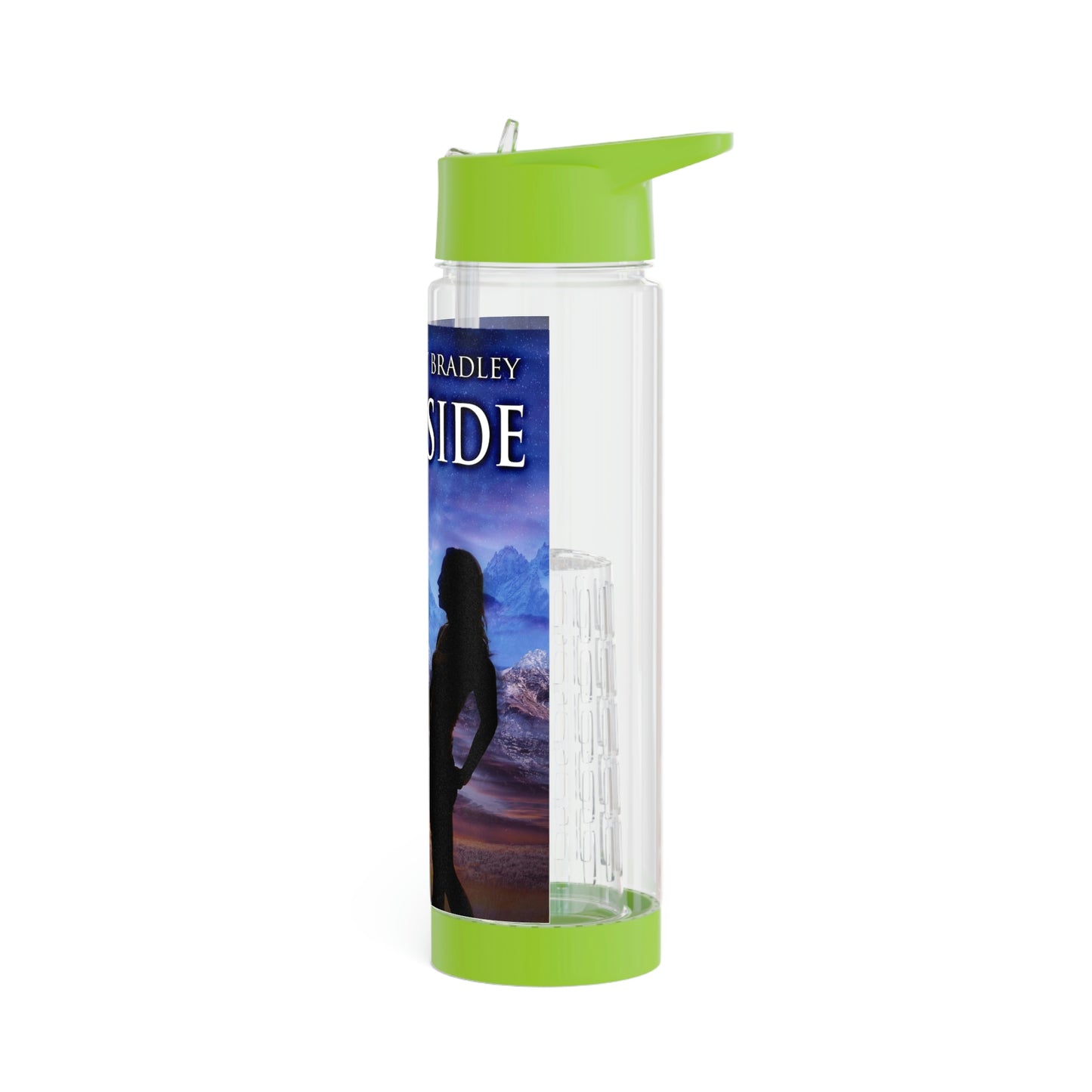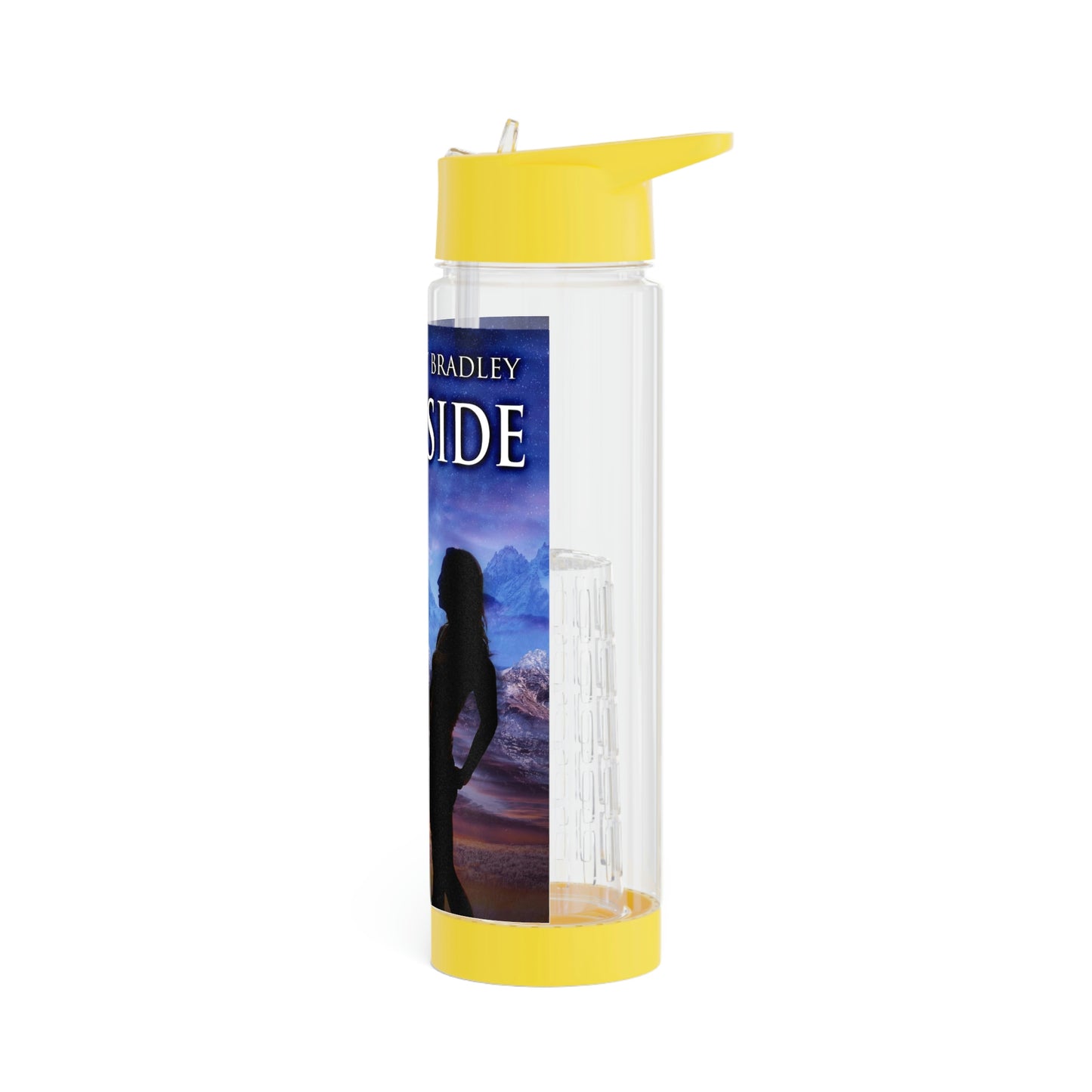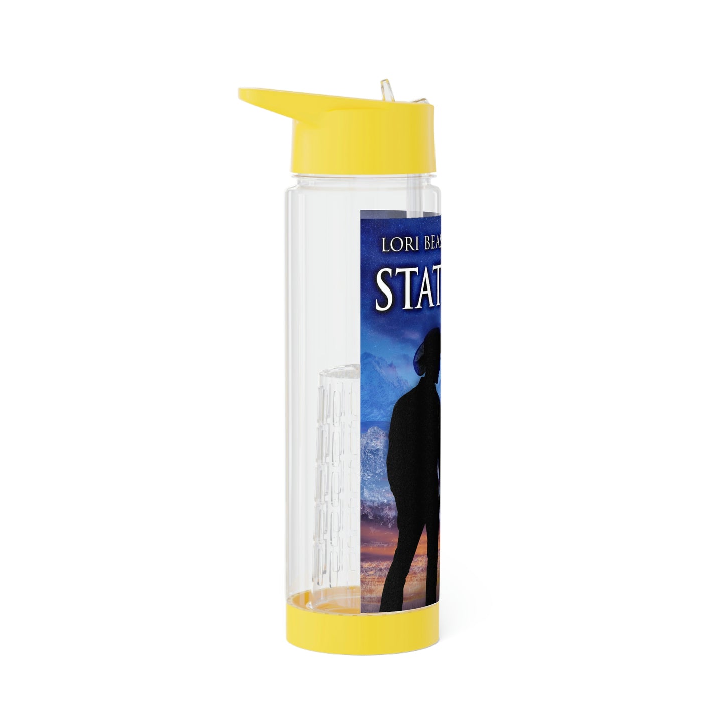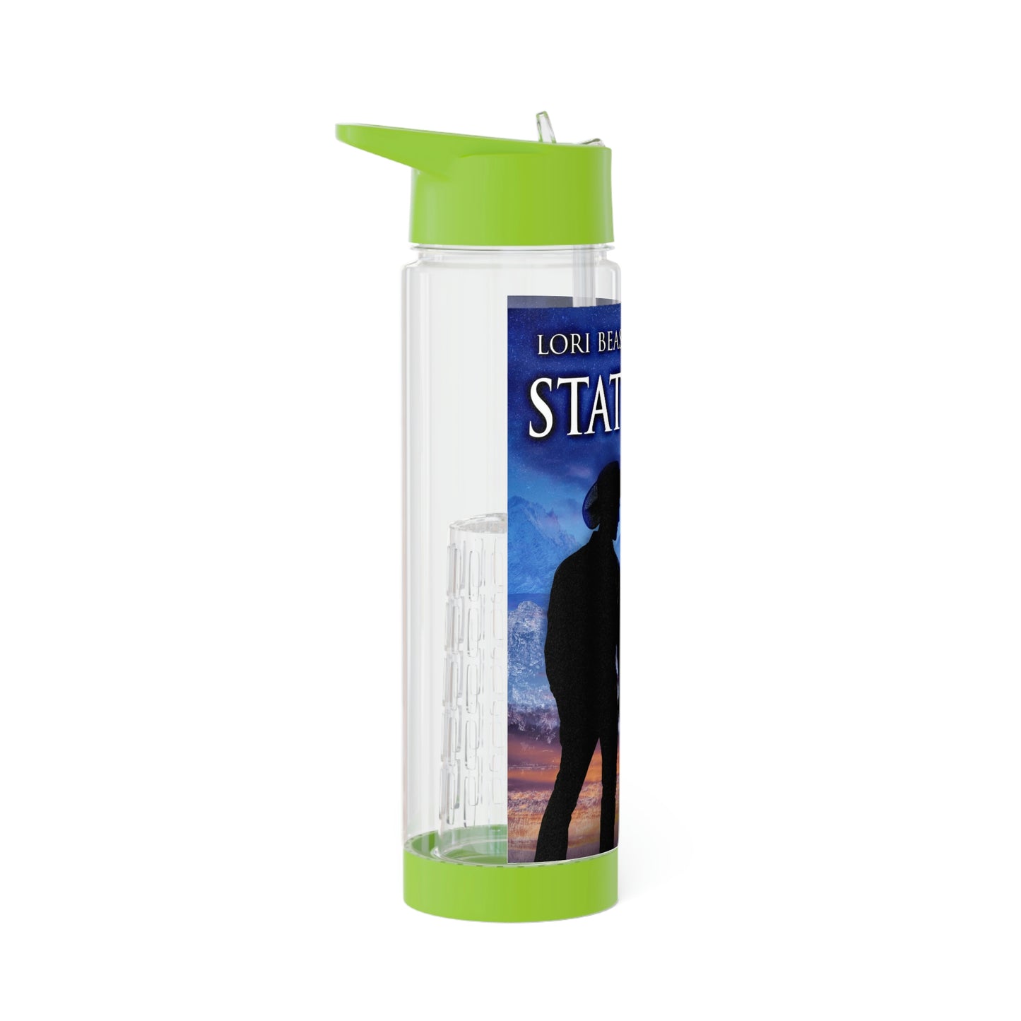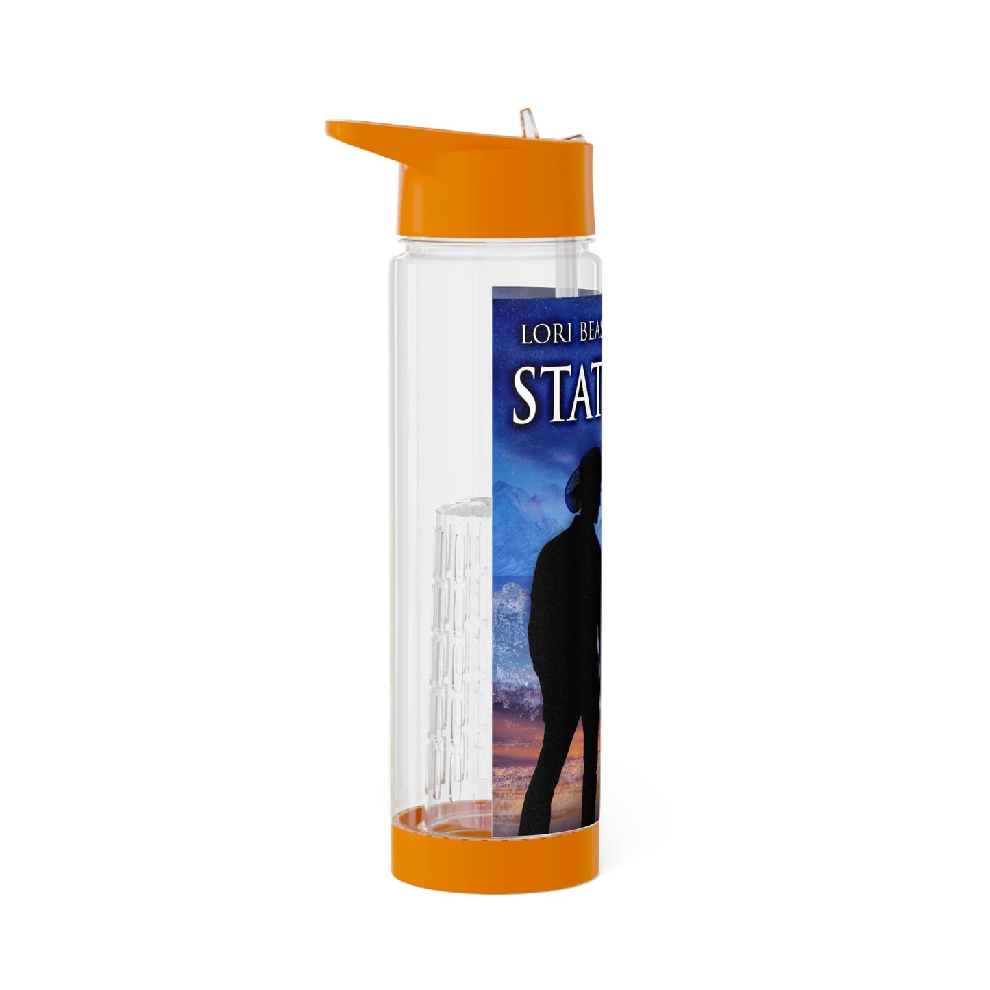 Add flavor and personality to your water with this infuser bottle. Twist the base off to access the infuser and add fruits, tea leaves, or anything you desire to enhance the flavor of your water. On the top, you'll find a twist-on lid with a flip-top drinking sprout for a seamless drinking experience. This infuser is excellent for using at home, during outdoor excursions, or at the gym as a sports bottle. The cover art in this infuser water bottle is from Lori Beasley Bradley's book, Stateside.
